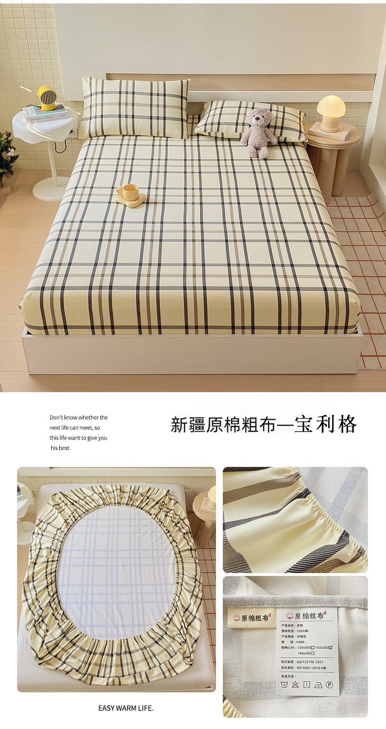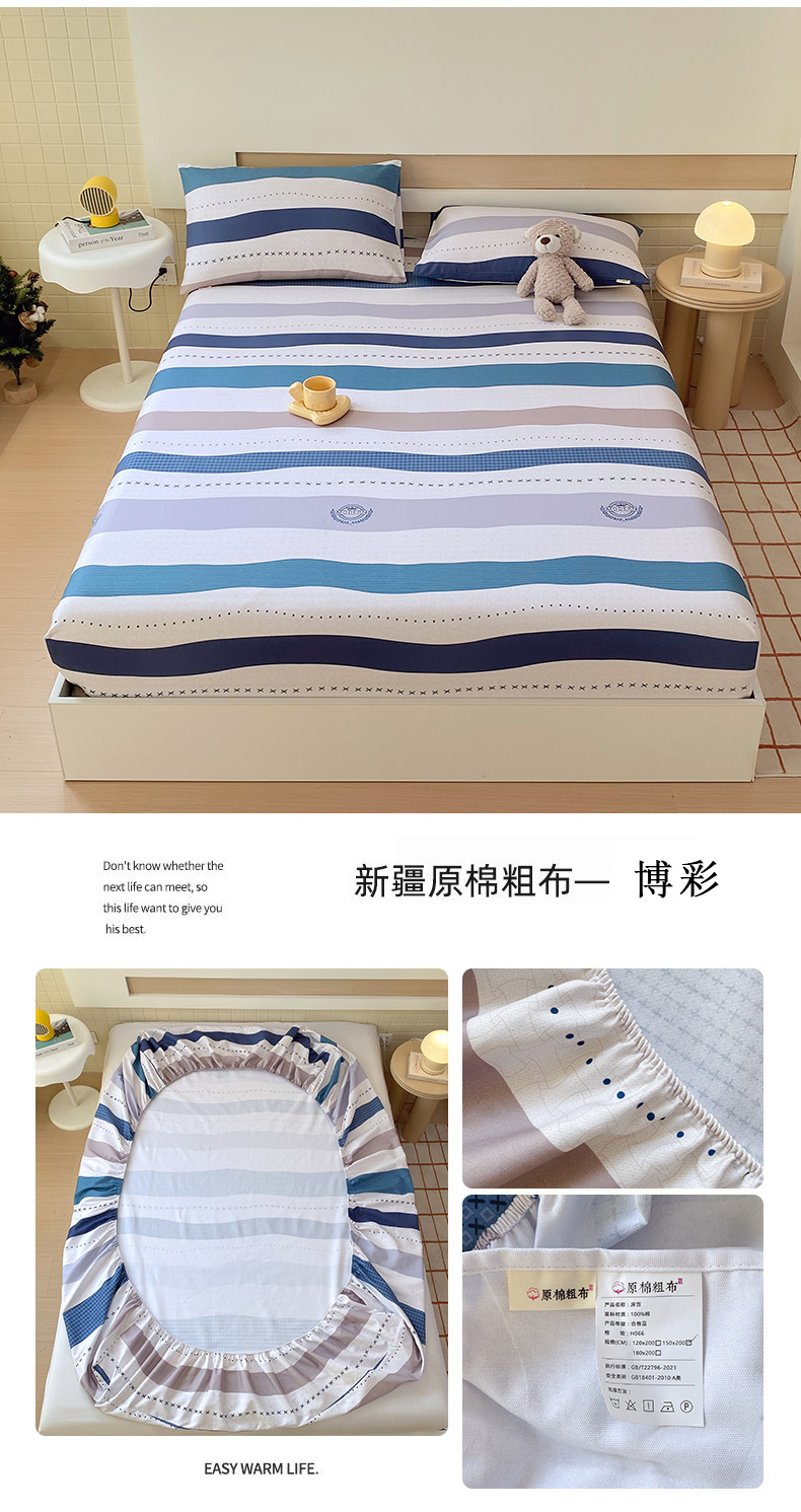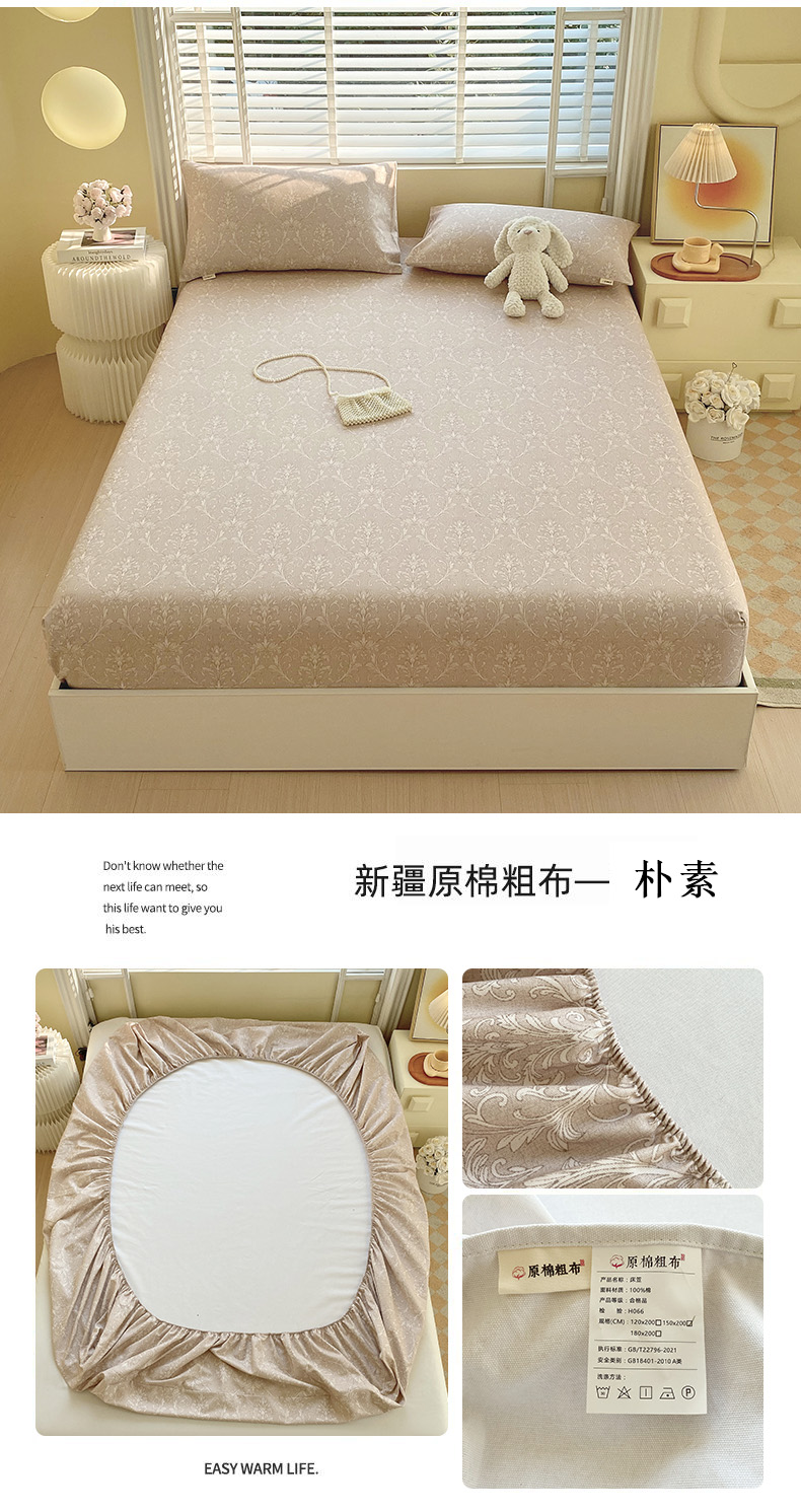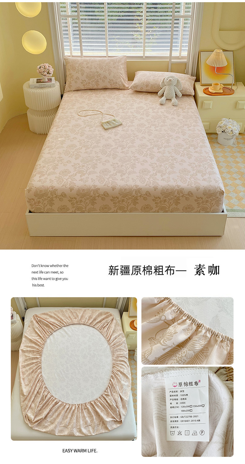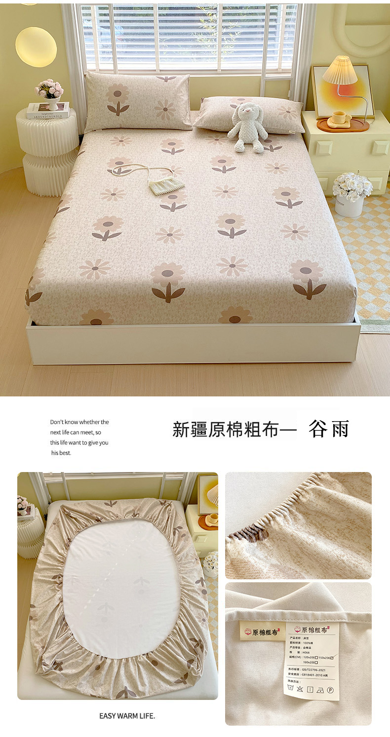 自然醒A类全棉老粗布床笠罩纯棉床垫保护罩全包宿舍单人床单枕套席梦思隔脏套NH177