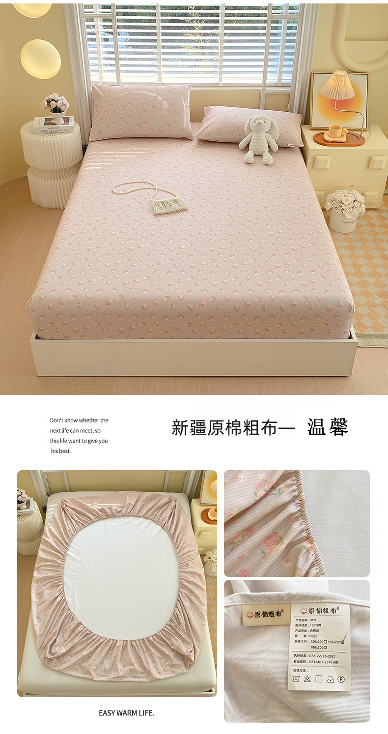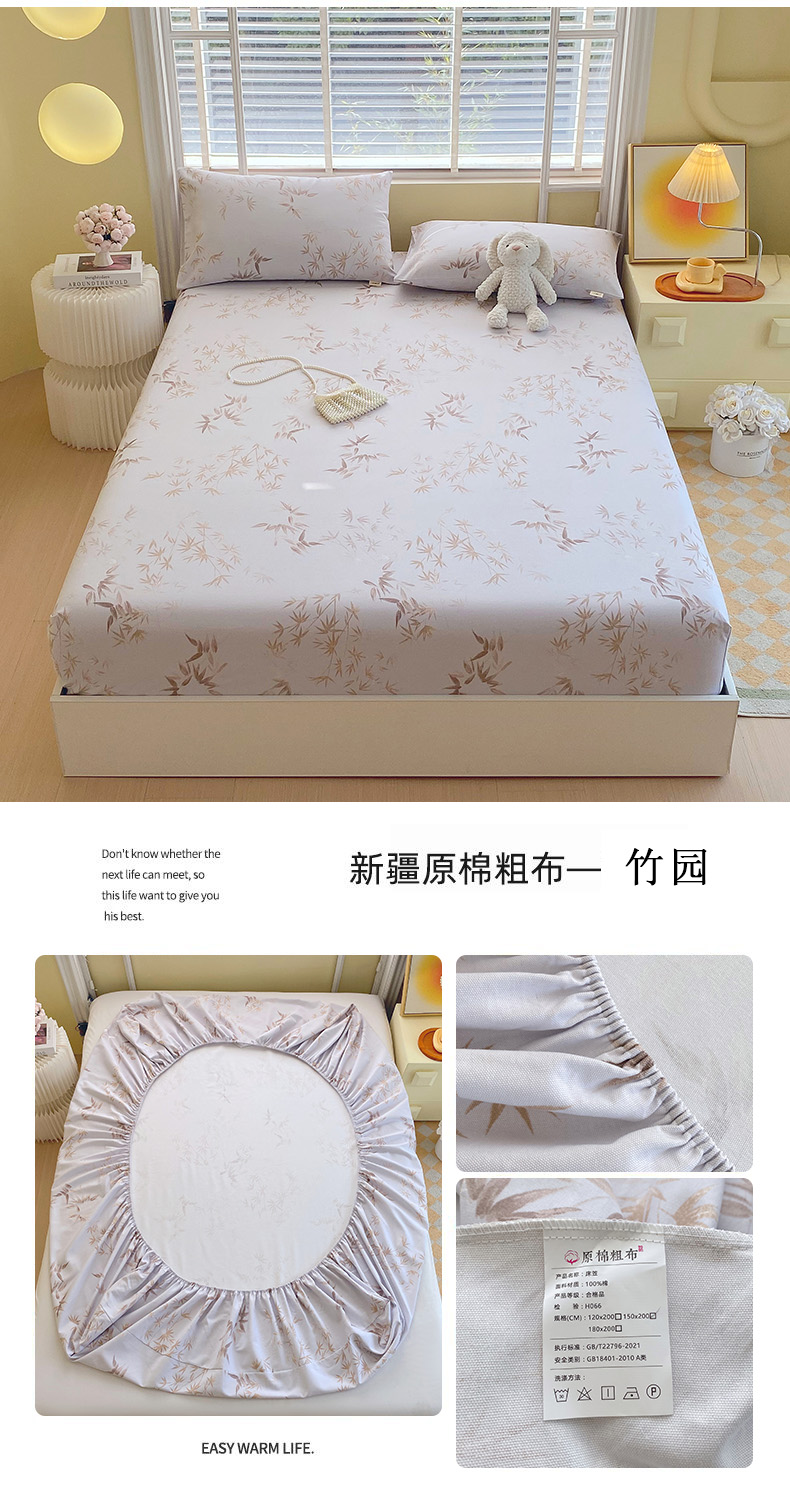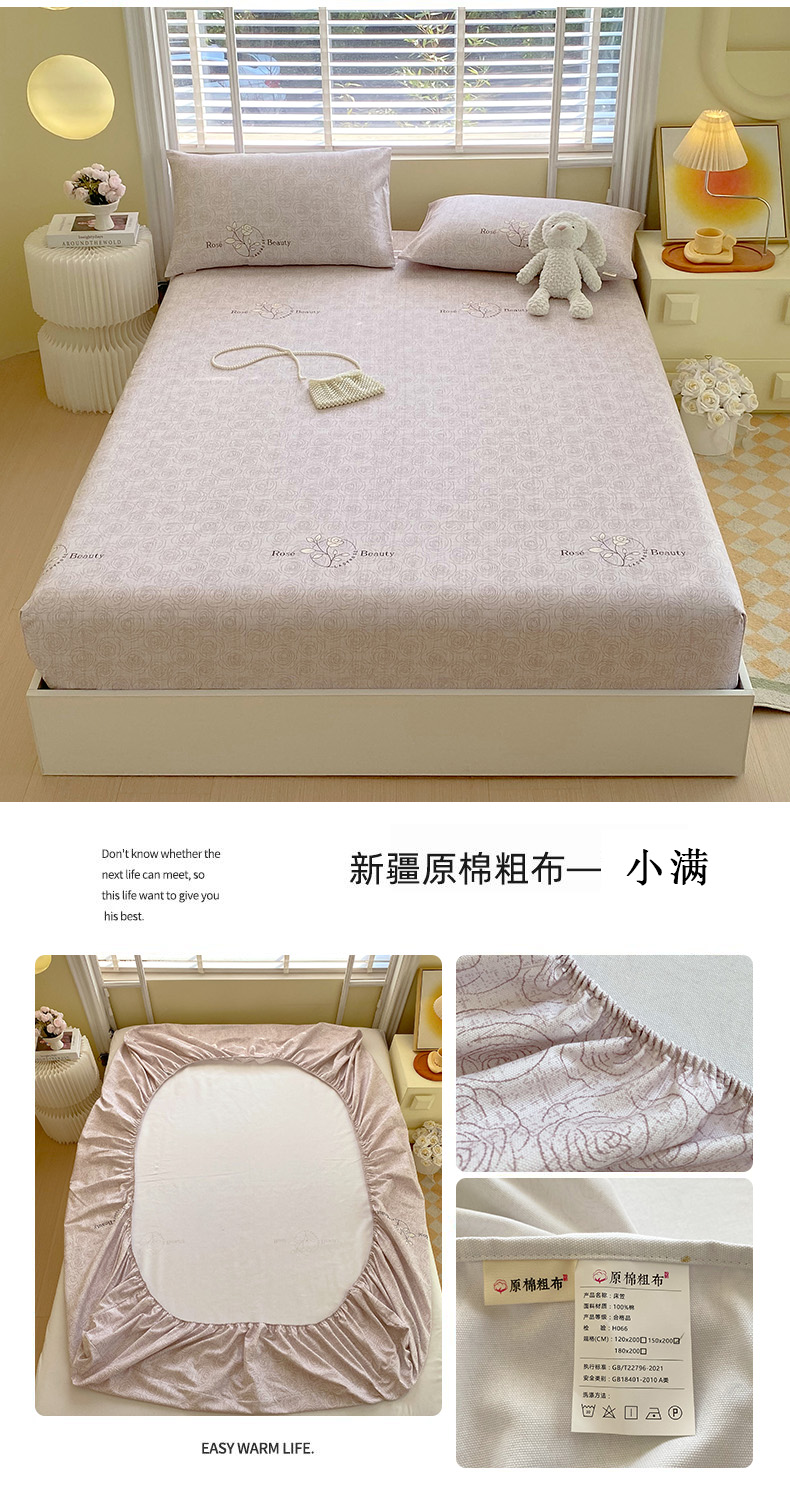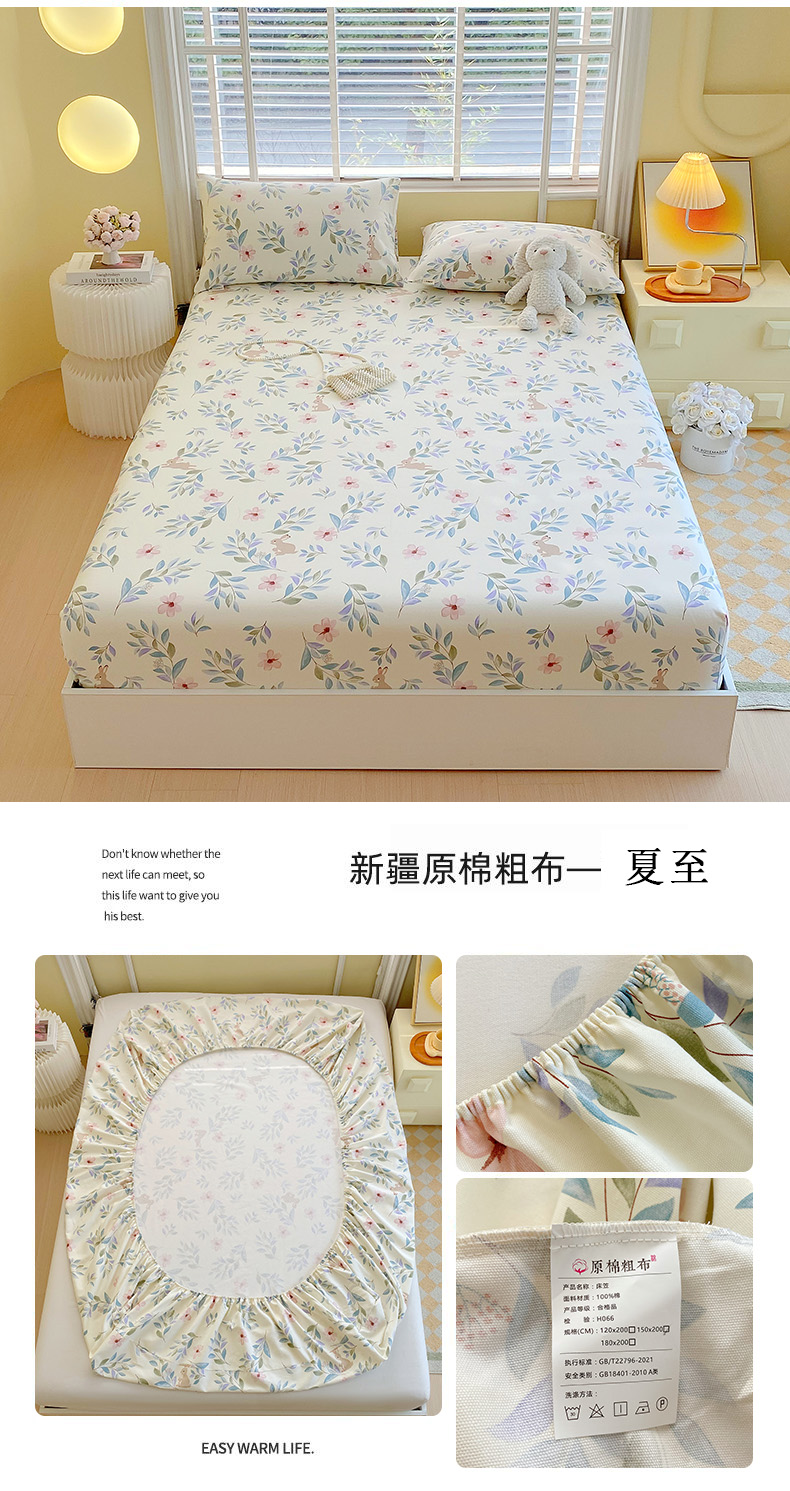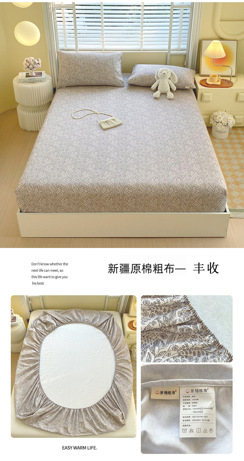 自然醒A类全棉老粗布床笠罩纯棉床垫保护罩全包宿舍单人床单枕套席梦思隔脏套NH177