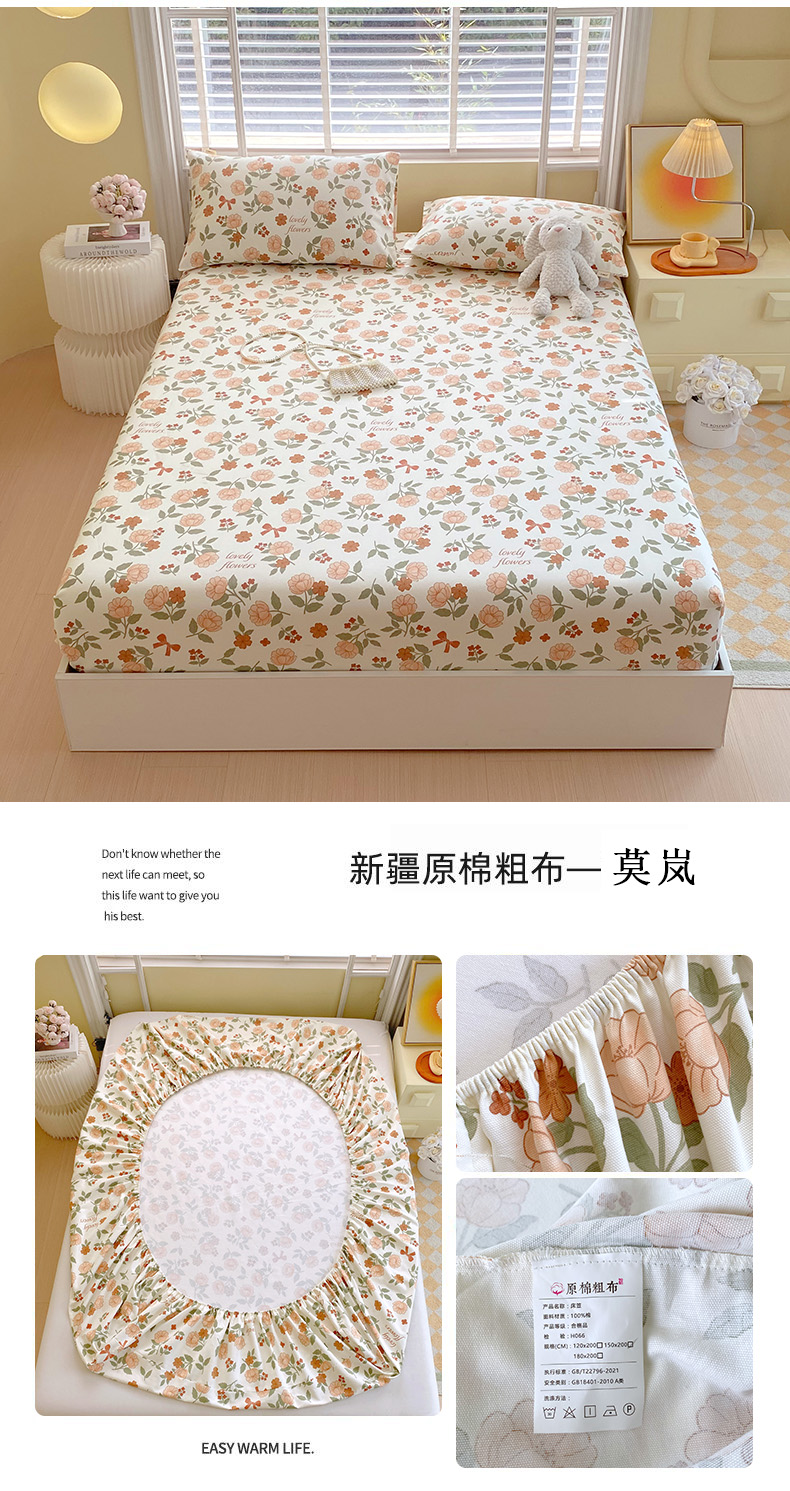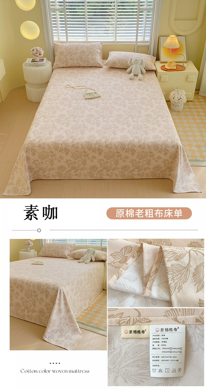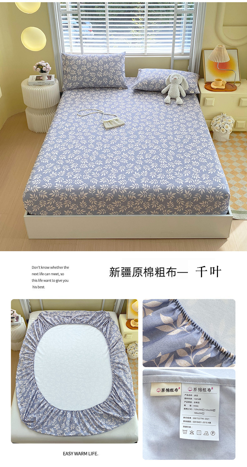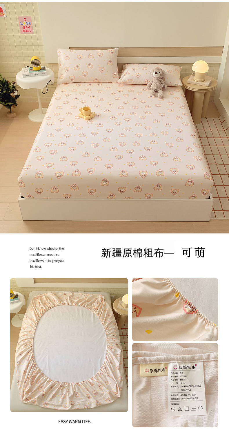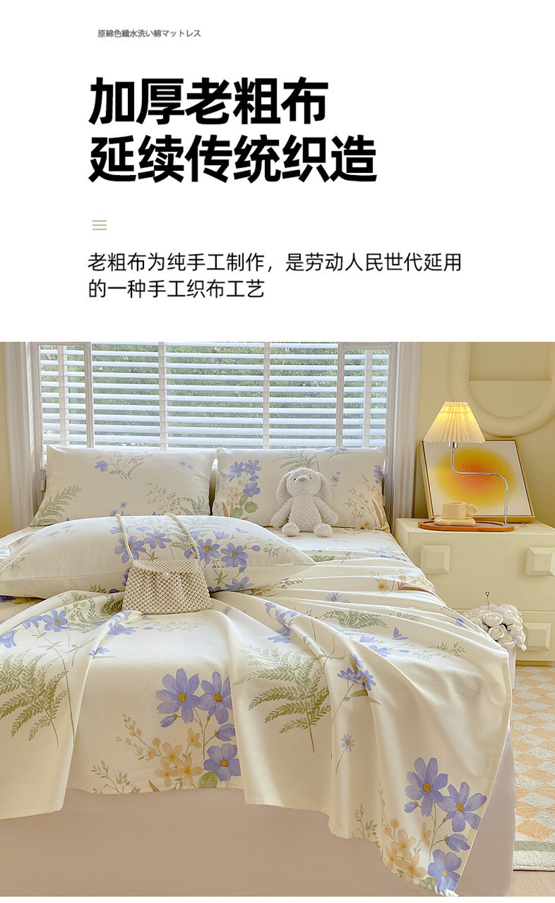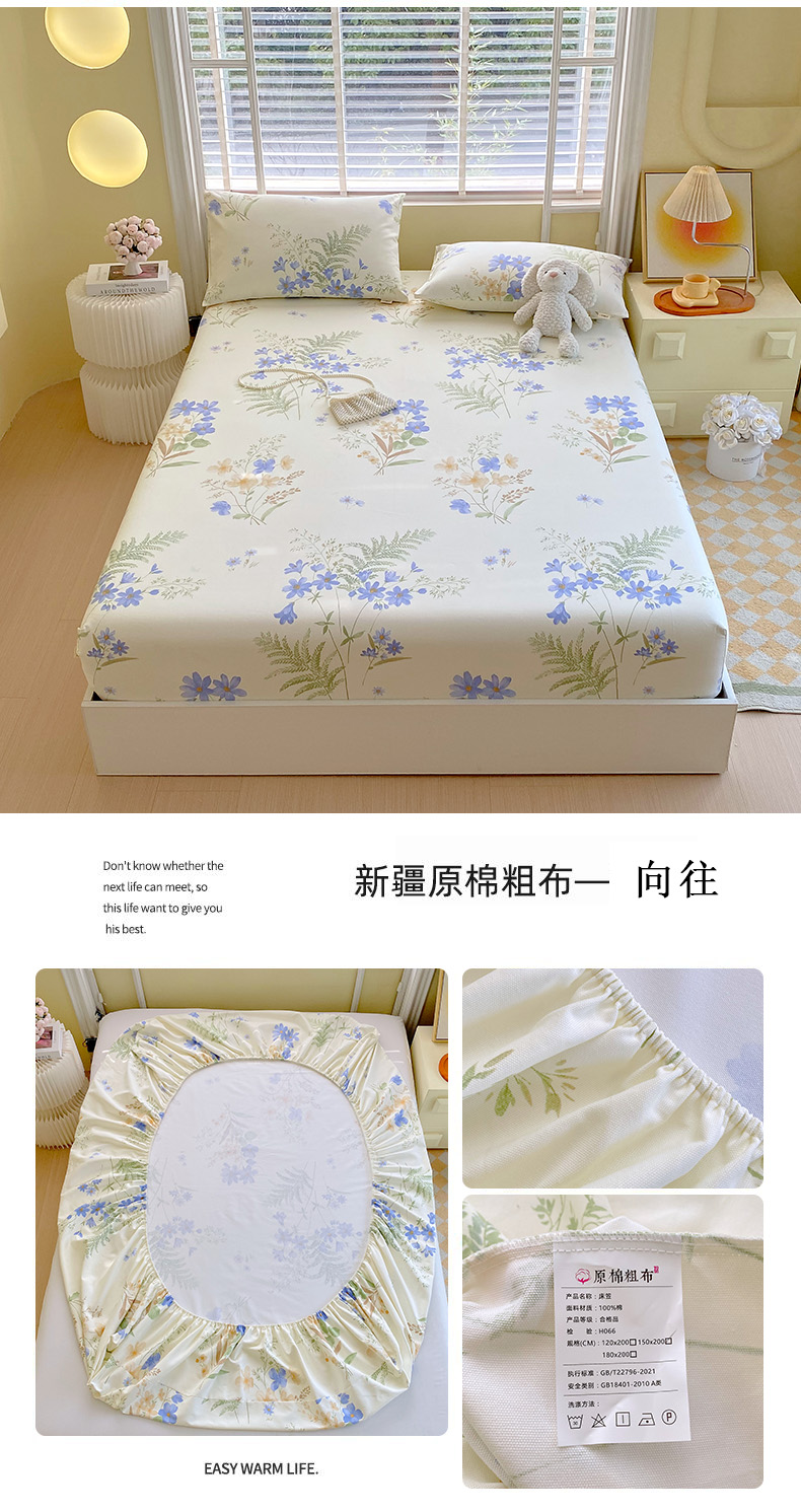 自然醒A类全棉老粗布床笠罩纯棉床垫保护罩全包宿舍单人床单枕套席梦思隔脏套NH177