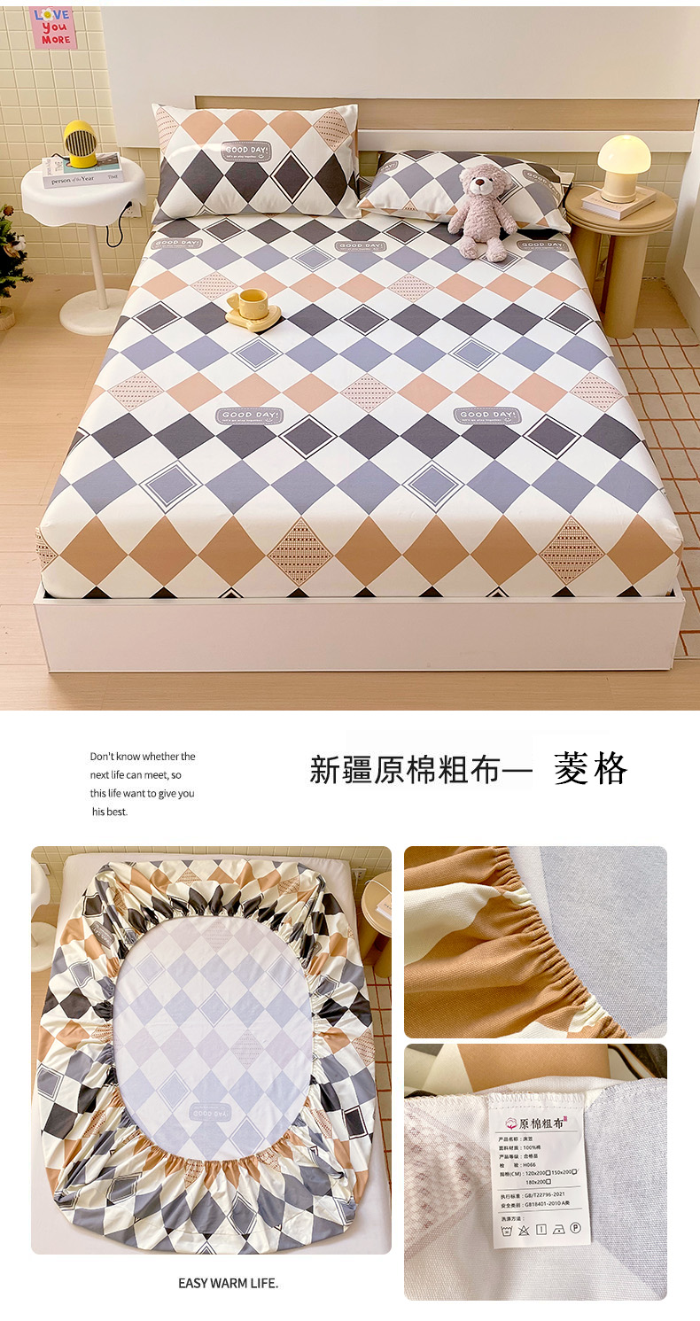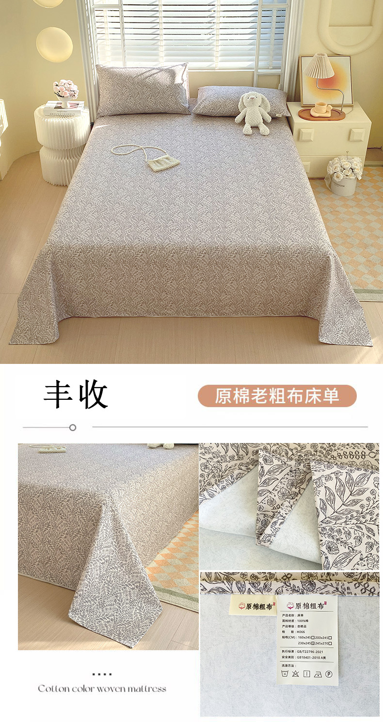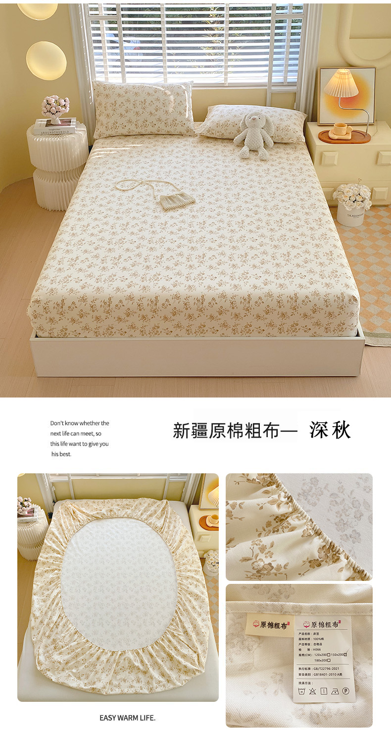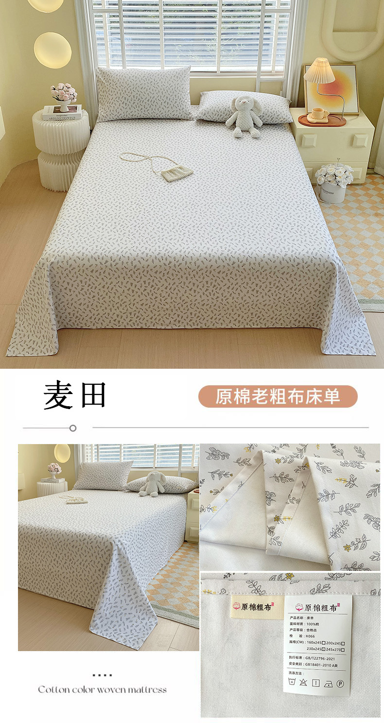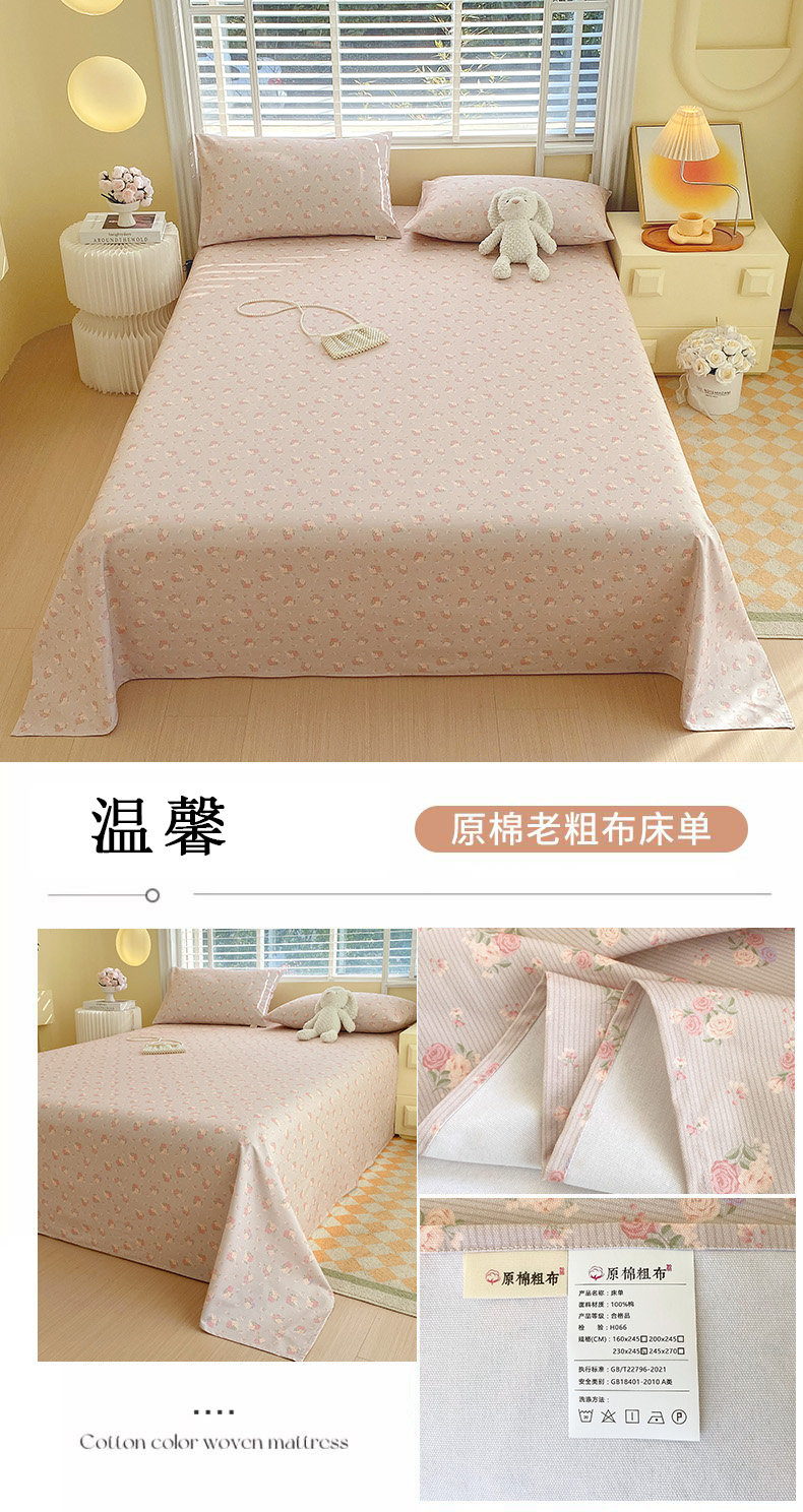 自然醒A类全棉老粗布床笠罩纯棉床垫保护罩全包宿舍单人床单枕套席梦思隔脏套NH177