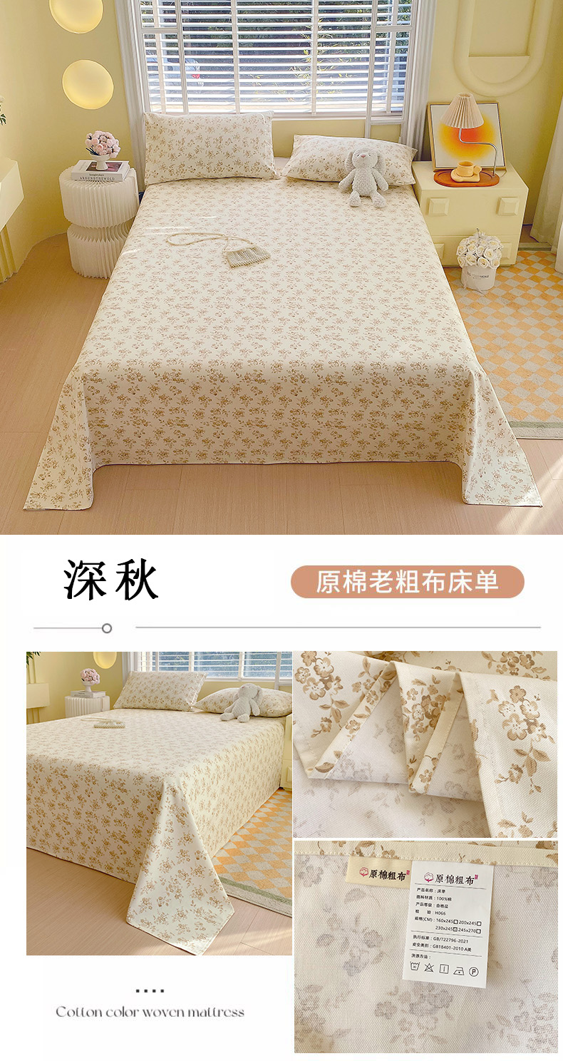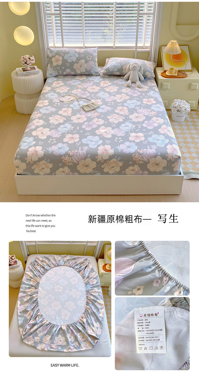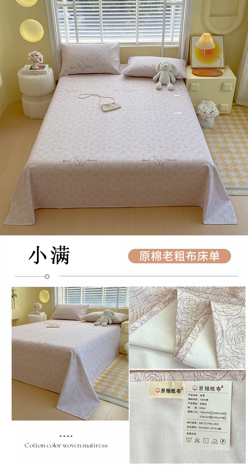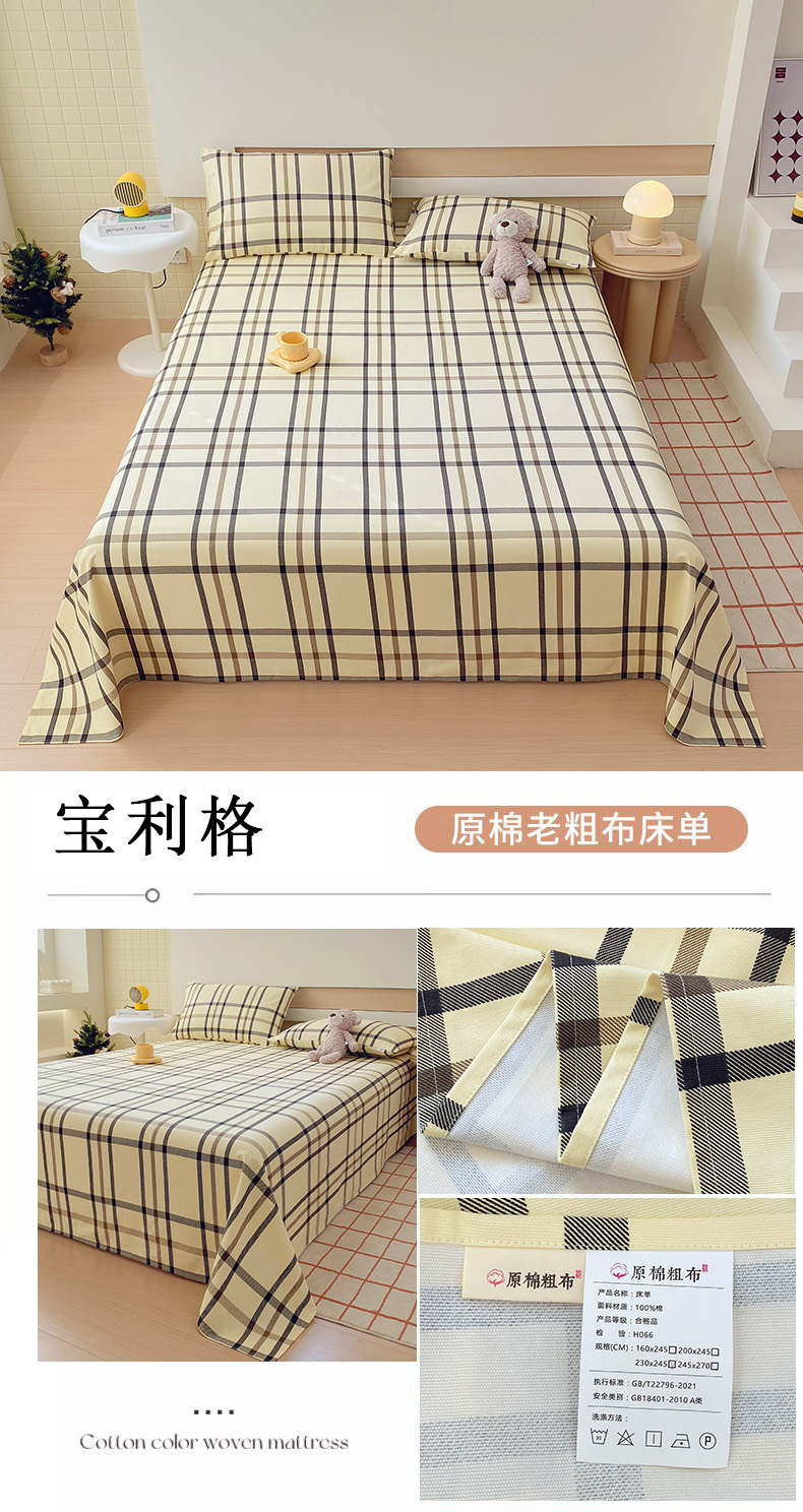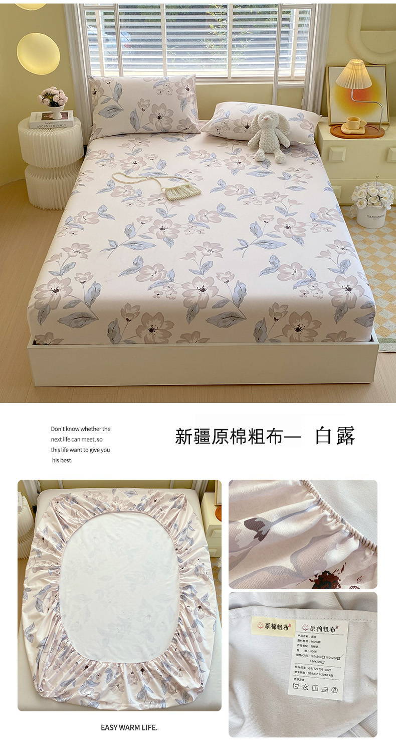 自然醒A类全棉老粗布床笠罩纯棉床垫保护罩全包宿舍单人床单枕套席梦思隔脏套NH177