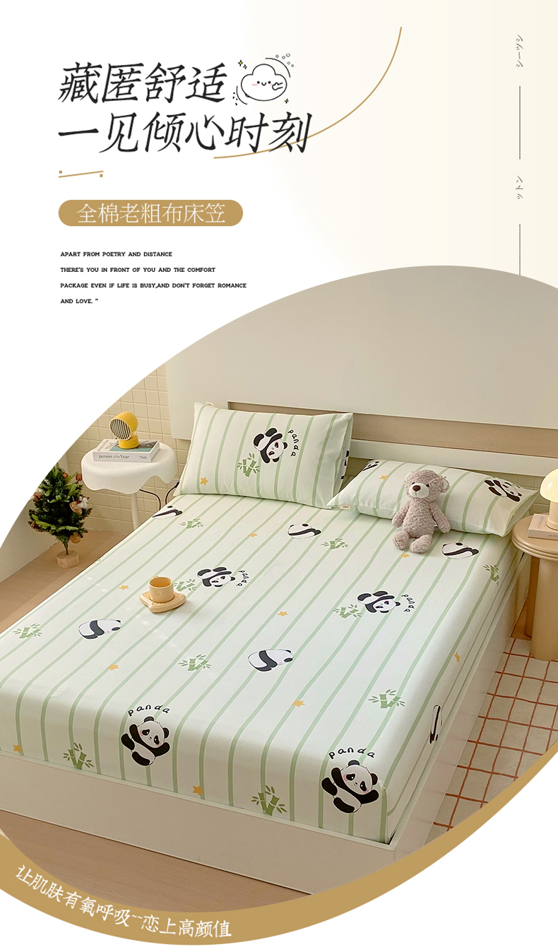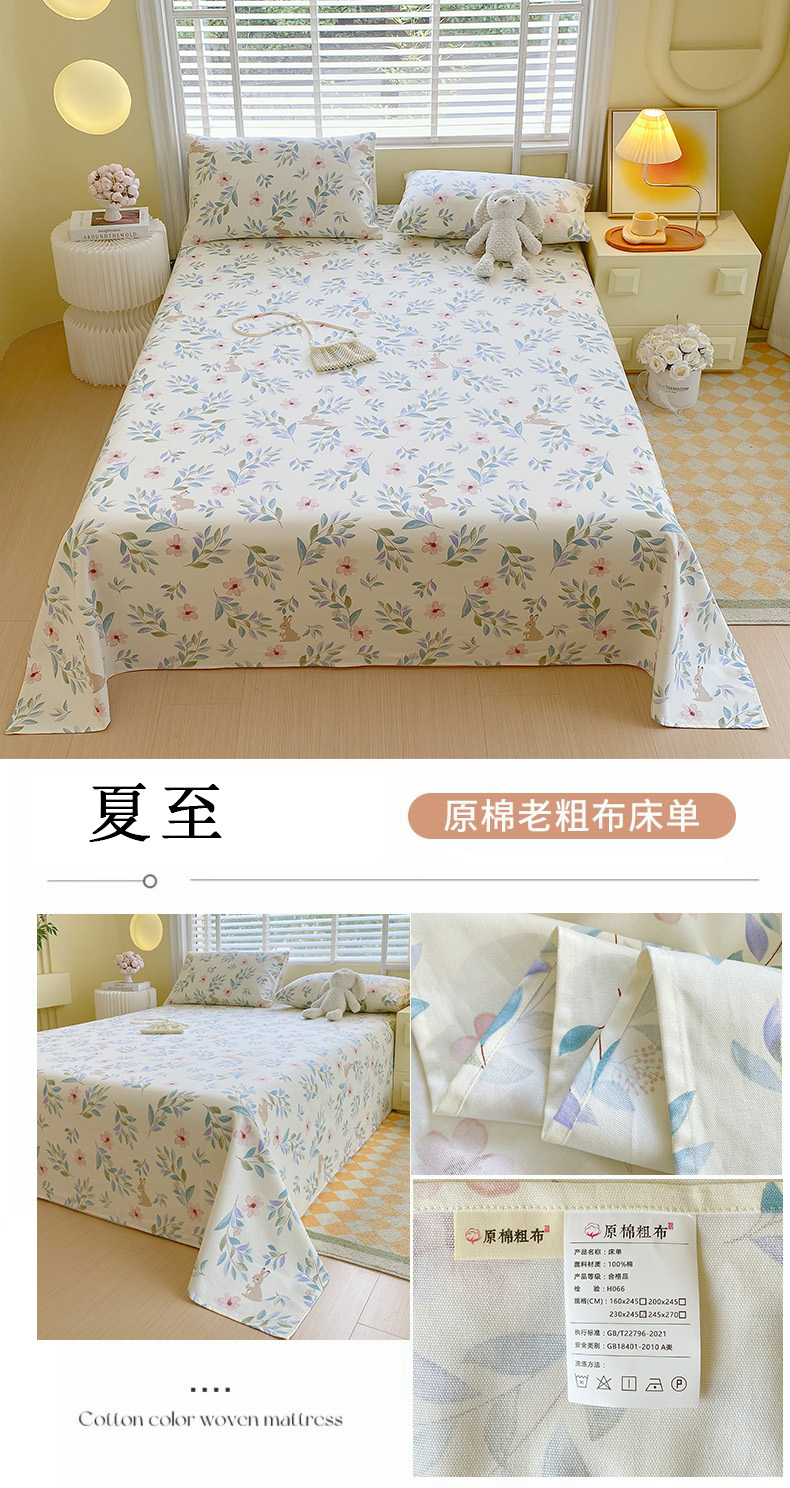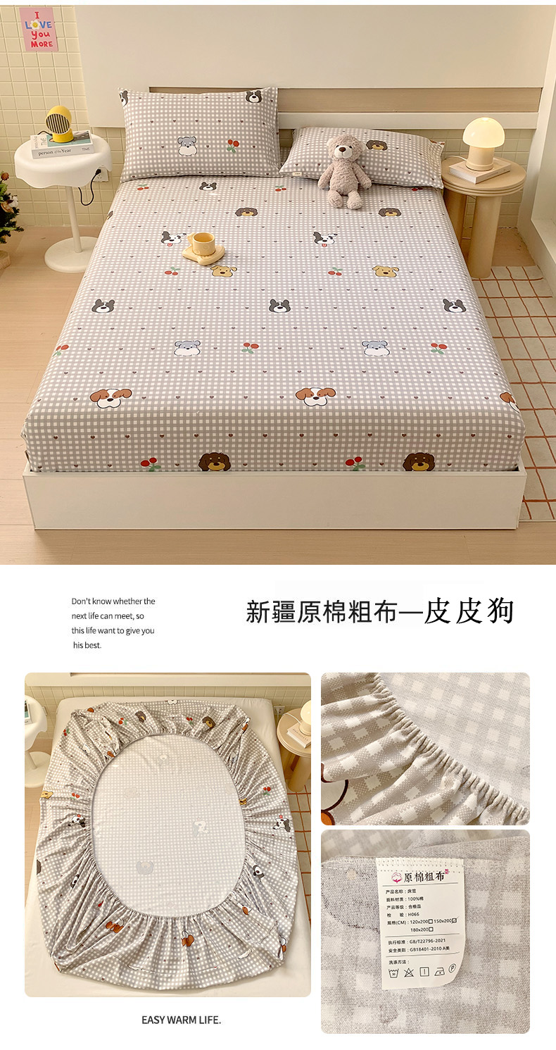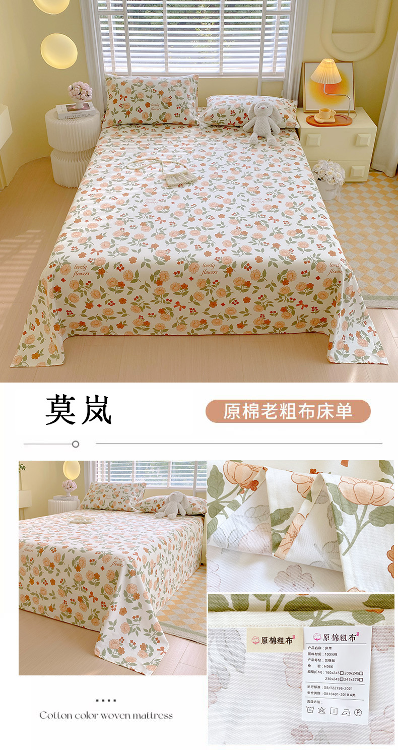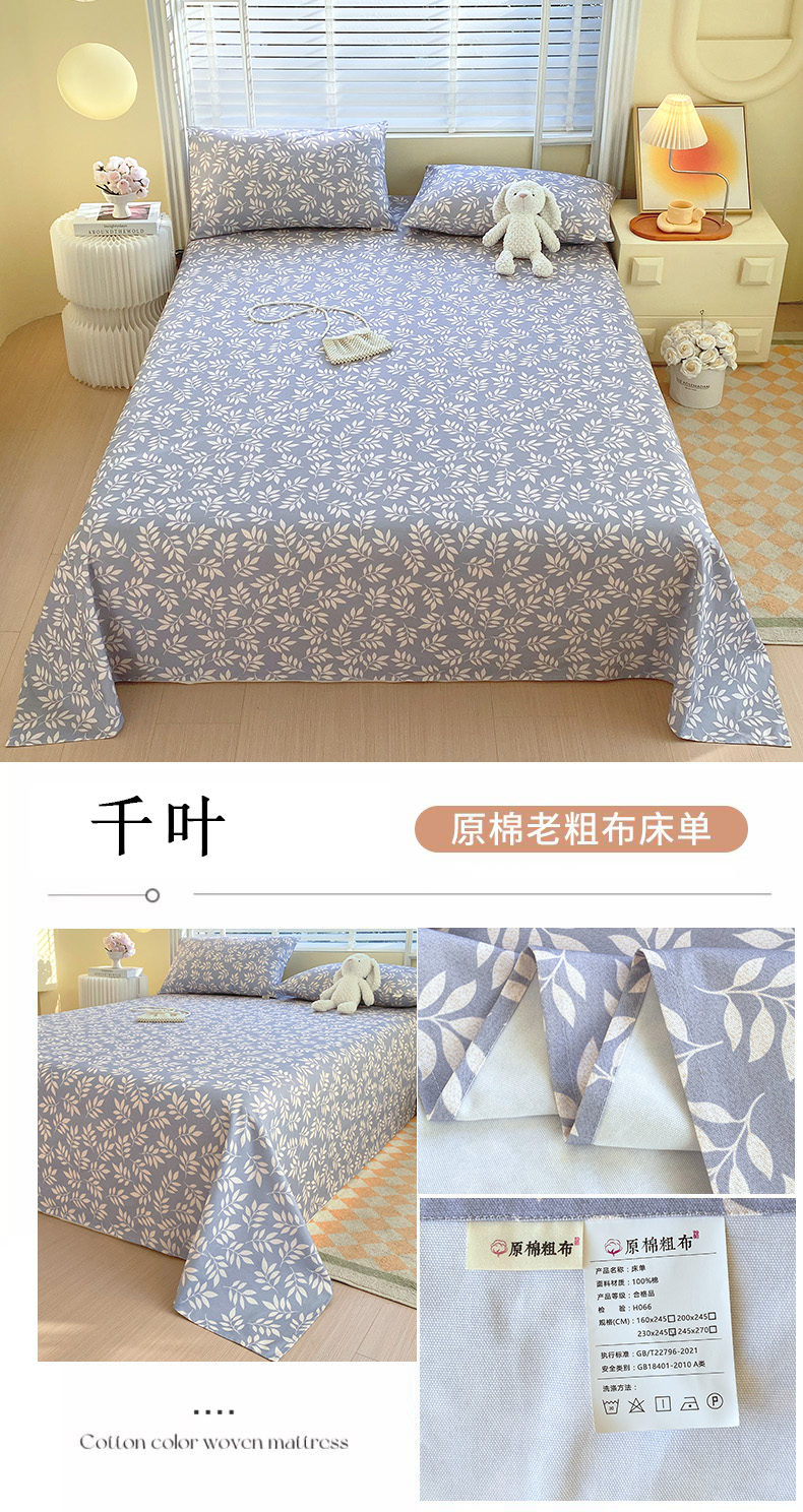 自然醒A类全棉老粗布床笠罩纯棉床垫保护罩全包宿舍单人床单枕套席梦思隔脏套NH177