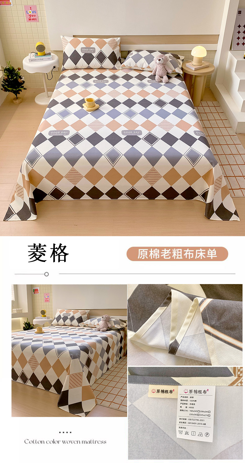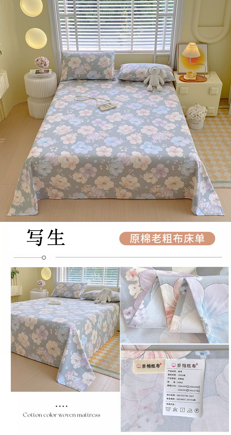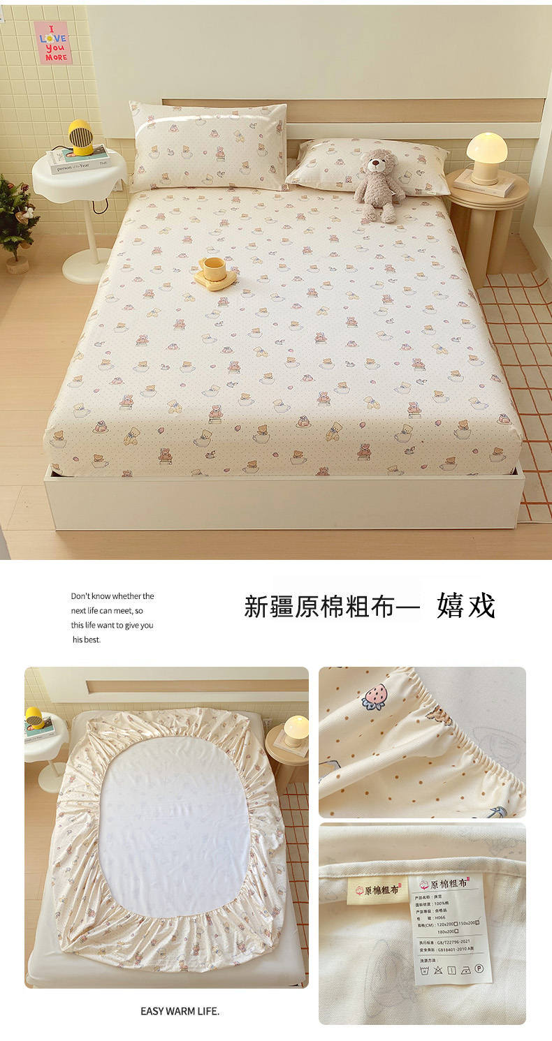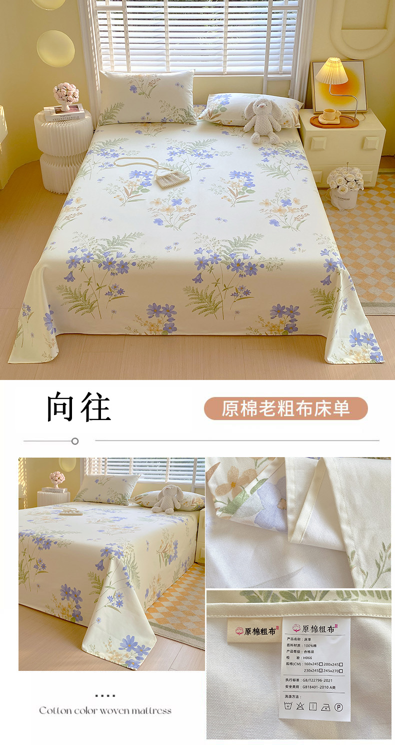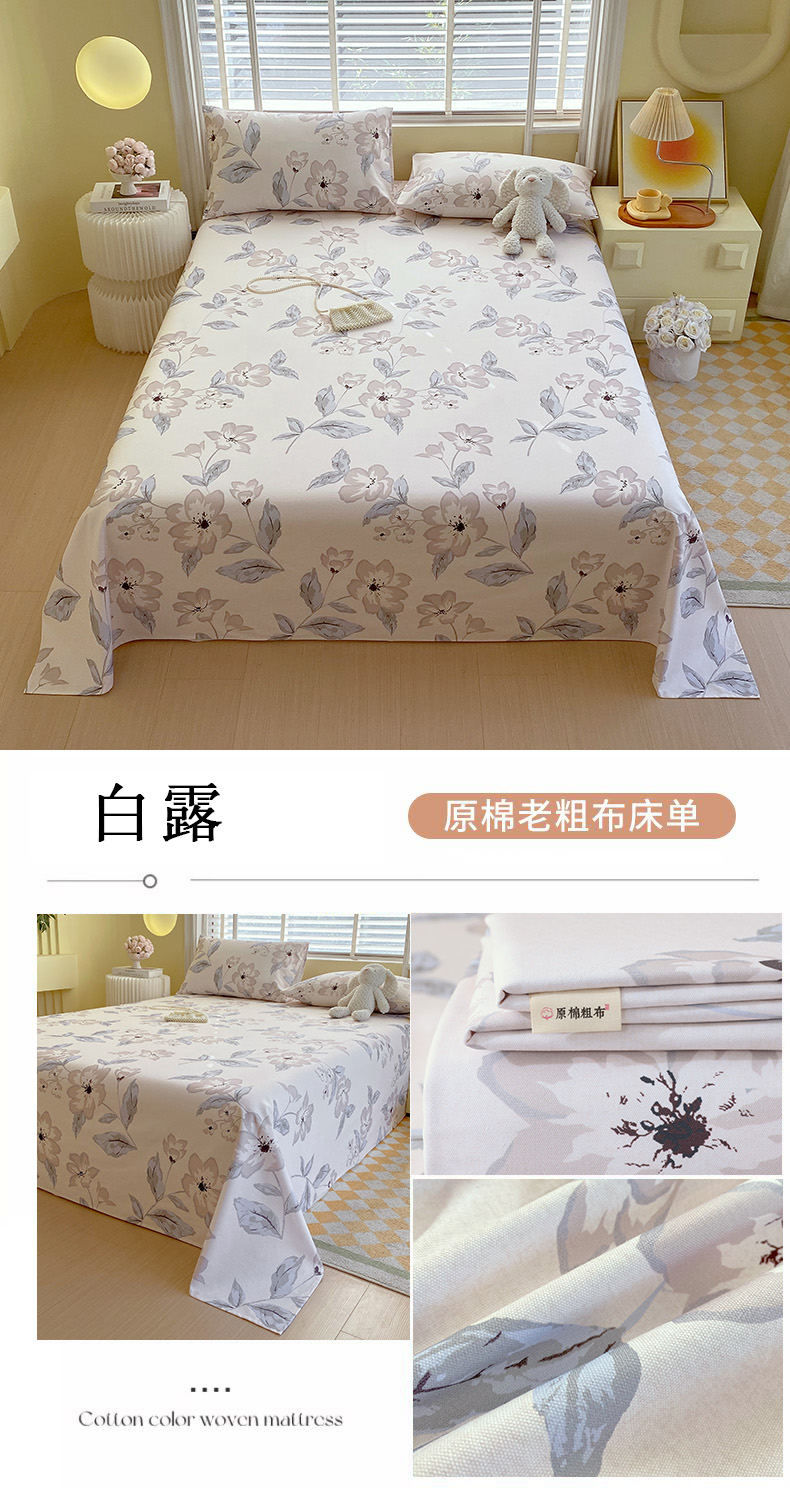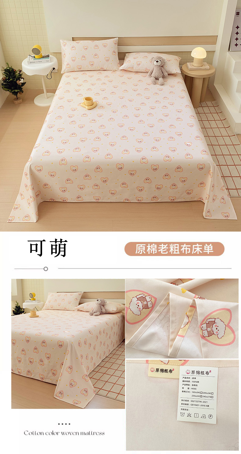 自然醒A类全棉老粗布床笠罩纯棉床垫保护罩全包宿舍单人床单枕套席梦思隔脏套NH177