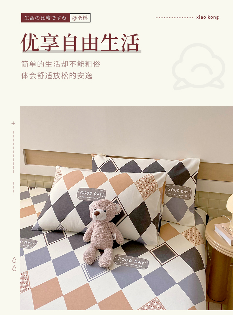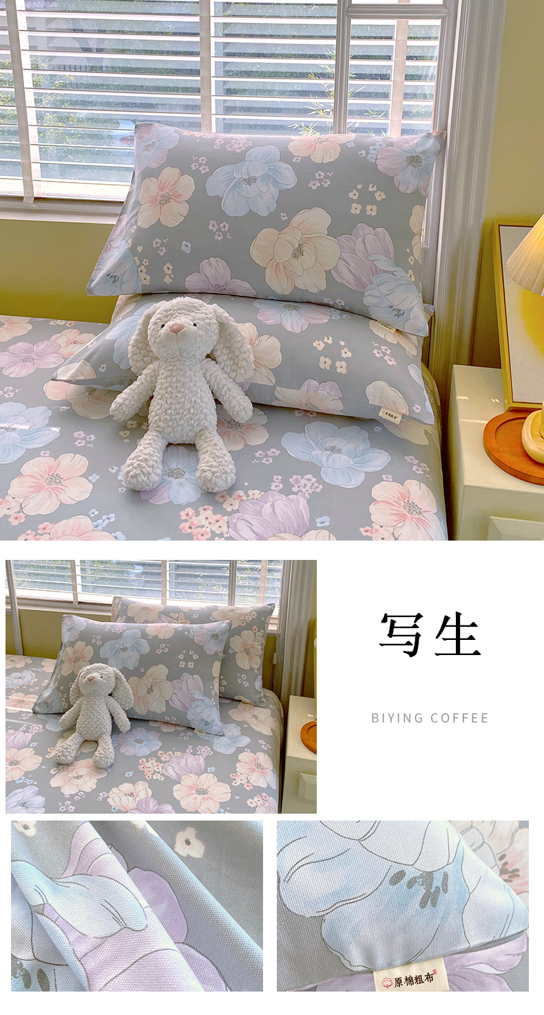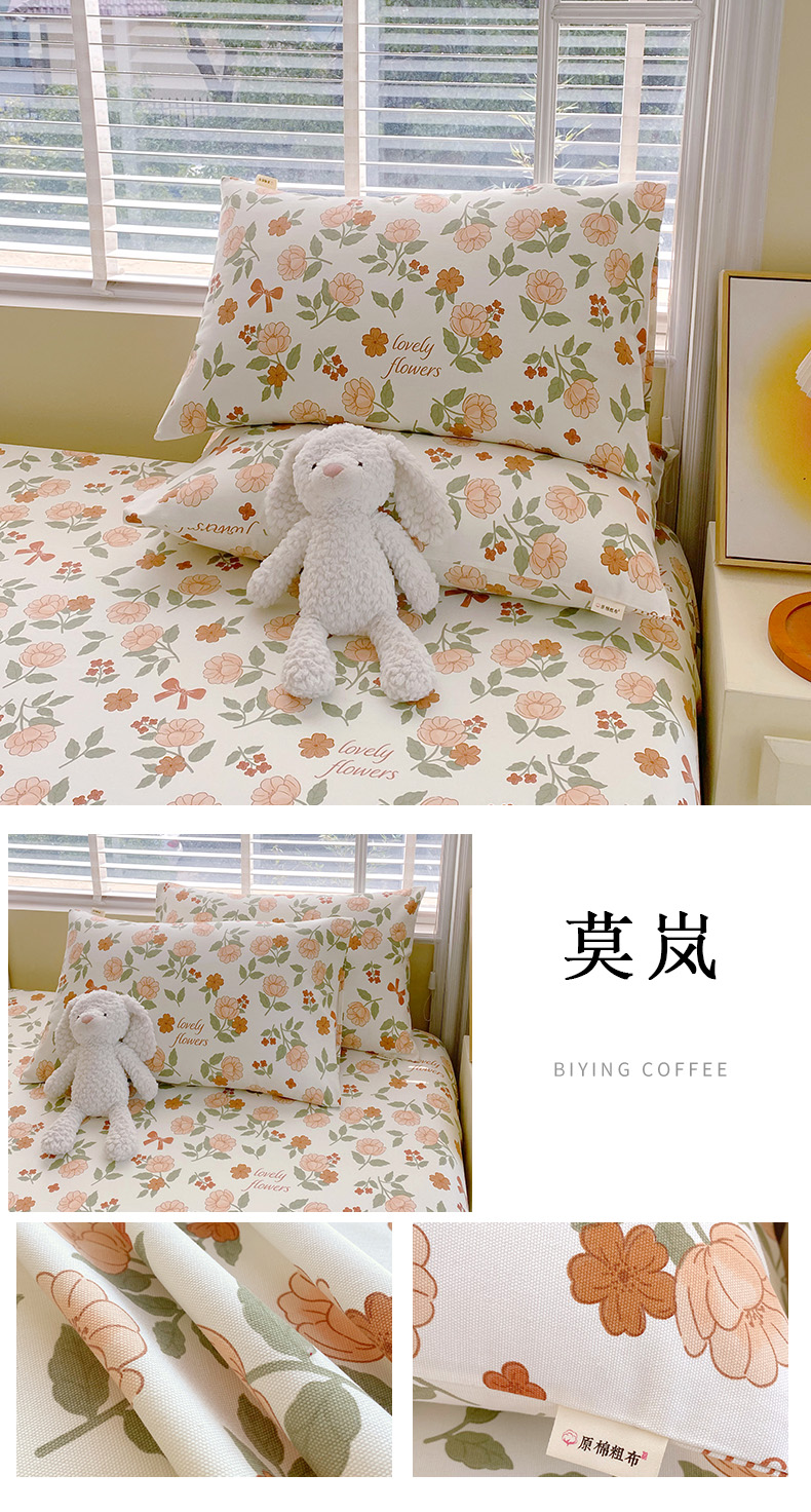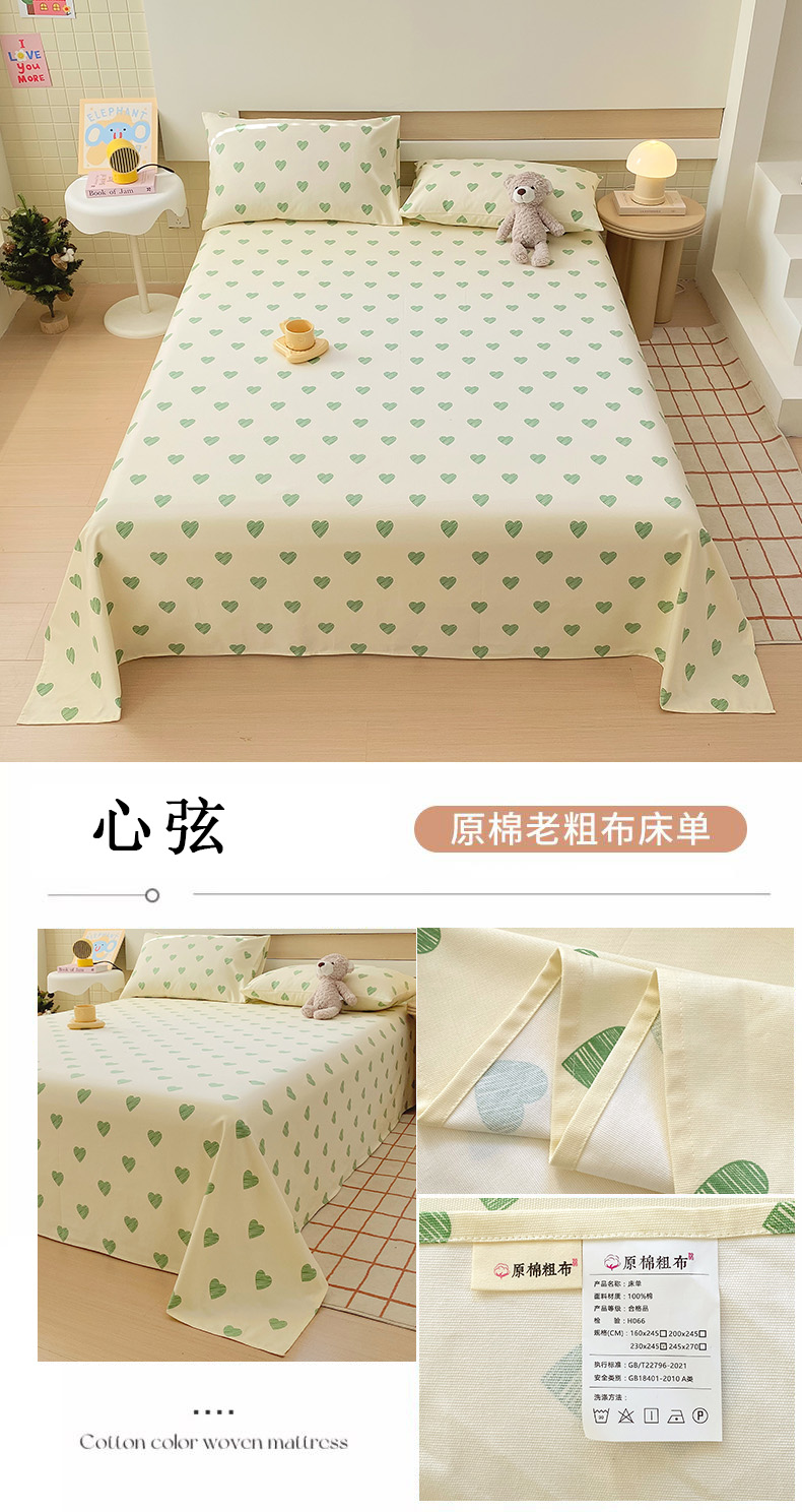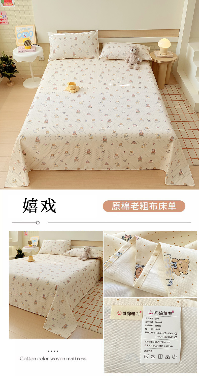 自然醒A类全棉老粗布床笠罩纯棉床垫保护罩全包宿舍单人床单枕套席梦思隔脏套NH177