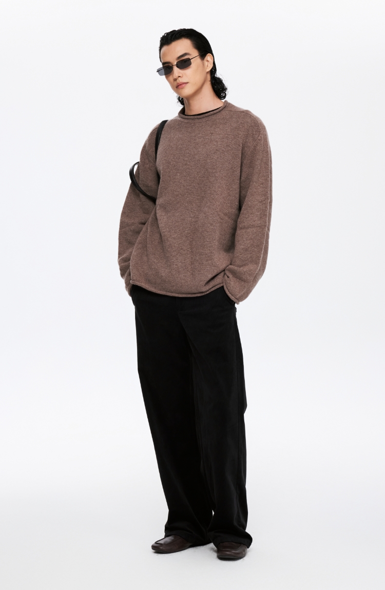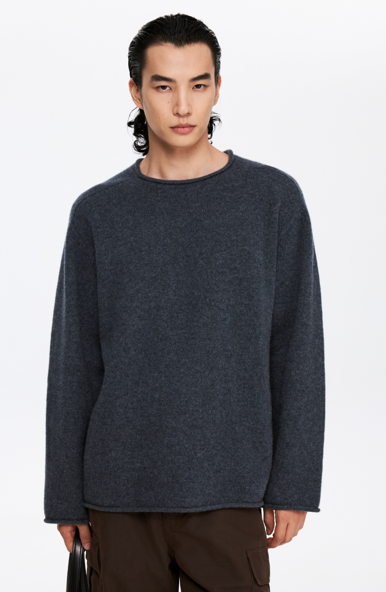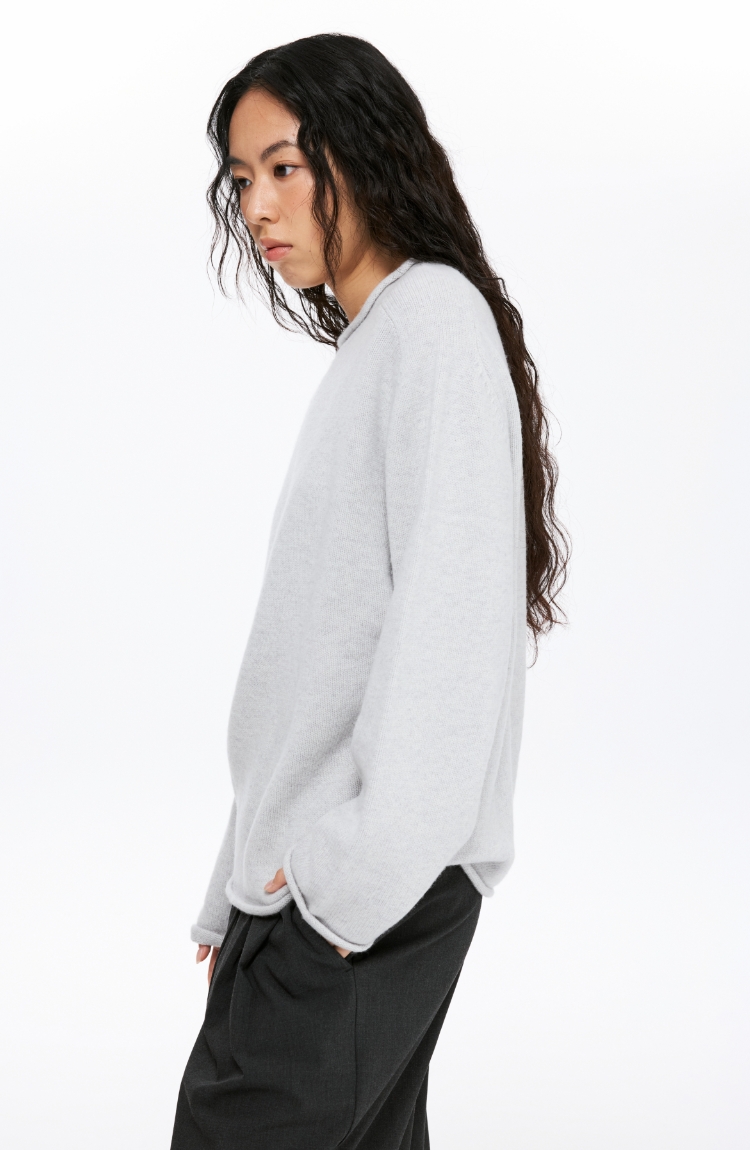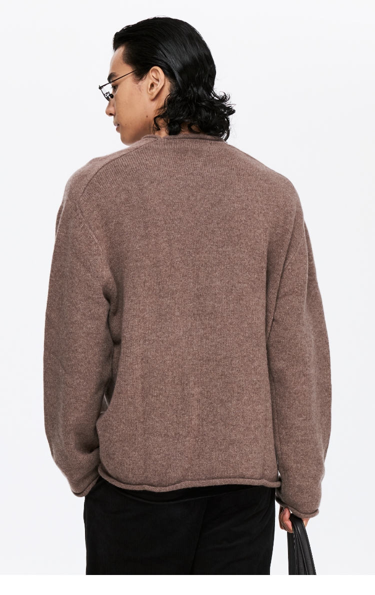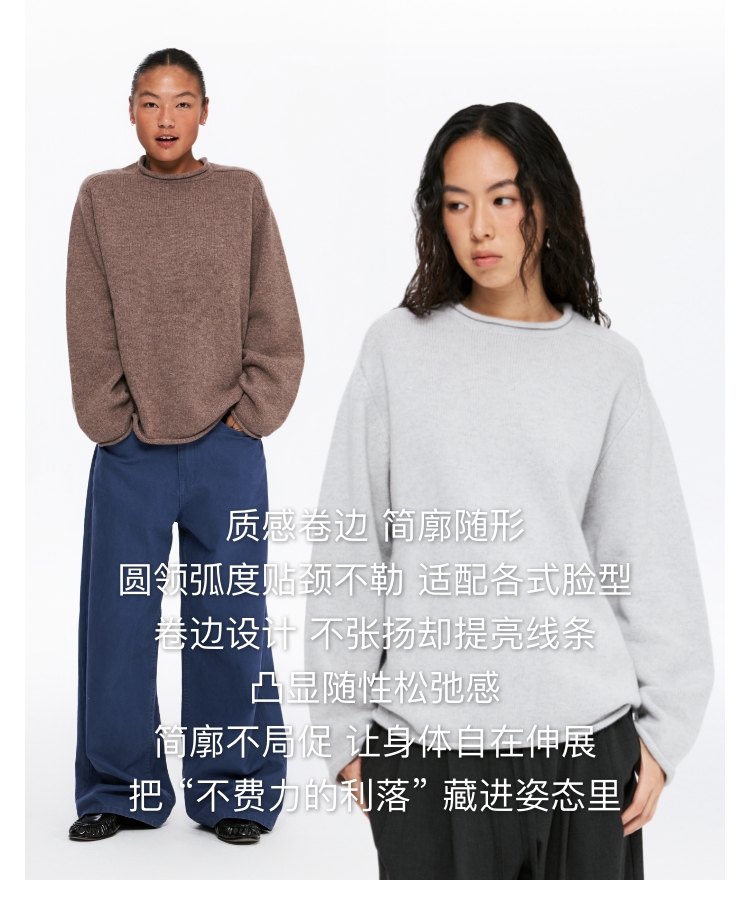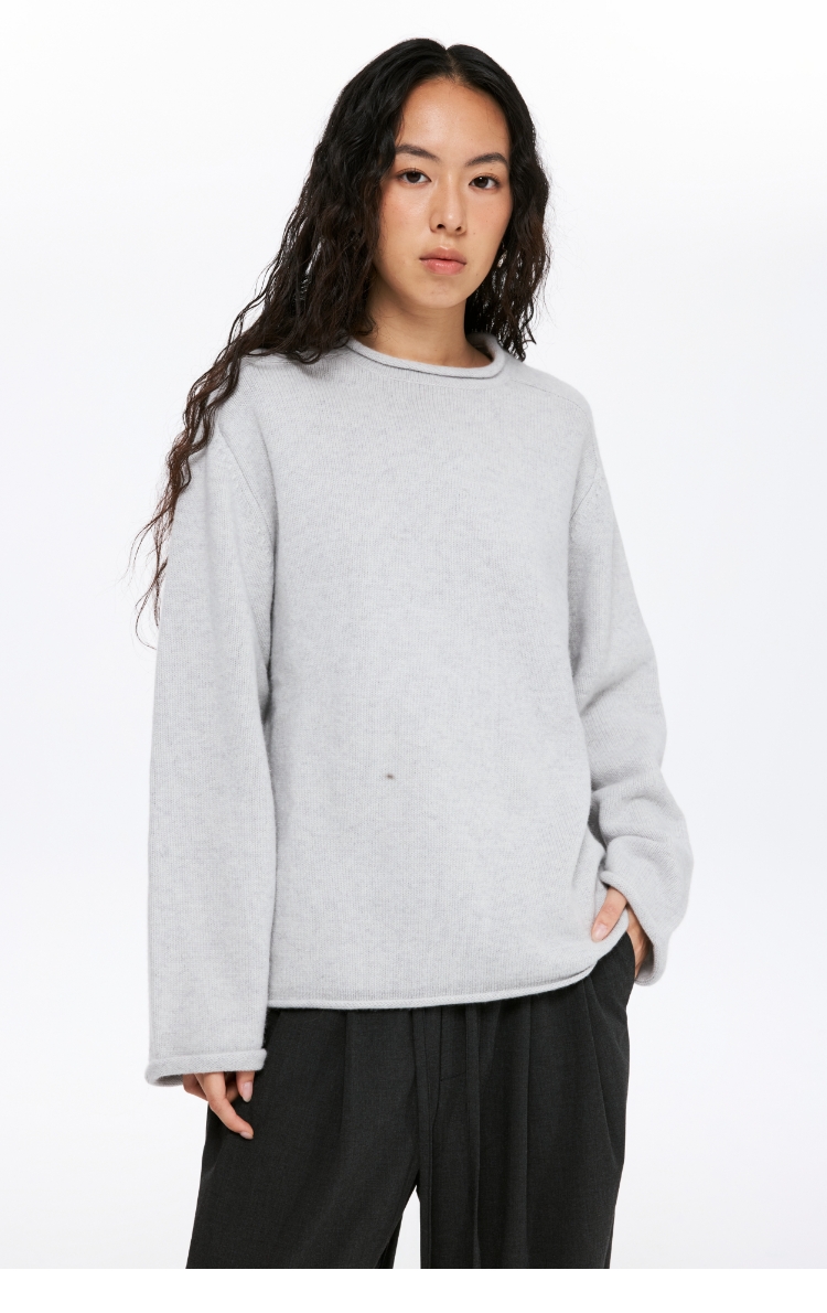 oneup全羊毛卷边圆领毛衣