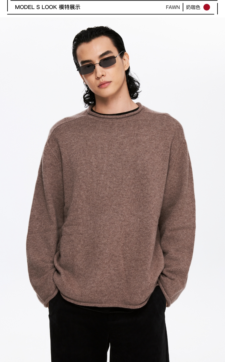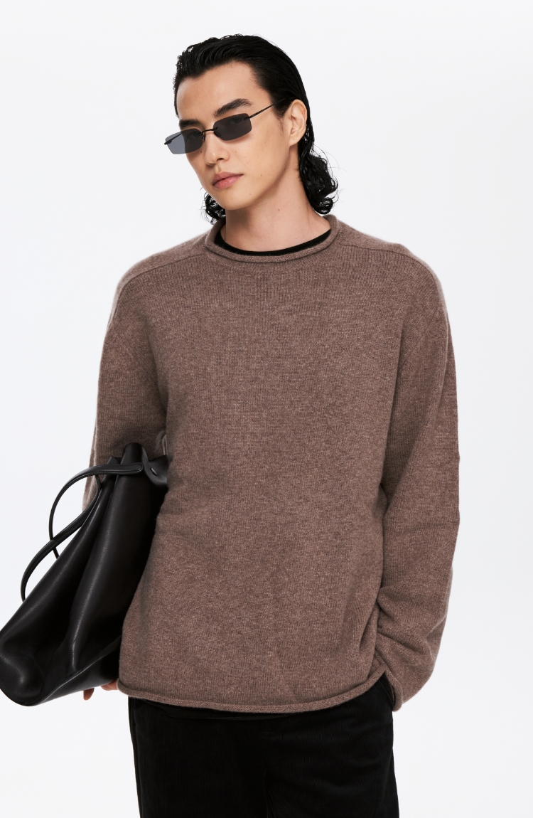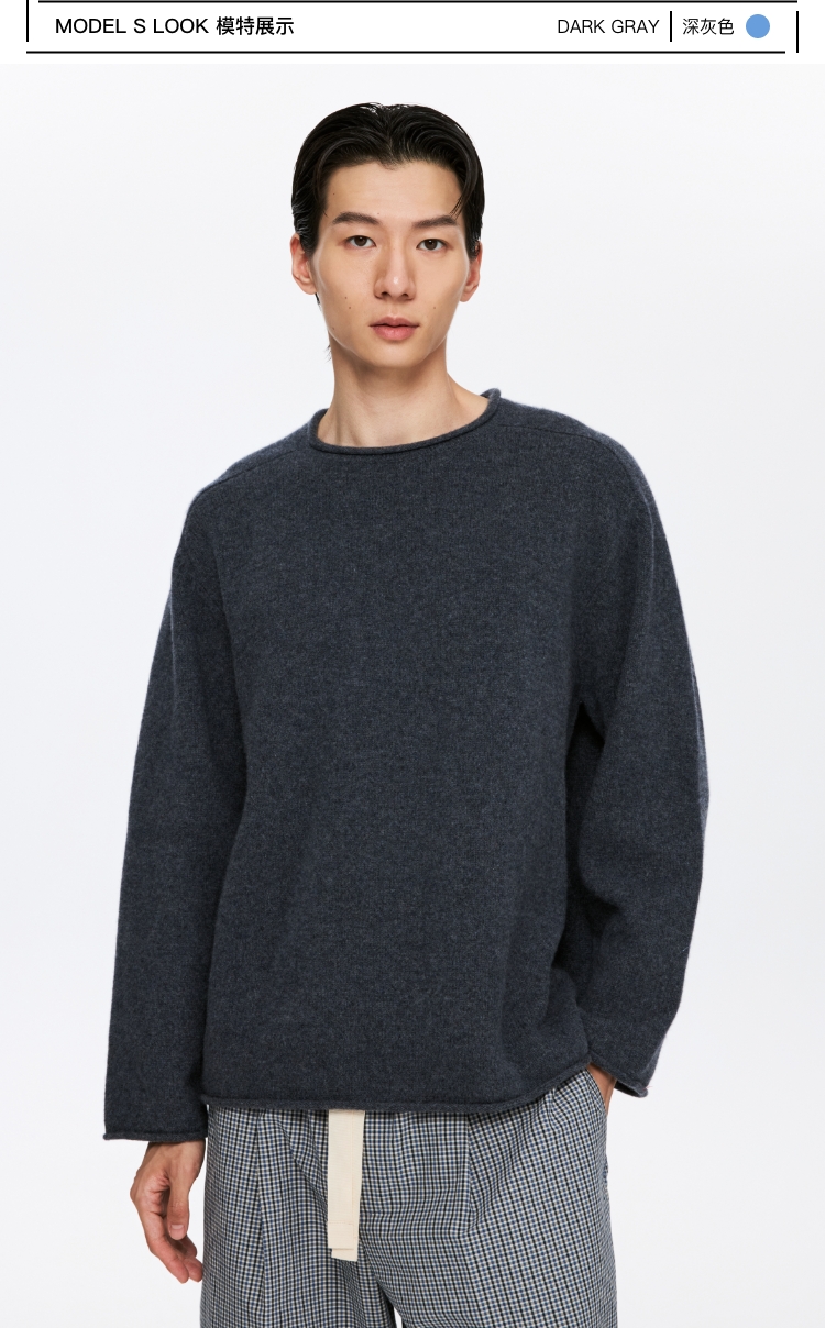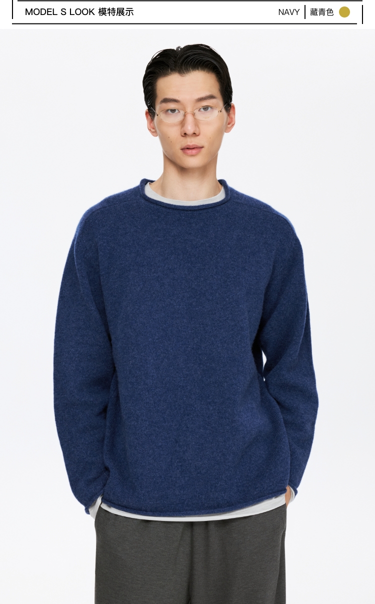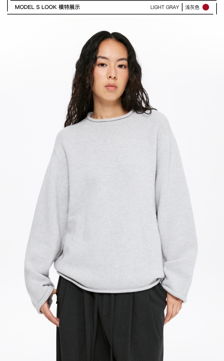 oneup全羊毛卷边圆领毛衣