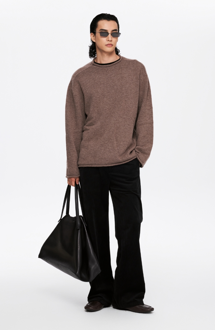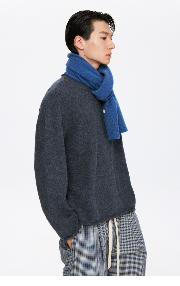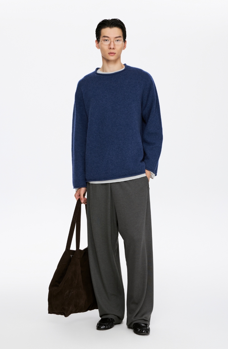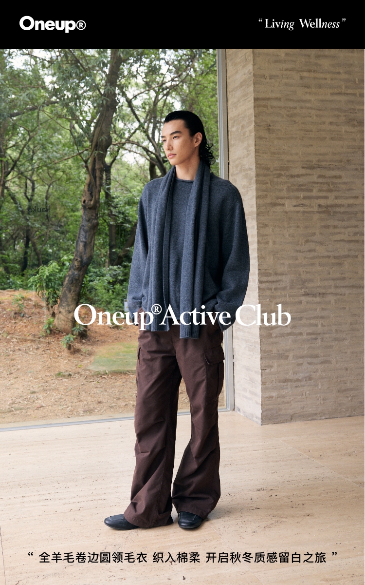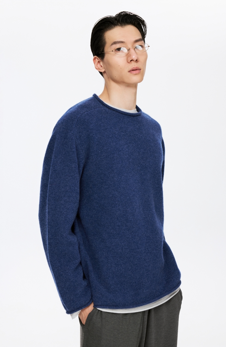 oneup全羊毛卷边圆领毛衣