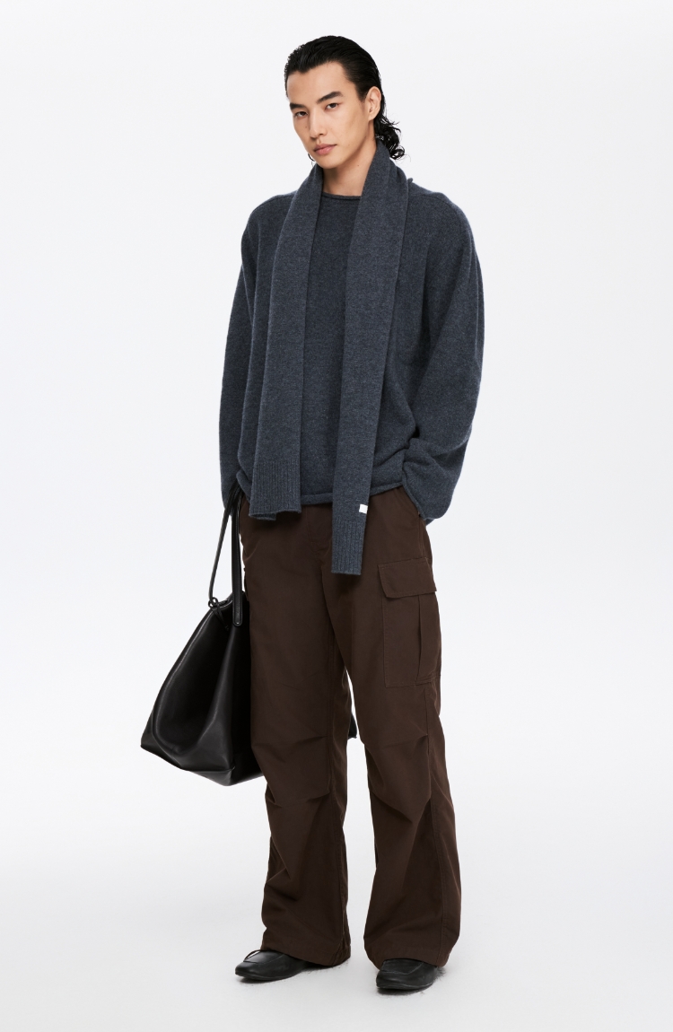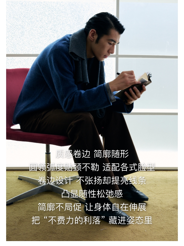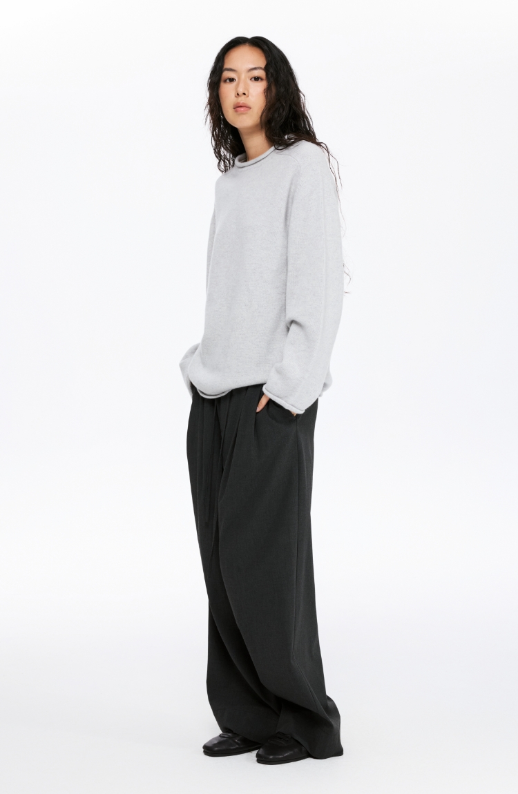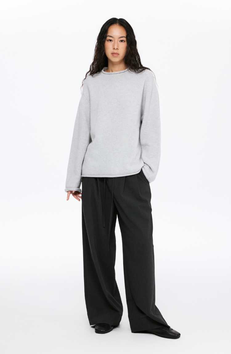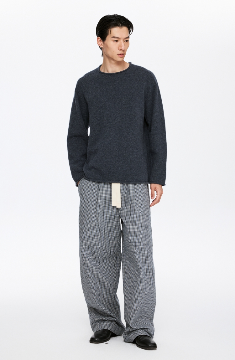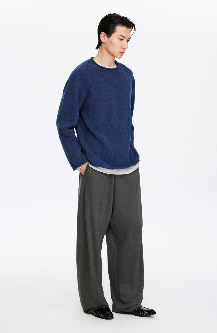 oneup全羊毛卷边圆领毛衣