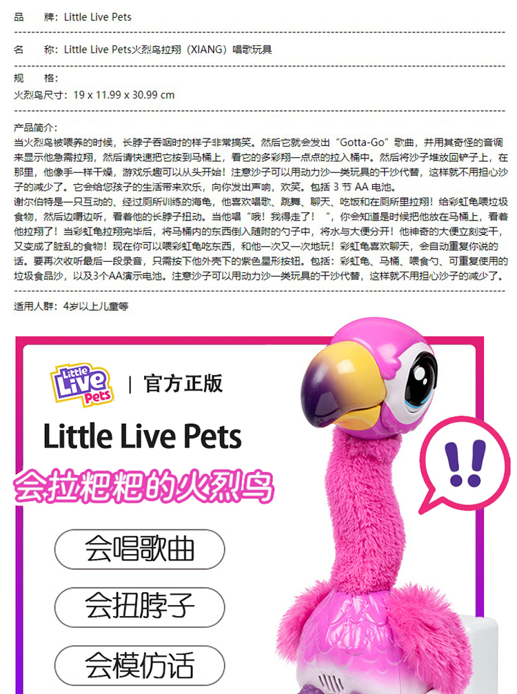 瑞华行玩具 26222 塑胶电子玩具 Little Live Pets - 火烈鸟