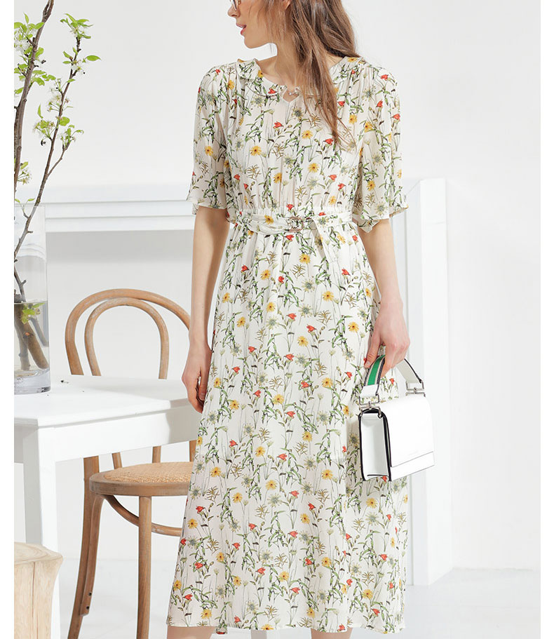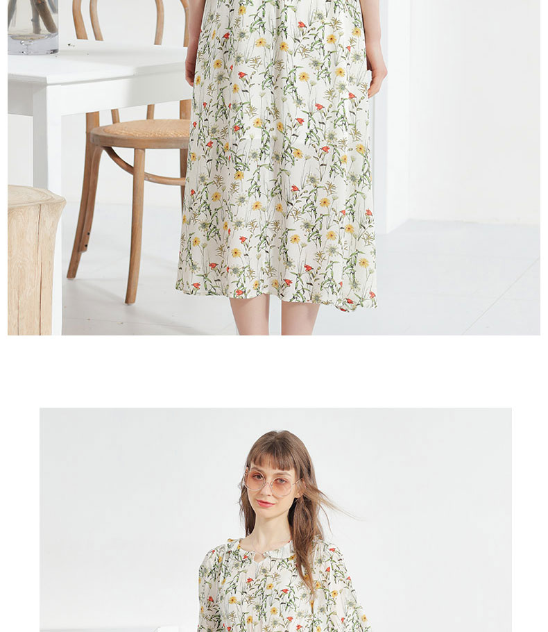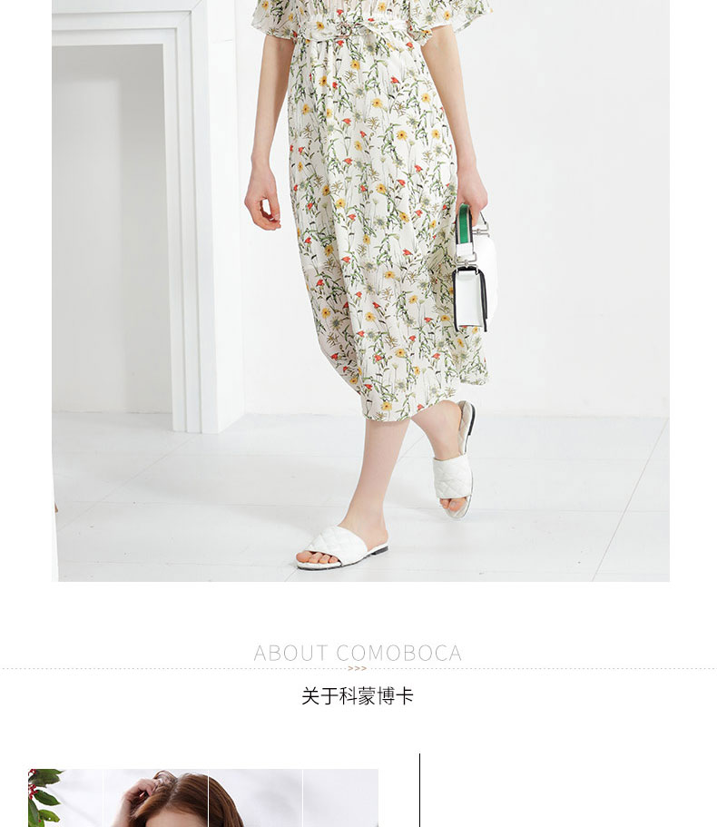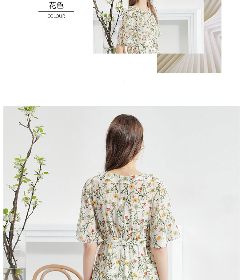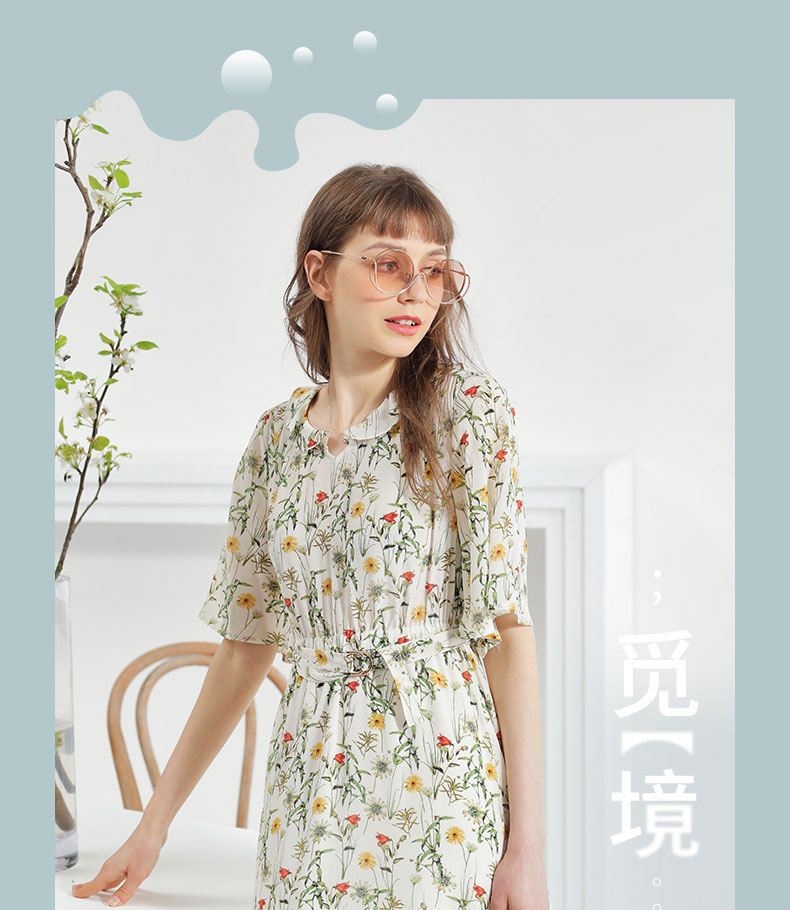 科蒙博卡夏季娃娃领时尚印花减龄真丝裙女 系带桑蚕丝连衣裙KXPGKKE501F1