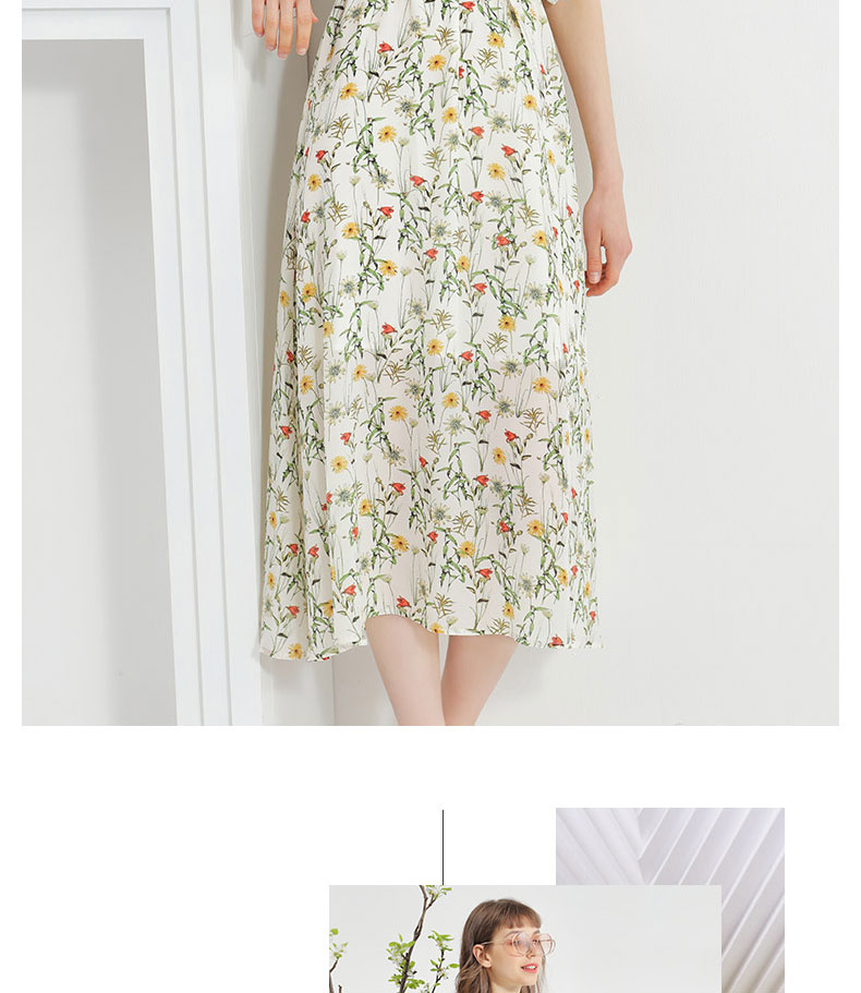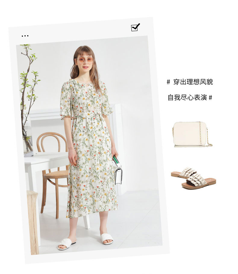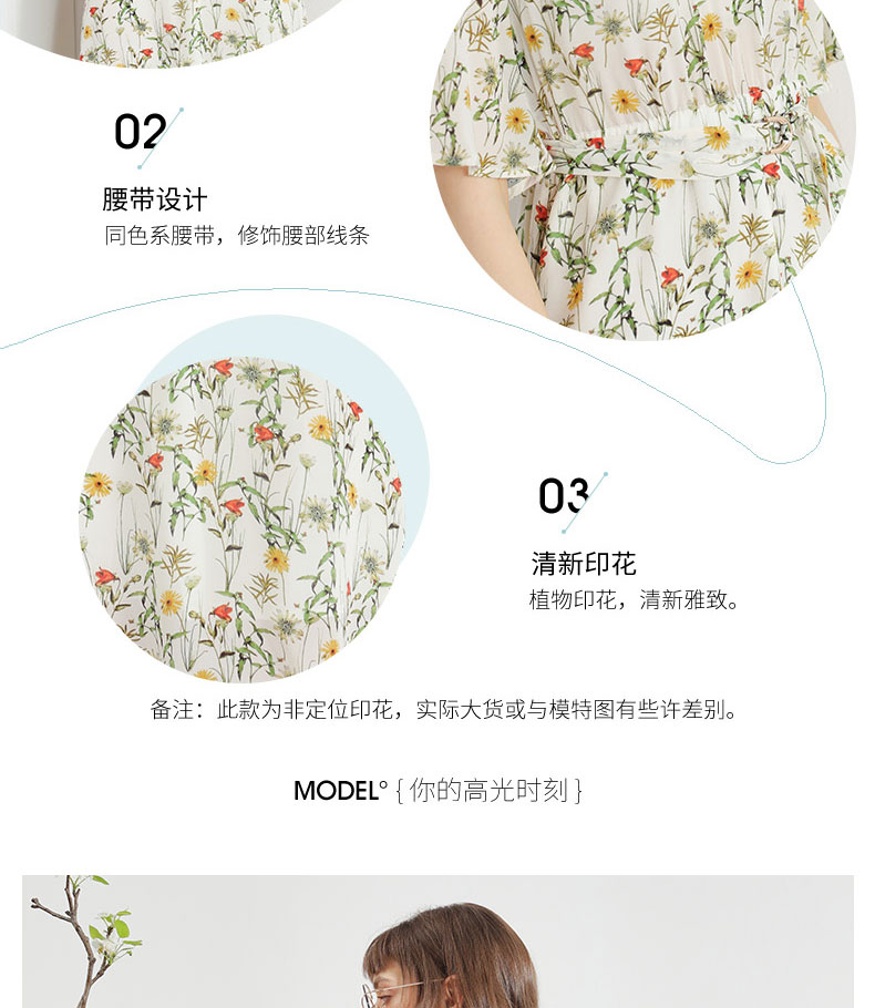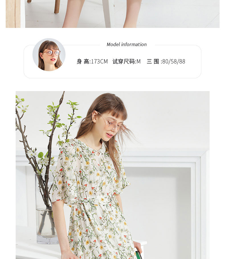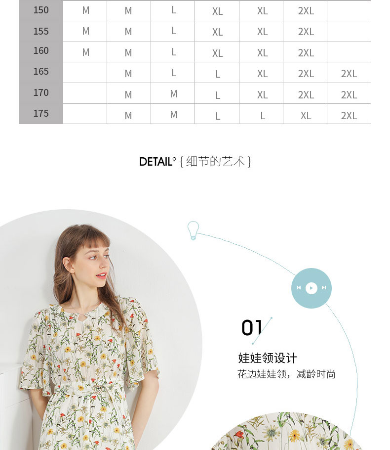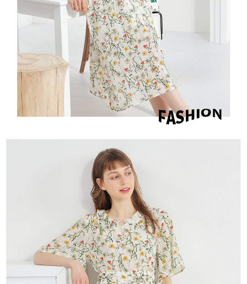 科蒙博卡夏季娃娃领时尚印花减龄真丝裙女 系带桑蚕丝连衣裙KXPGKKE501F1