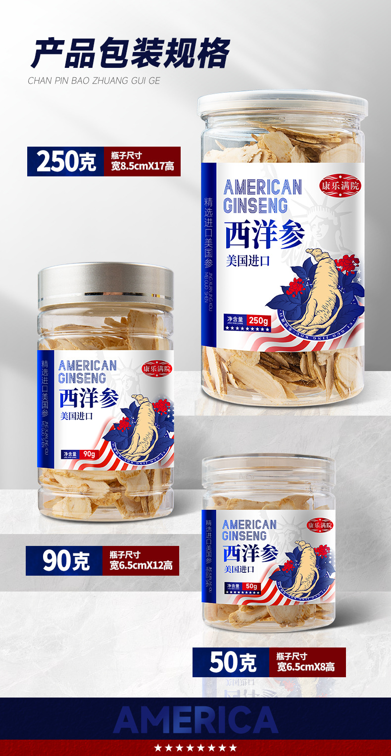 美国花旗参片 精选罐装50g90g250g 西洋参含片一件代发
