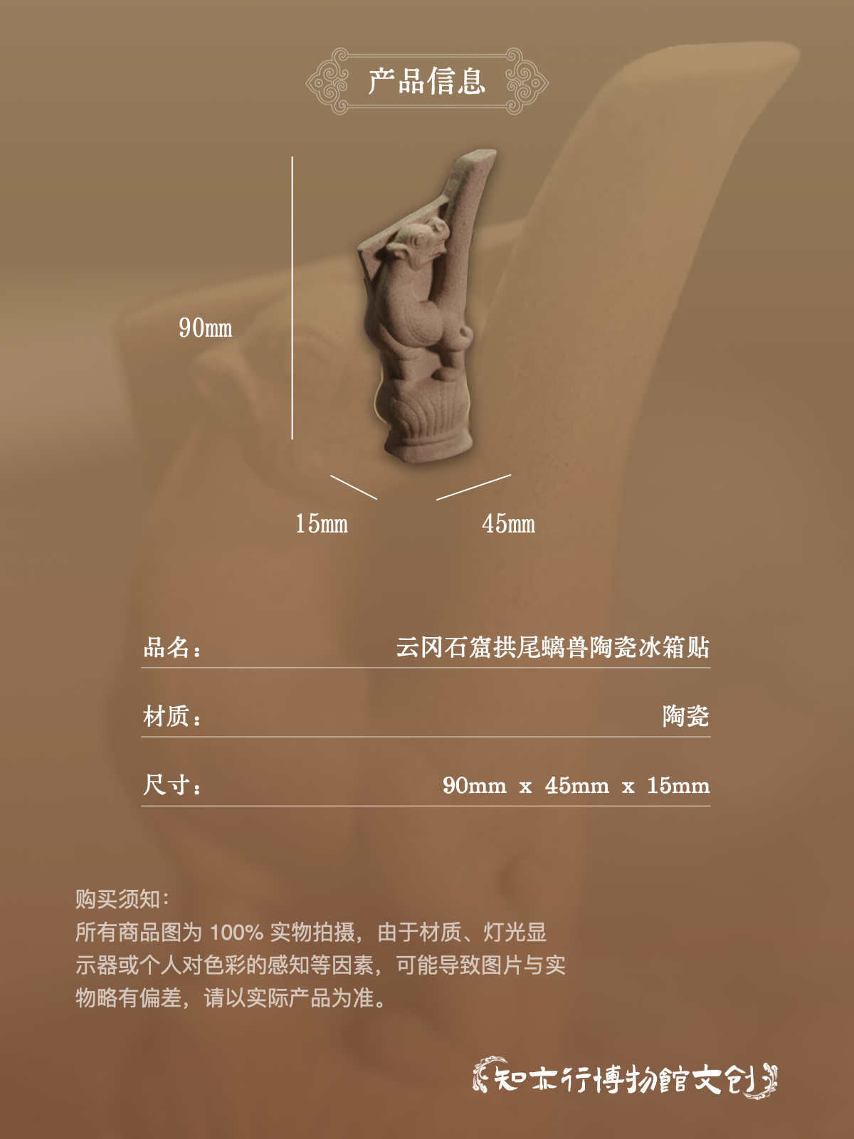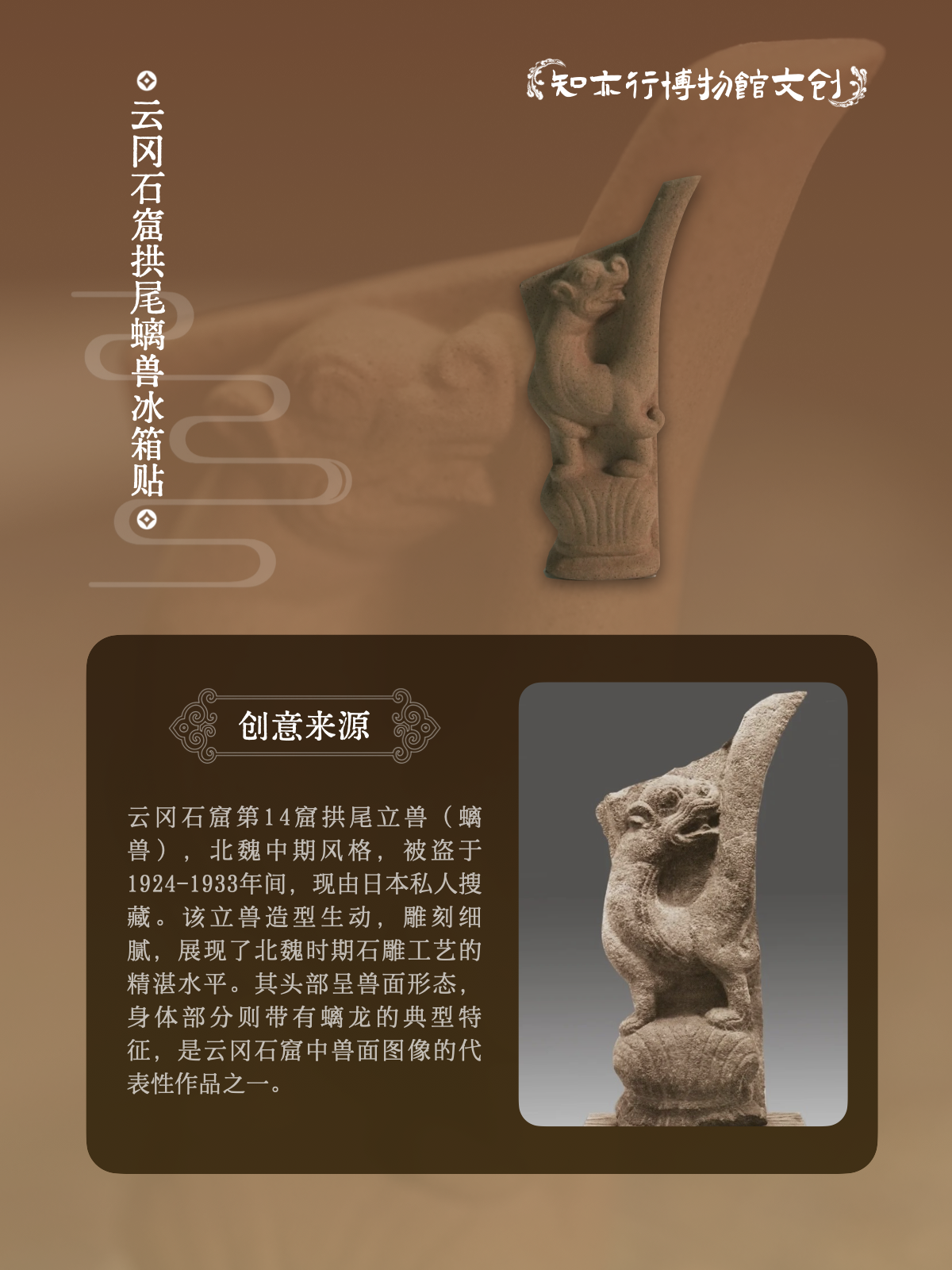 云岗石窟流失海外文物拱尾立兽陶瓷文创冰箱贴山西大同创意磁吸