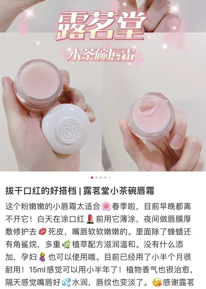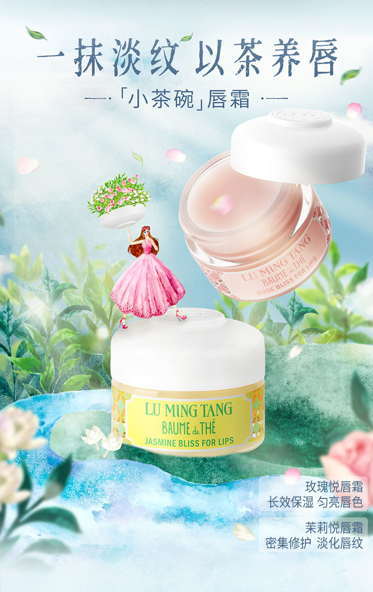 露茗堂唇霜一共有两款:玫瑰和茉莉,真没想到,它连香味都做得这么优秀,花香还原度很高,清雅舒心迷人,仿佛置身开满鲜花的后花园,身心都得到放松了!