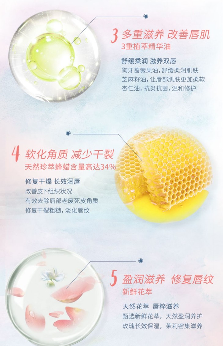 用蜂蜡代替了传统矿油,添加蔷薇果油、芝麻油、杏仁油,都是滋润界的大佬,对付嘴唇干裂、唇纹自有一套!哑光质感,上嘴轻柔细腻,不粘嘴,是那种恰到好处的滋润,不会有浮于表面的油腻感~