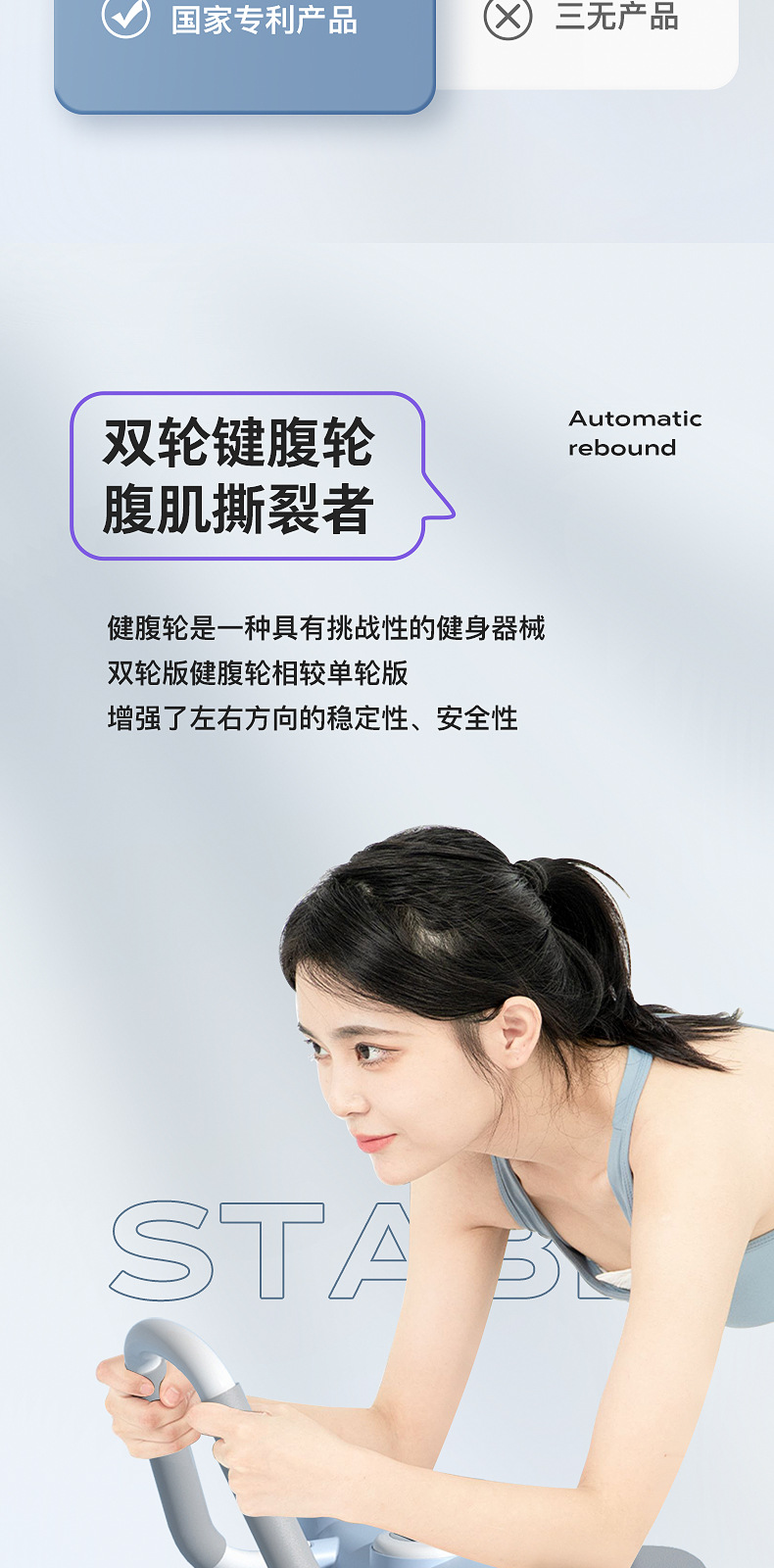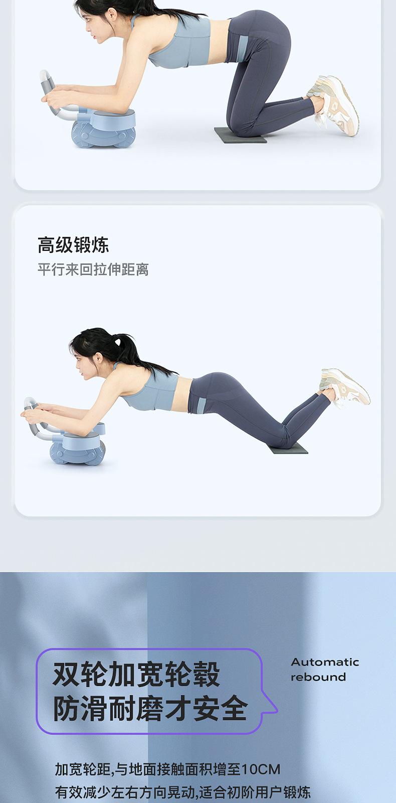 「健腹+平板支撑!二合一」新款多功能家用平板支撑健腹轮 男士健身器材健腹卷腹器肘撑健腹轮健康训练