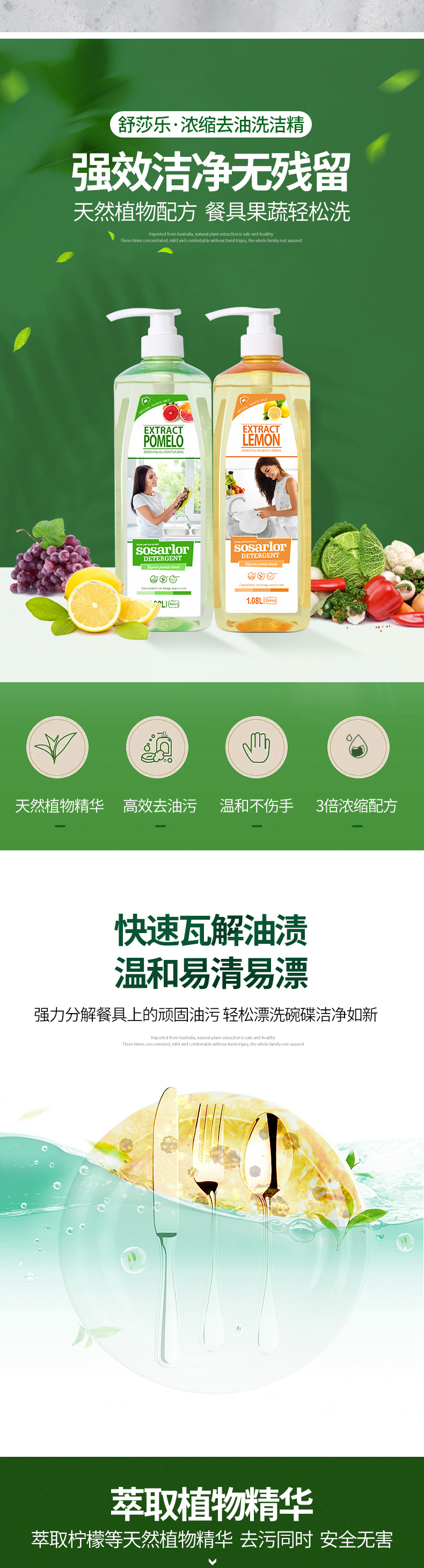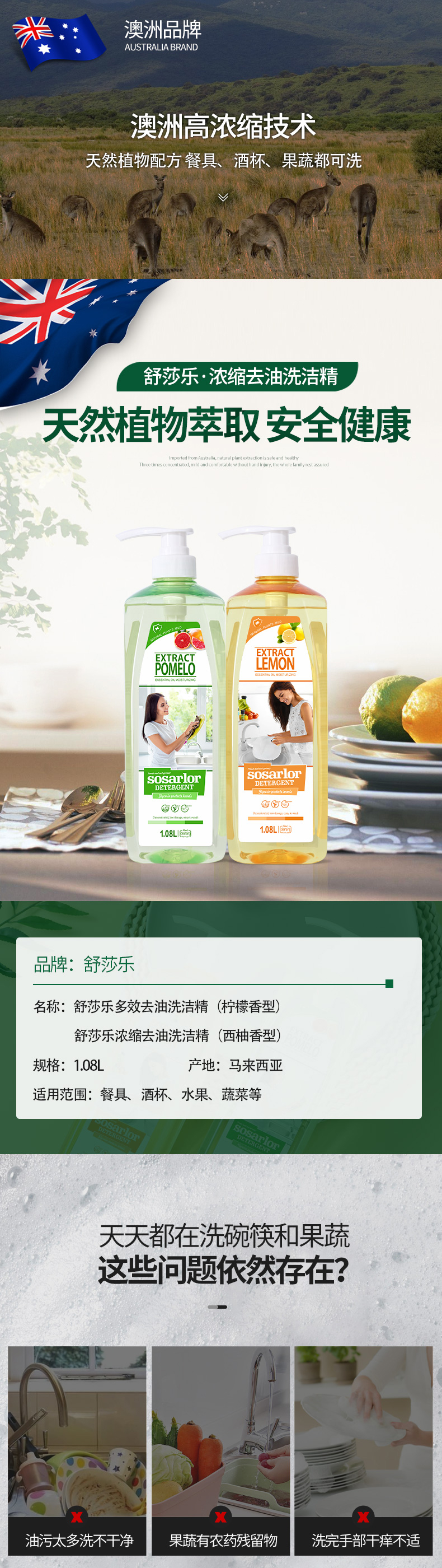 舒莎乐多效去油洗洁精 1.08L 马来西亚