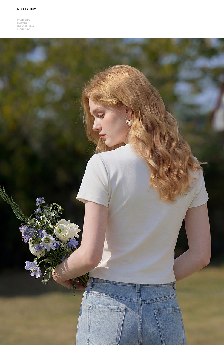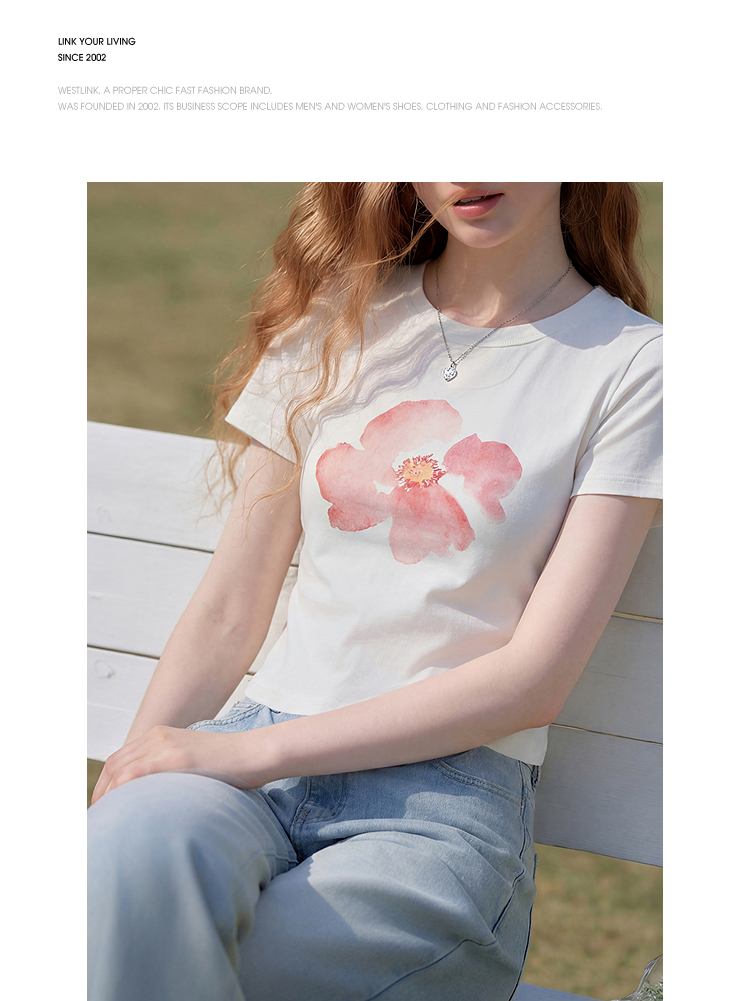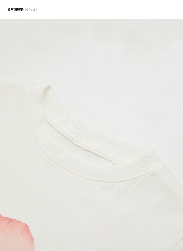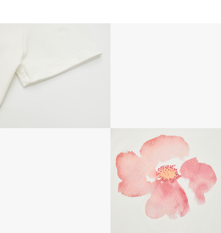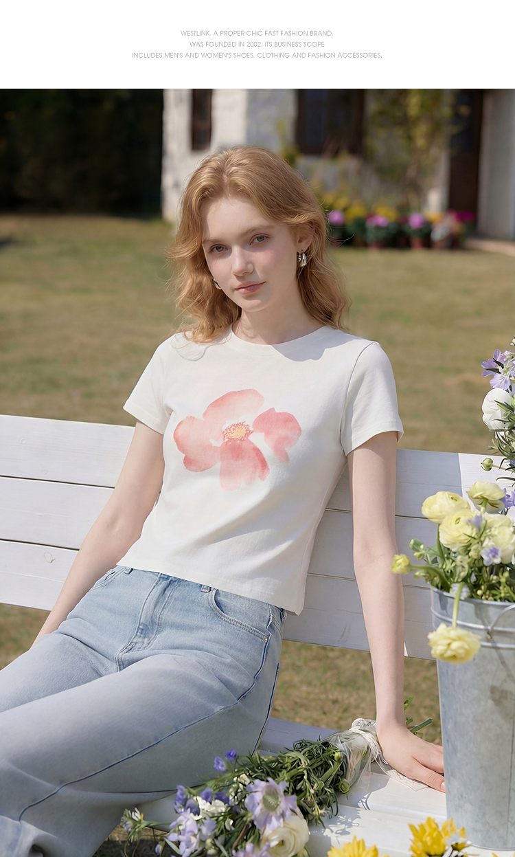 西遇2026夏新款水彩花卉印花短袖T恤女宽松休闲百搭显瘦白色上衣E0060273