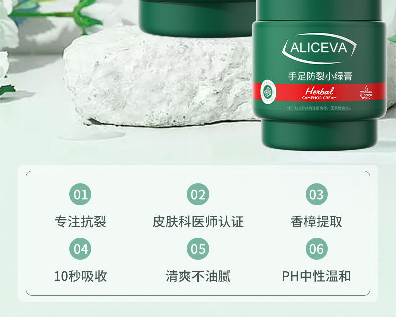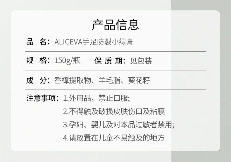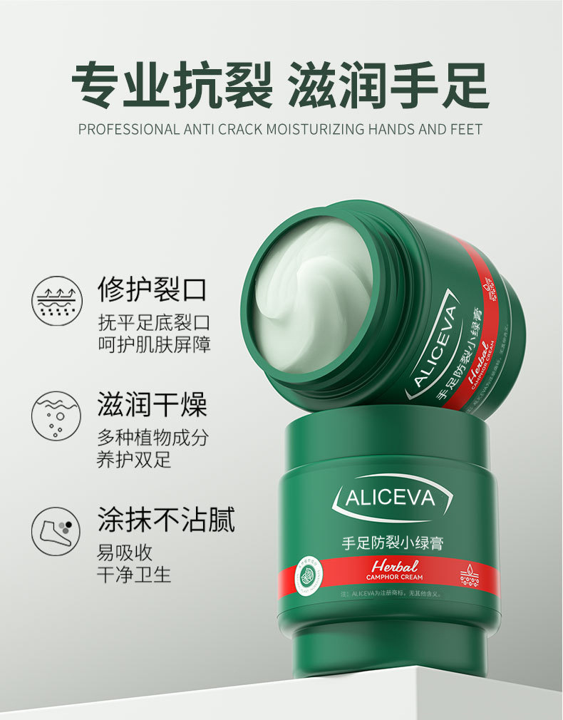 「买三送一!手足防裂小绿膏」ALICEVA手足防裂小绿膏 滋润保湿防冻干裂改善粗糙手足皴裂膏美容护肤