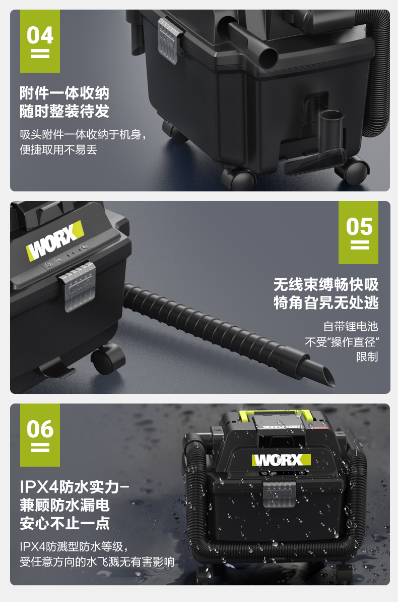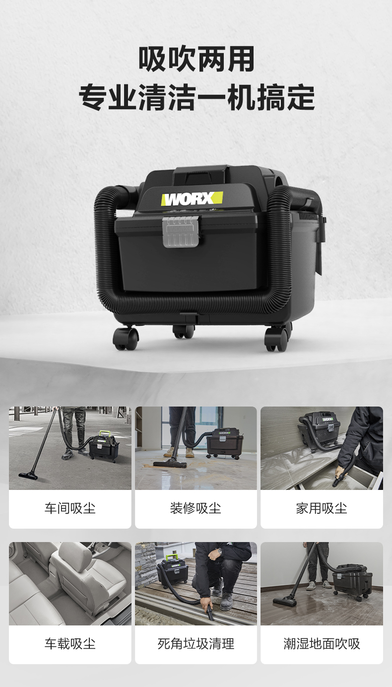 威克士无线车载吸尘器WU037车用家用充电强力大功率电动工具