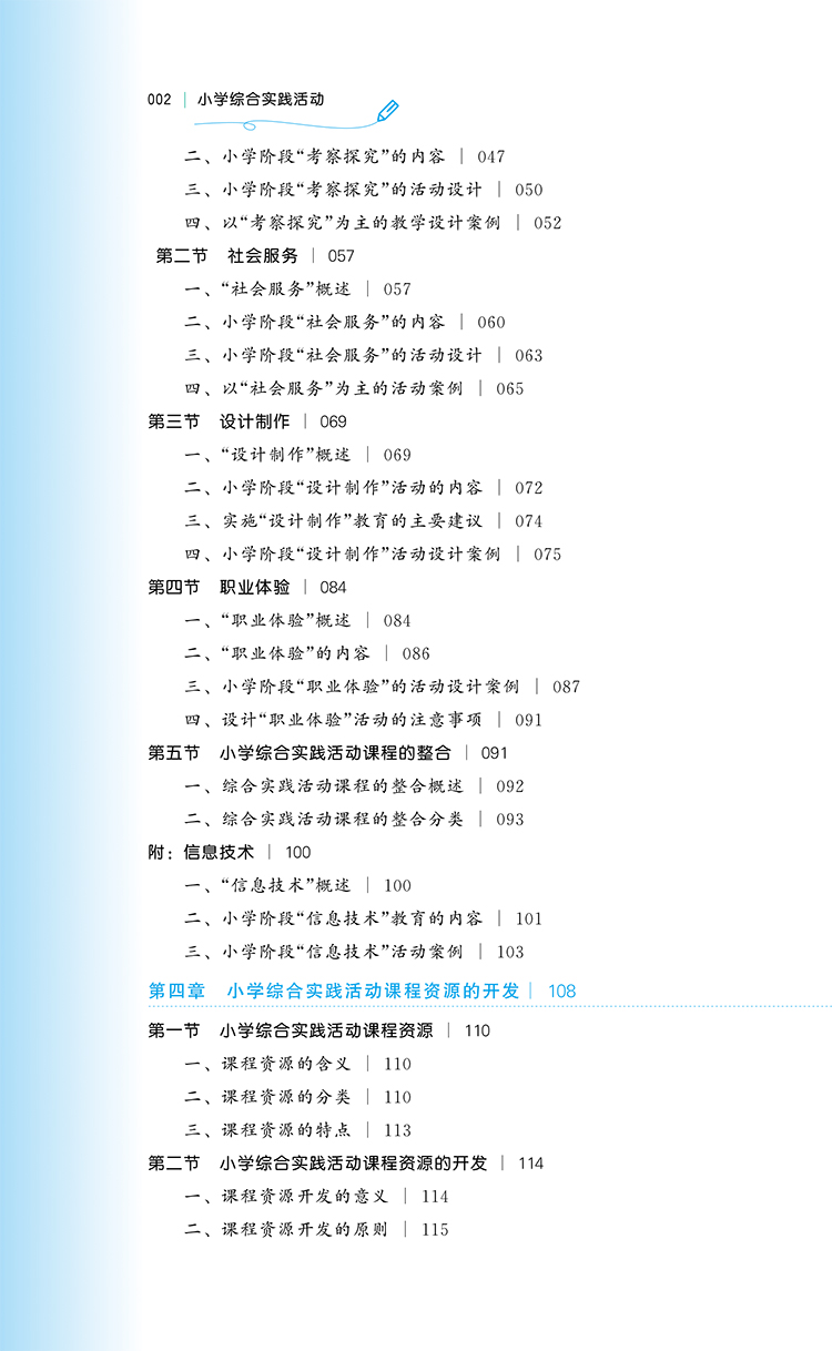 本书为再版书,第一版书稿发行很好。修订版书稿以《义务教育阶段综合实践活动课程指导纲要(2021)》为指导,从课程理念与课程目标、课程内容与课程实施要求、课程实施建议、课程评价建议和典型活动设计案例与说明五个方面进行了阐述。对当前综合实践活动走向常态实施和有效实施将起到积极地促进作用。 本书适合小教专业的学生参考使用,也对本专业感兴趣的读者有参考价值。