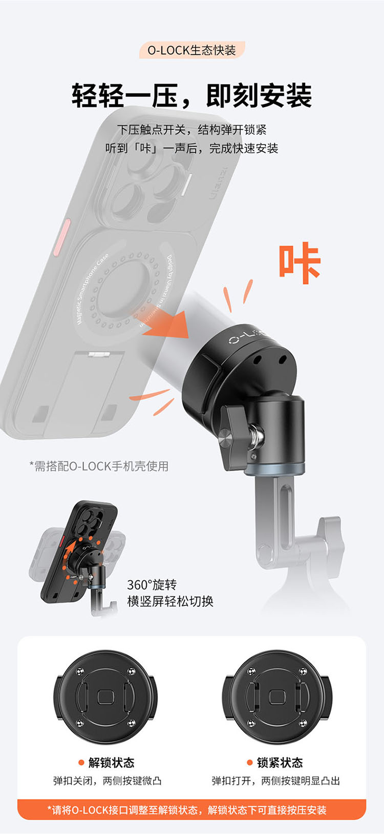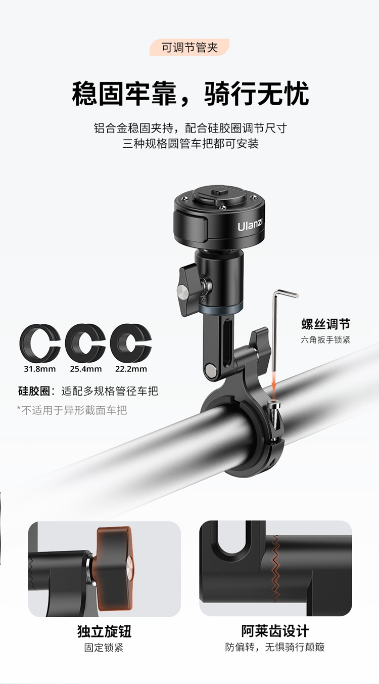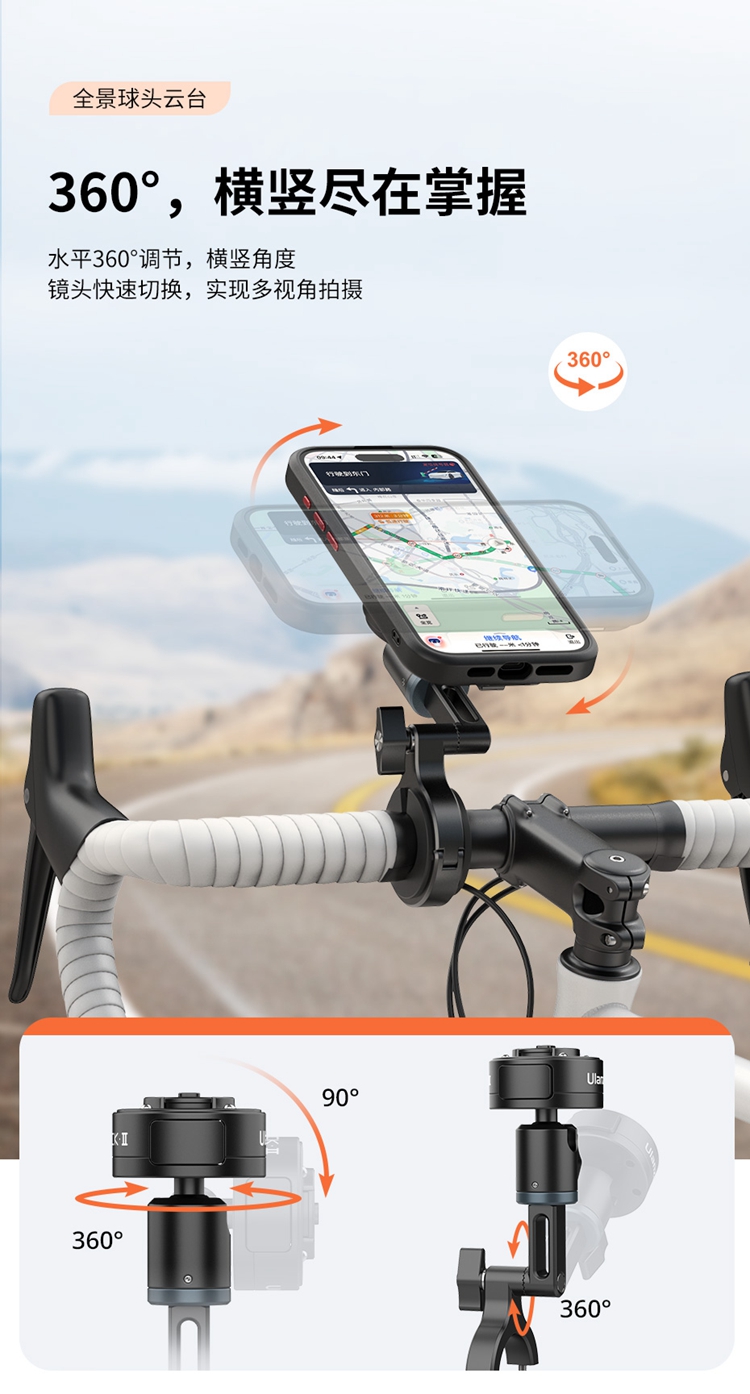 Ulanzi 优篮子O-LOCK骑行支架管夹款手机直播拍摄车载防抖导航车把固定