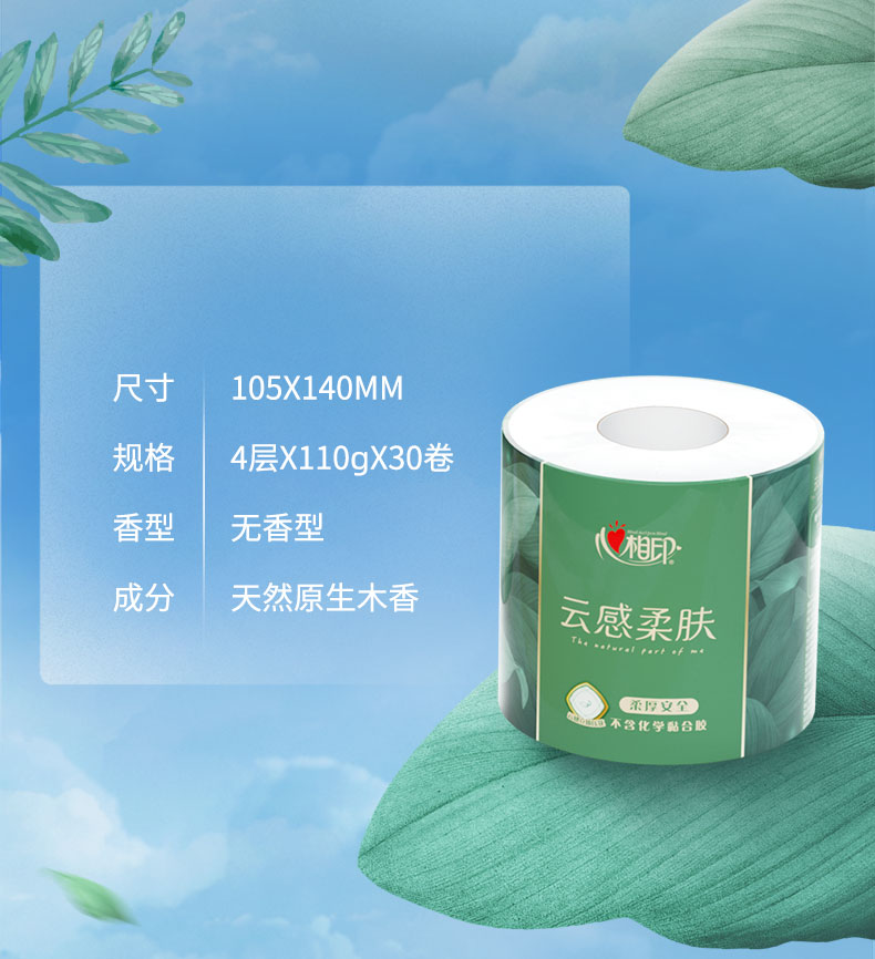 【日化洗护】心相印云感柔肤卷纸110克*30卷BT5312QSH