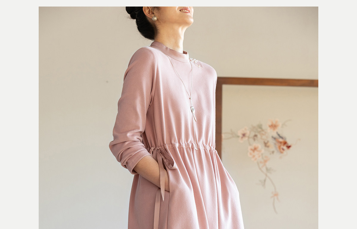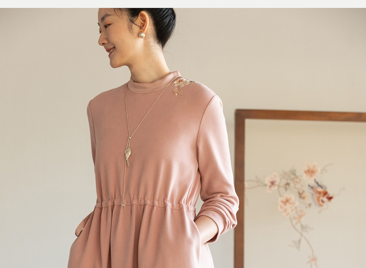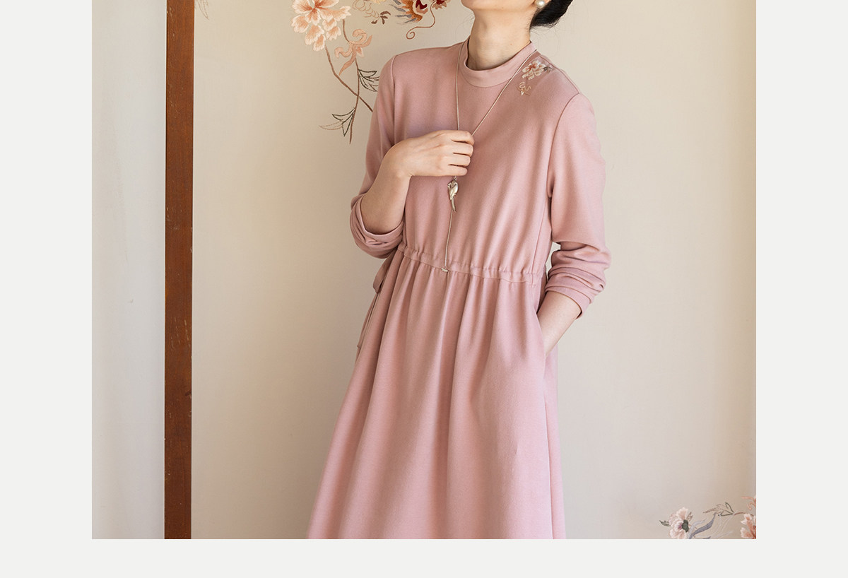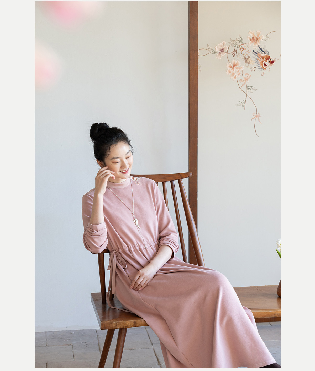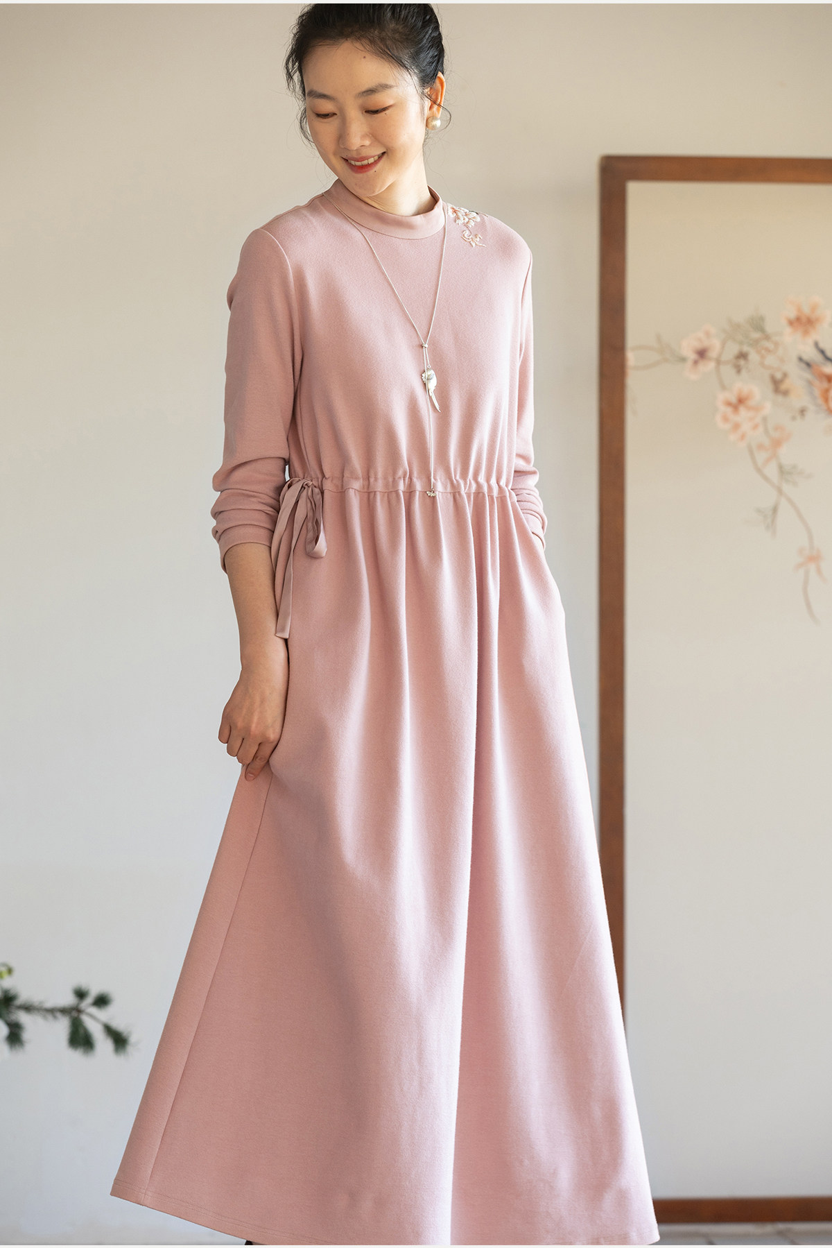 牧衣游原创 手工刺绣棉质连衣裙女新款宽松简约文艺针织长裙 绮思