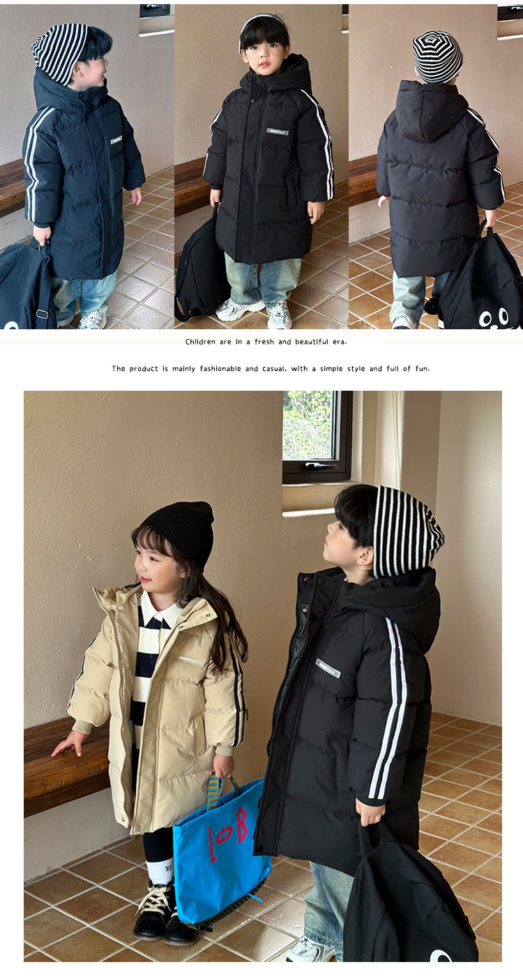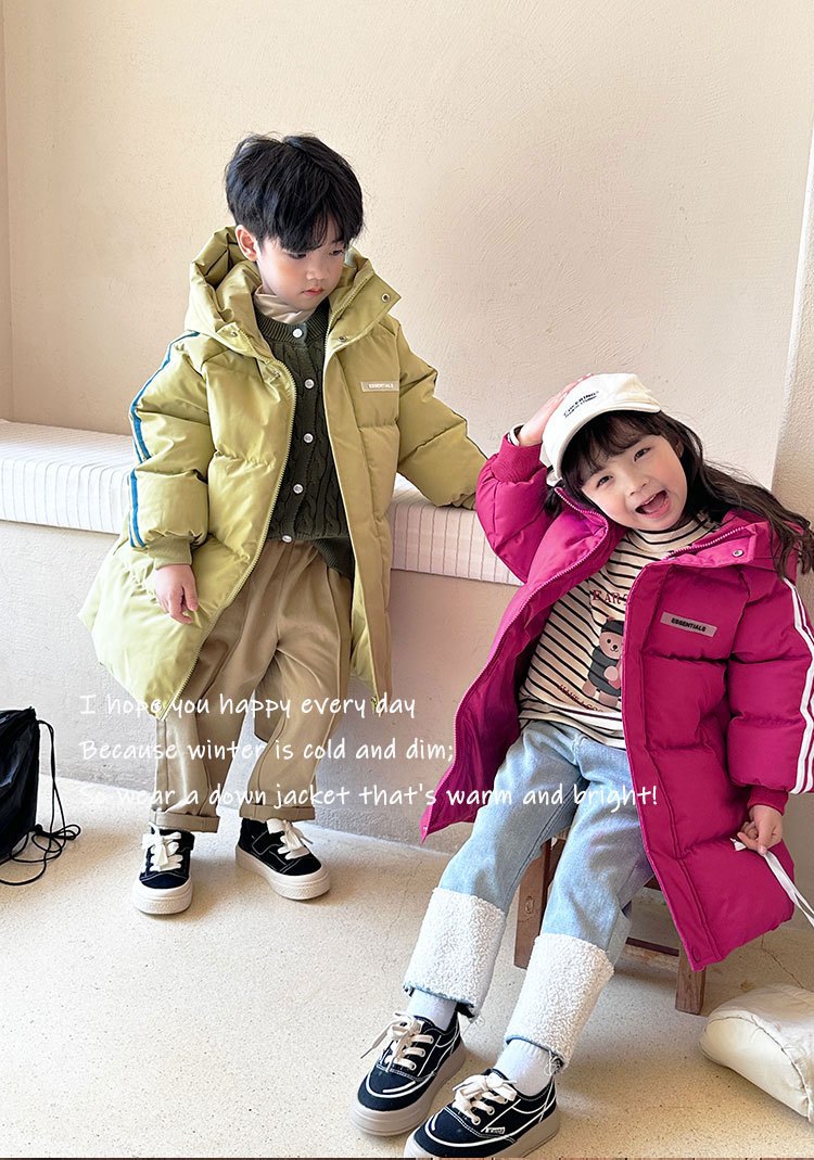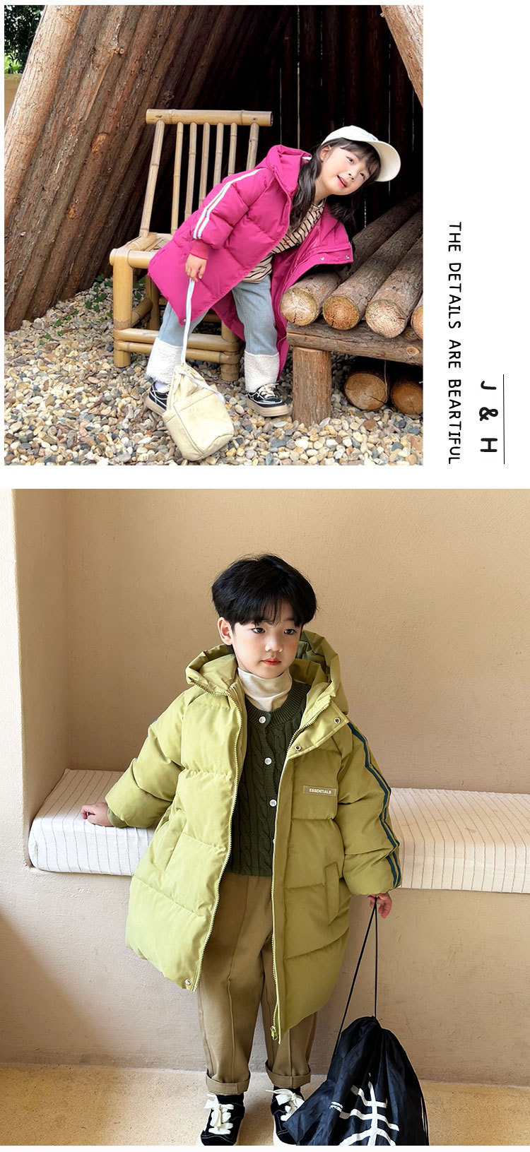 降温必备【吾家冬季儿童加厚中长款棉服】超高性价比 一款中长款的糖果色棉服 甄选上等舒适面料 连帽设计