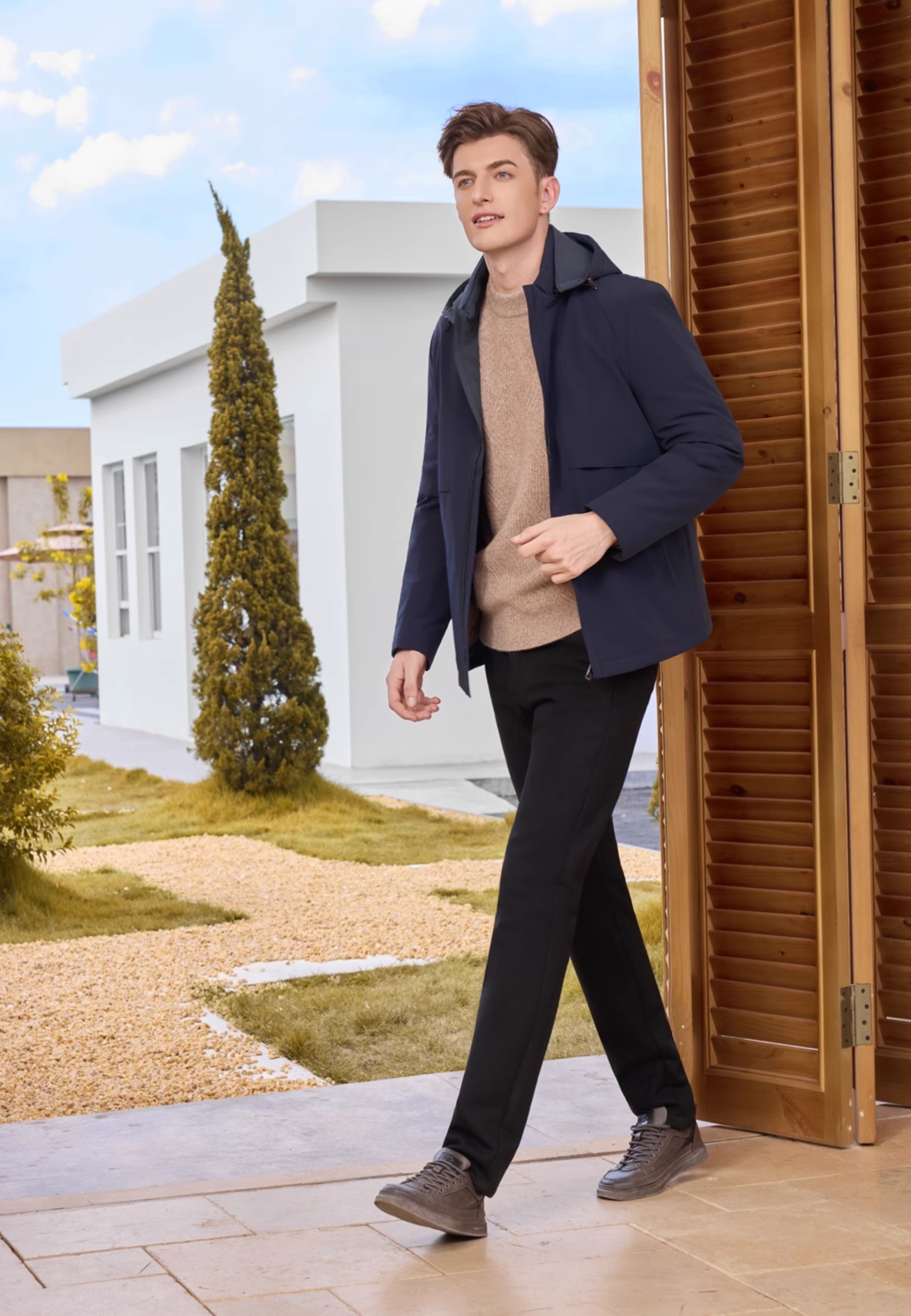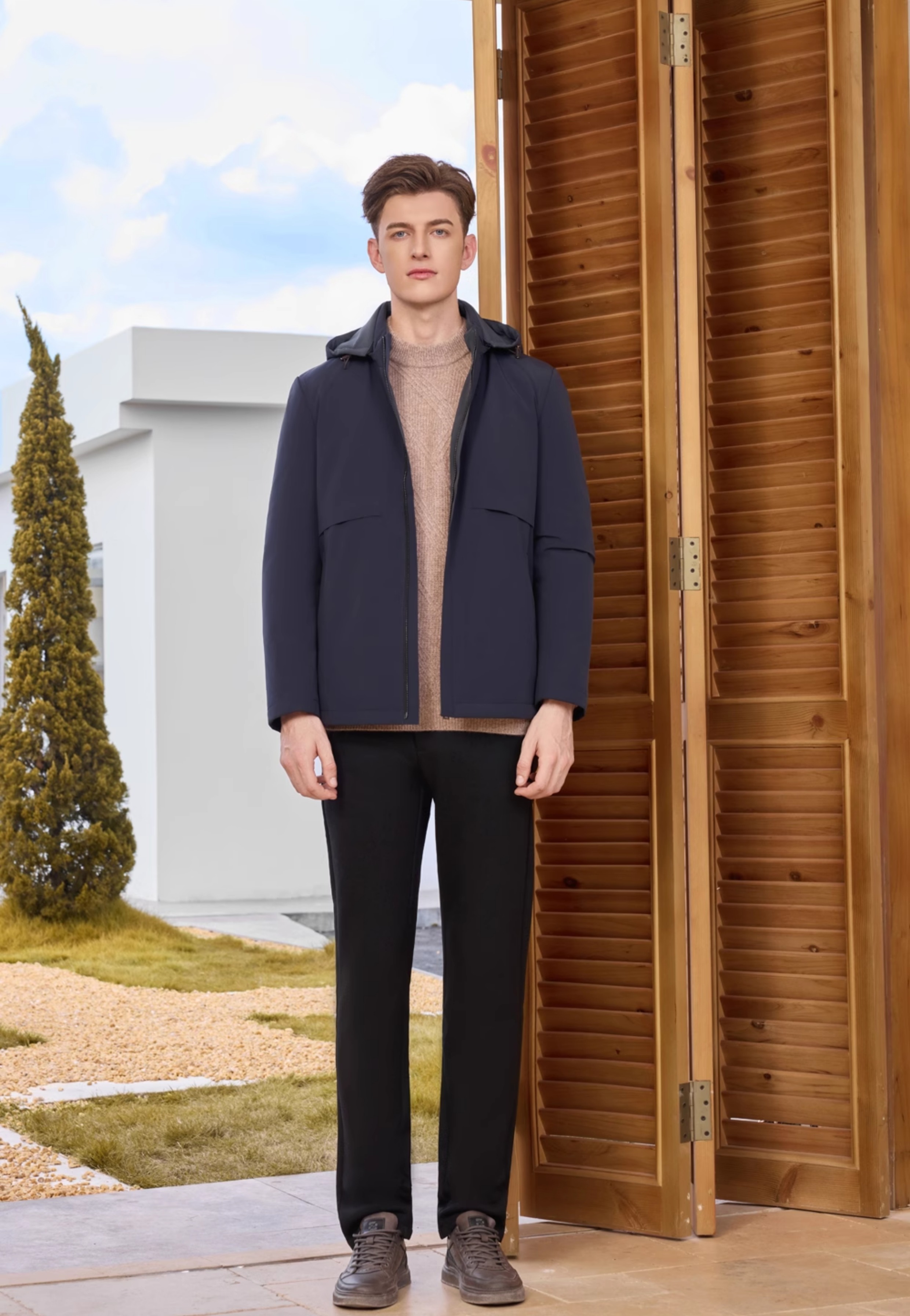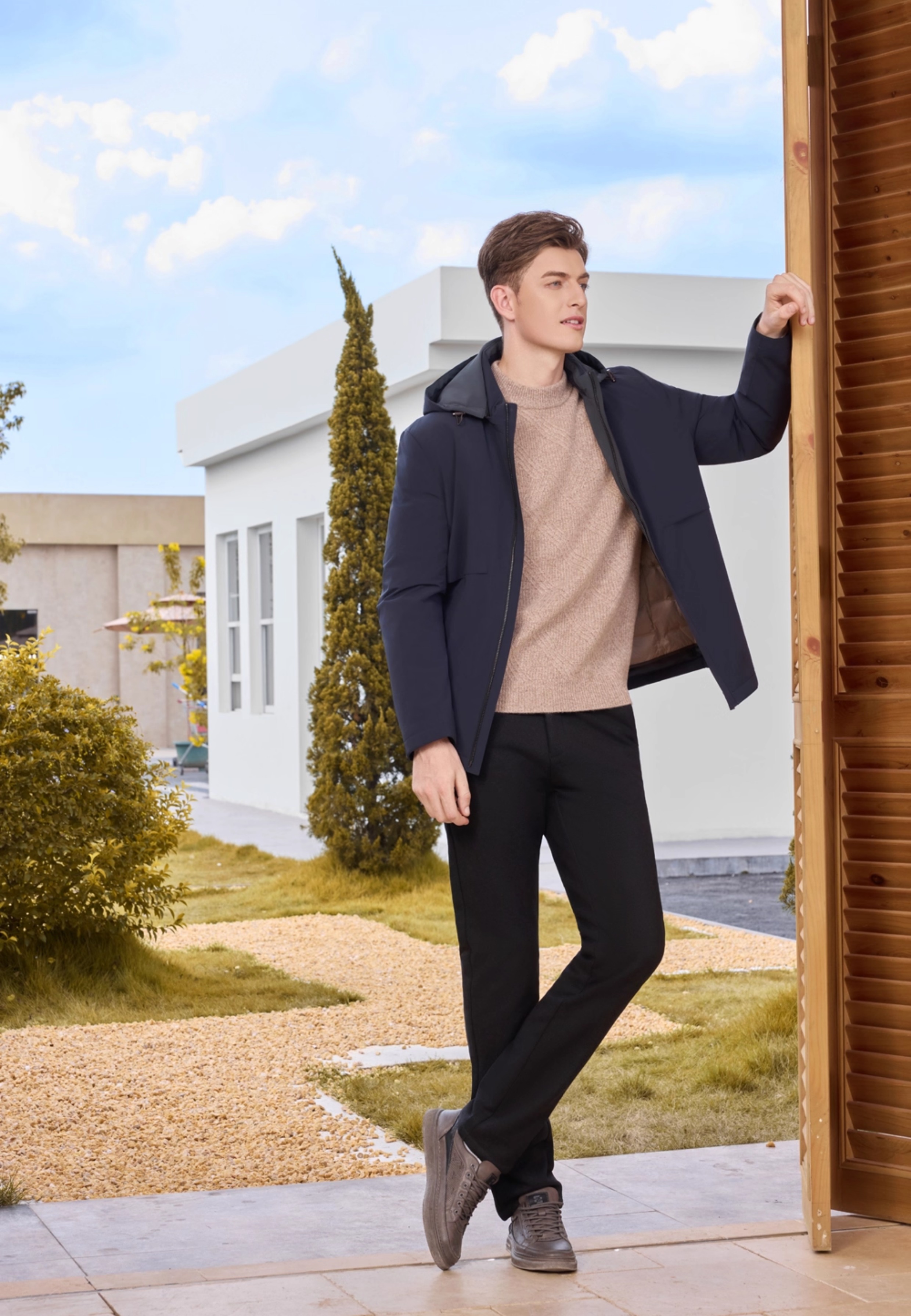 半身缘男装 冬季保暖连帽百搭时尚鹅绒羽绒服254212M01710109
