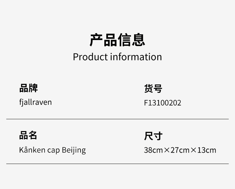 Fjallraven北极狐Kanken Beijing运动遮阳鸭舌棒球帽子 13100202