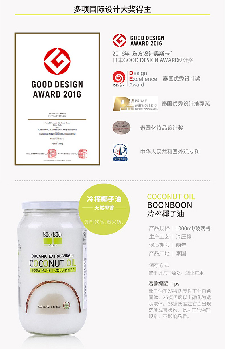 BOONBOON泰国原装进口初榨冷榨椰子油