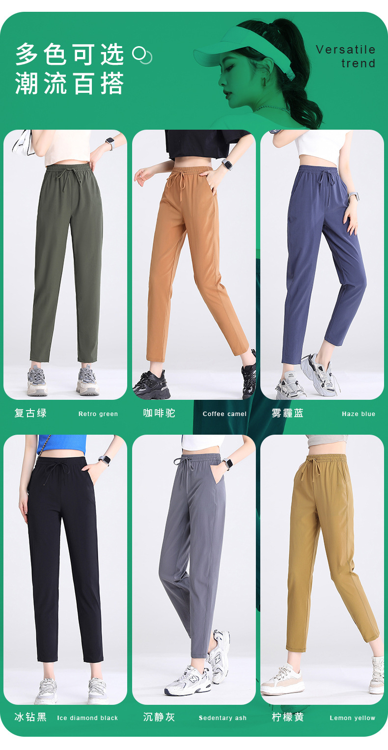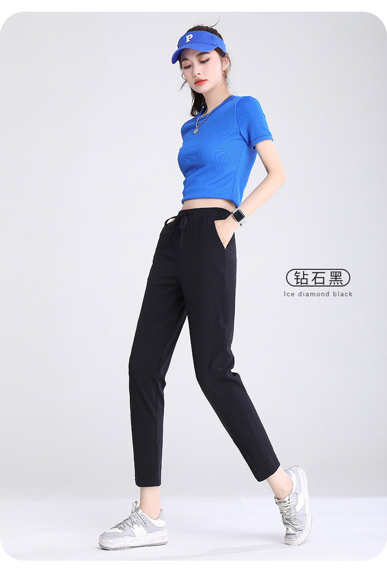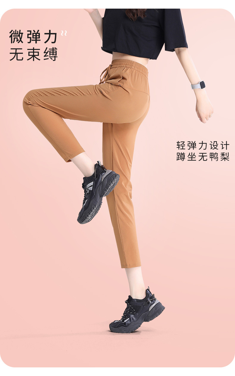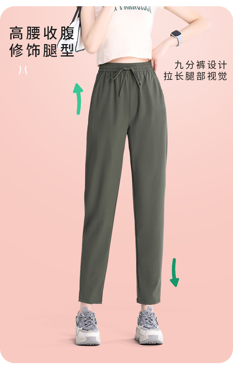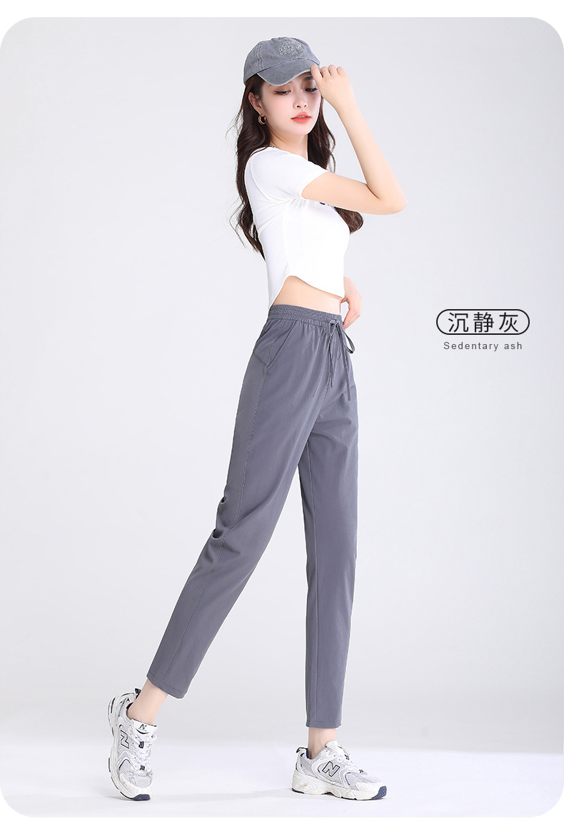 夏日必备!女生宽松速干冰丝裤,舒适透气,运动休闲两相宜!灰色直筒设计,显瘦百搭,九分长度更加清凉。