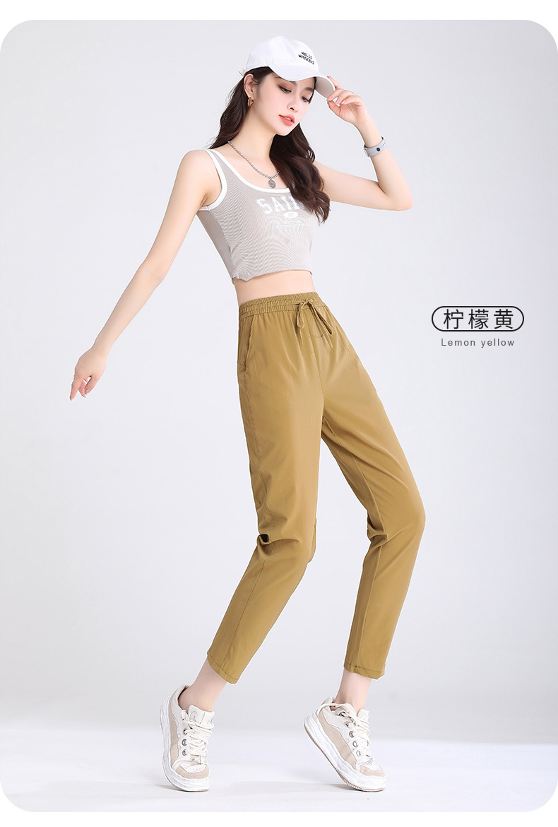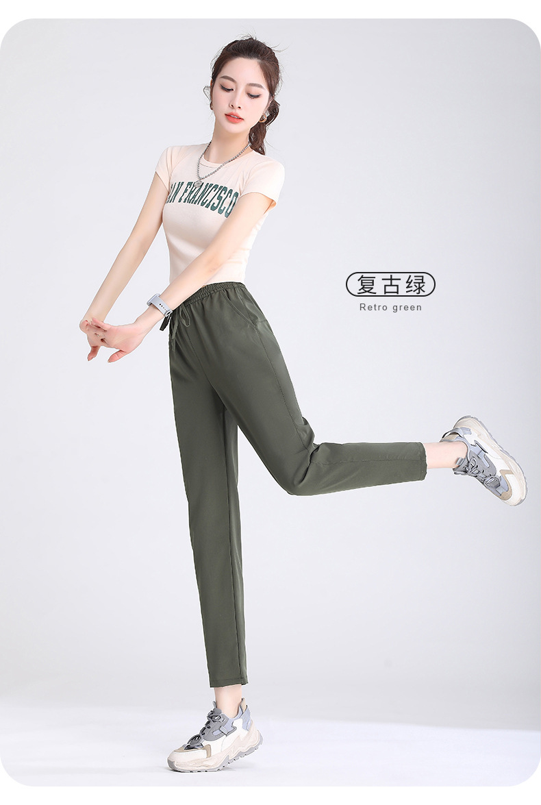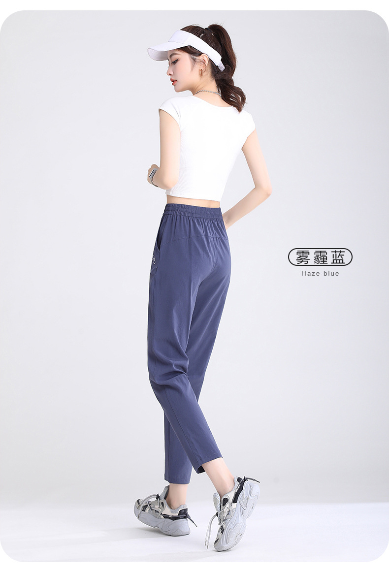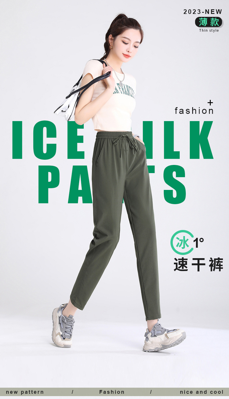 夏日必备!女生宽松速干冰丝裤,舒适透气,运动休闲两相宜!灰色直筒设计,显瘦百搭,九分长度更加清凉。