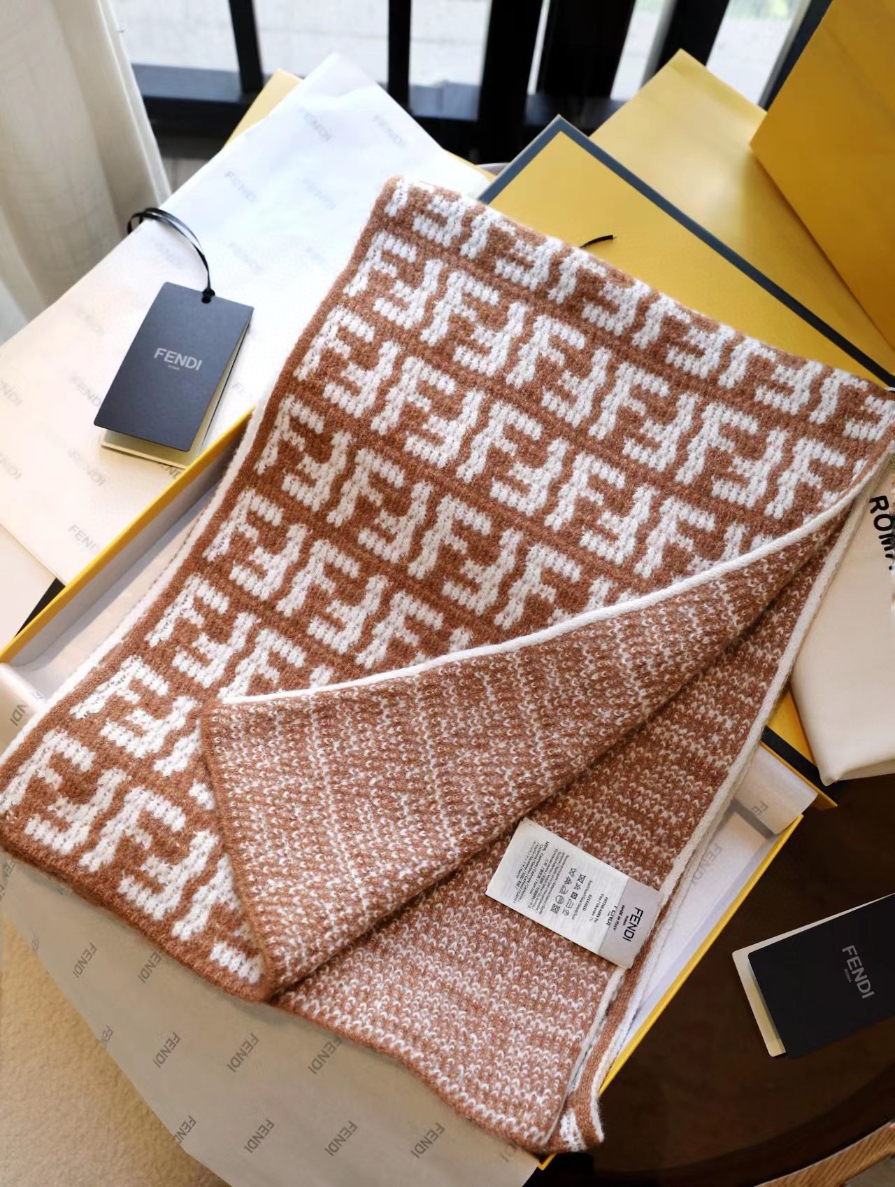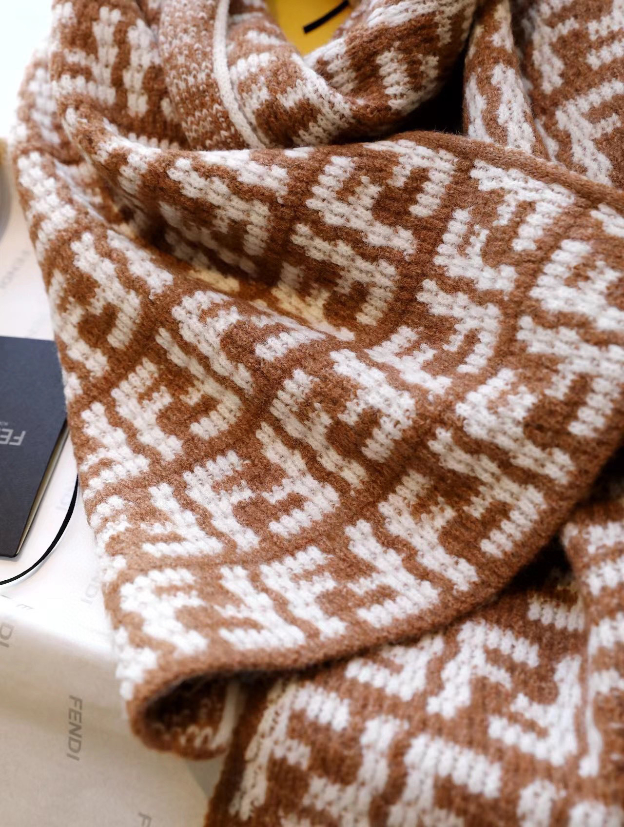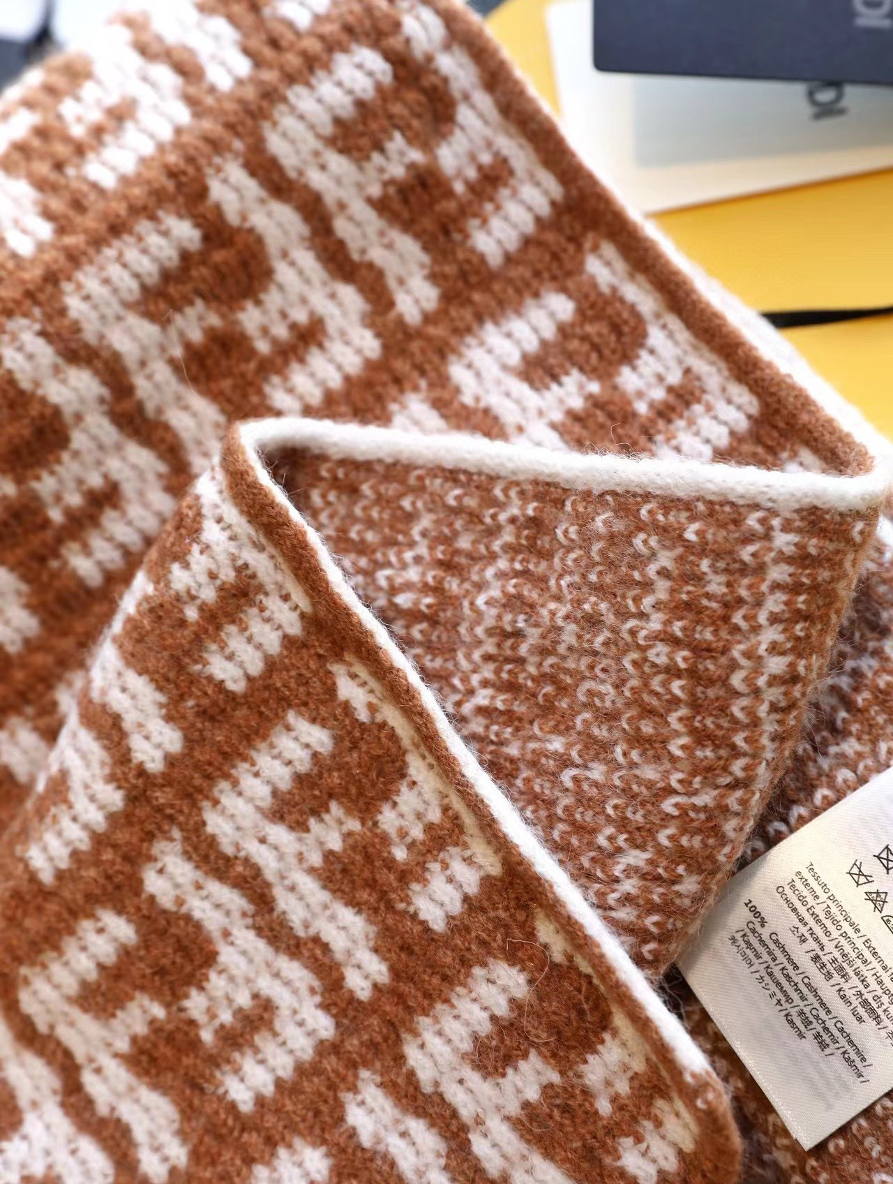 软羊绒围巾。全幅撞色FF图案设计提花