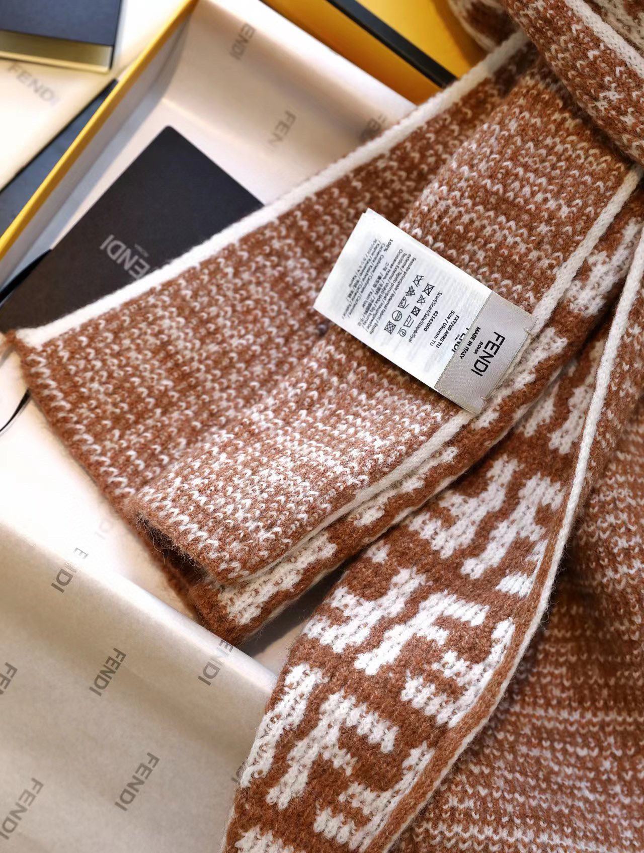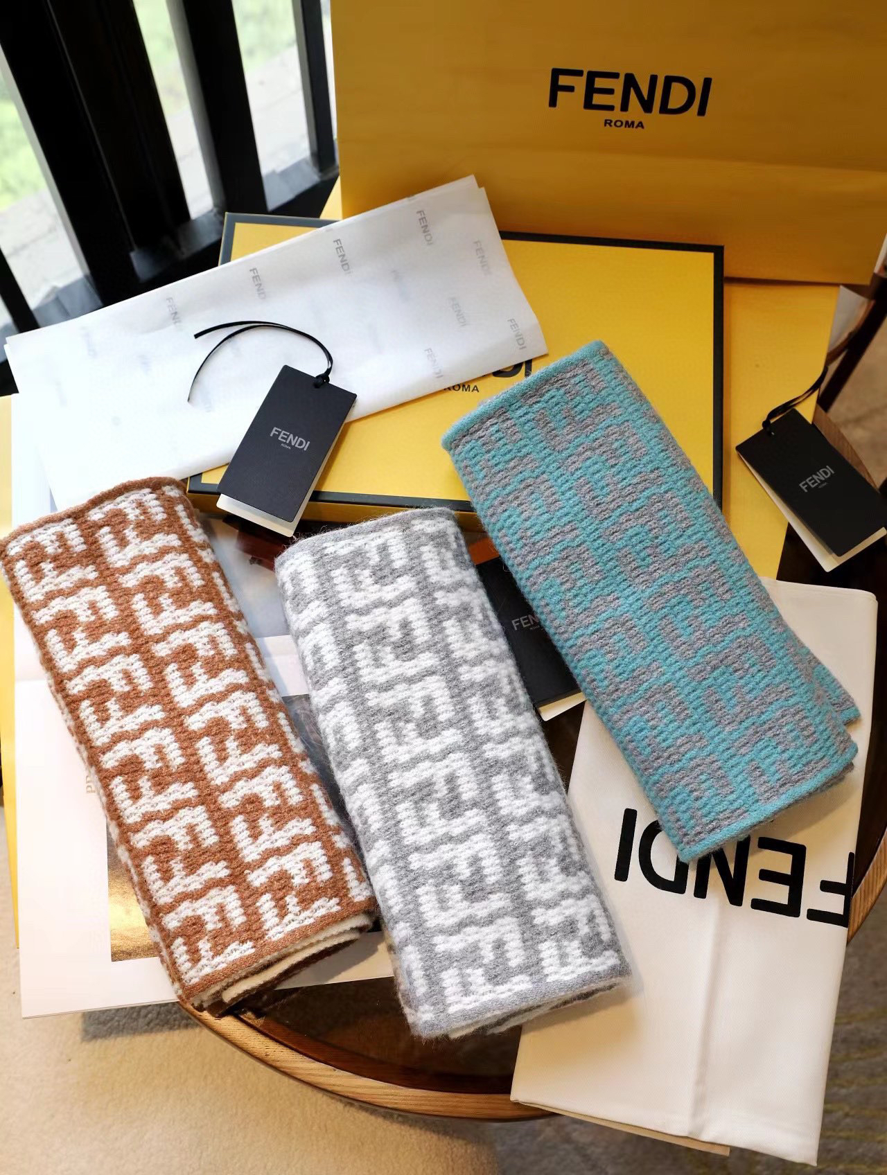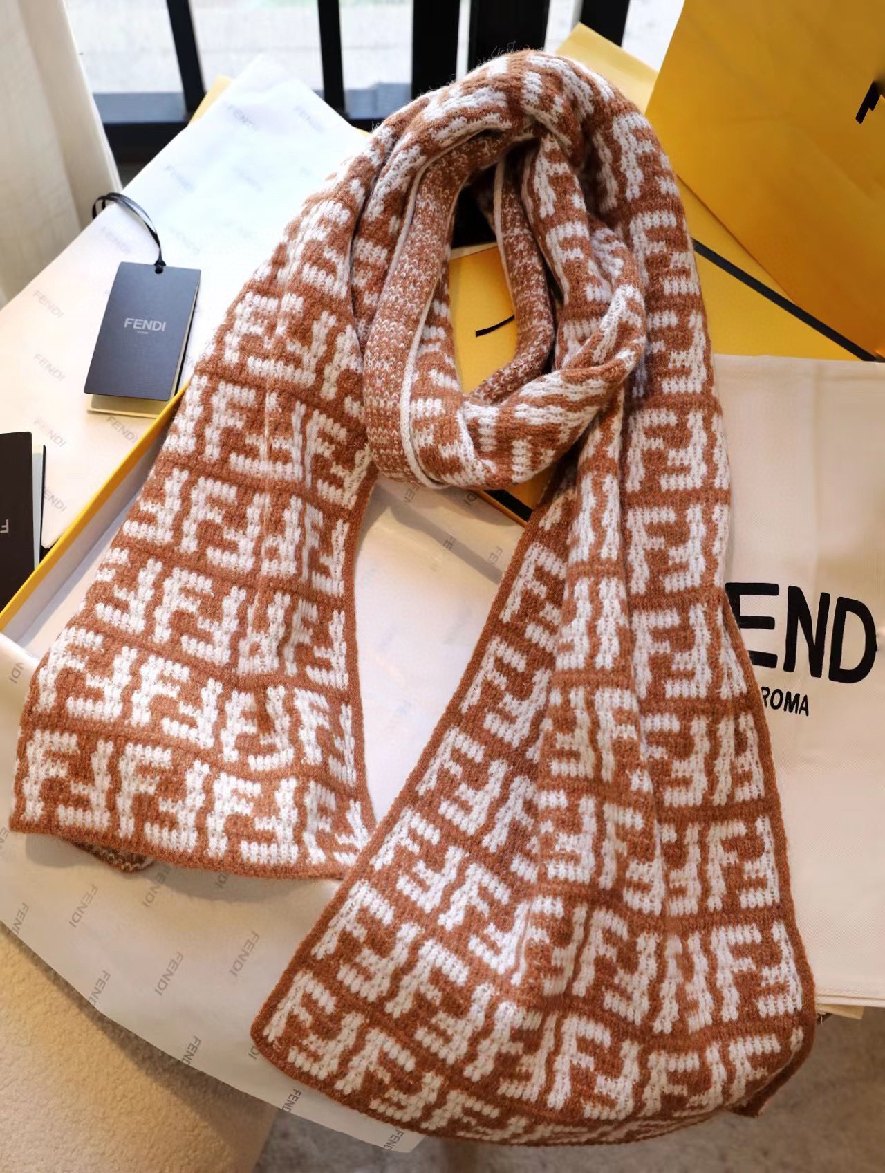 软羊绒围巾。全幅撞色FF图案设计提花