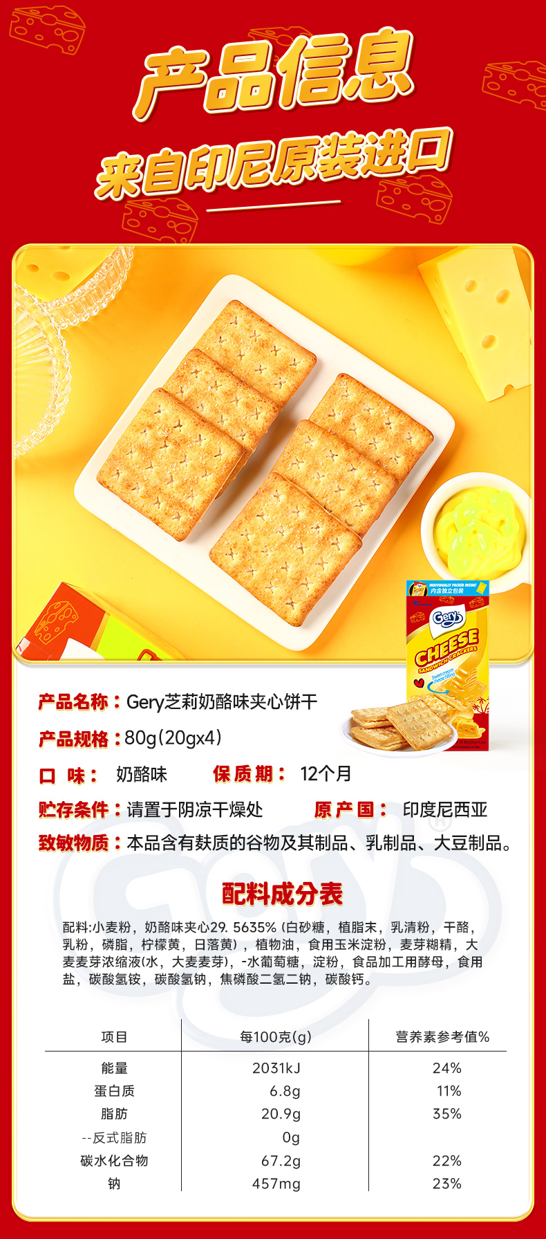 Gery芝莉奶酪味夹心饼干80g(进口)*4盒【XPTX】