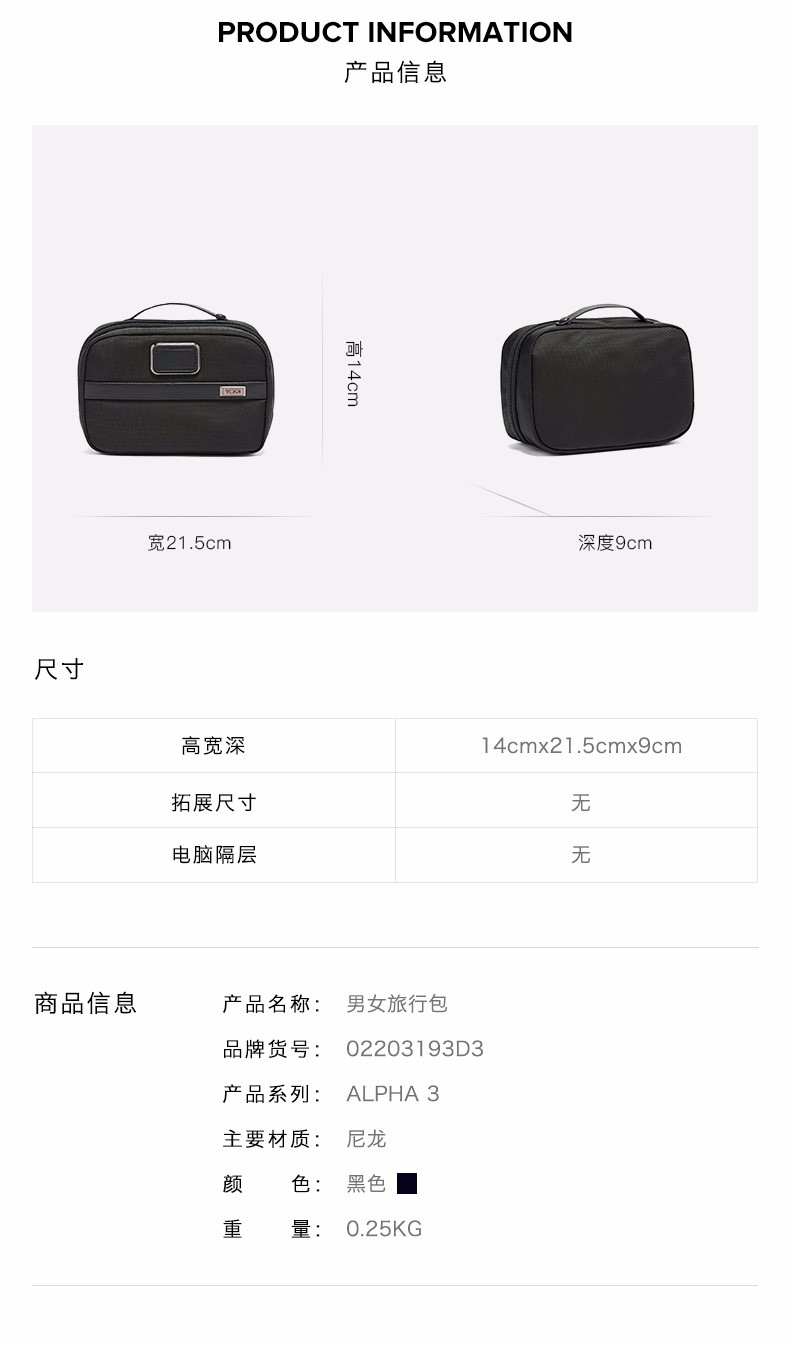 TUMI 男款洗漱包 TM02203193D3-F .【刻字后发出的商品,不支持退换货服务】