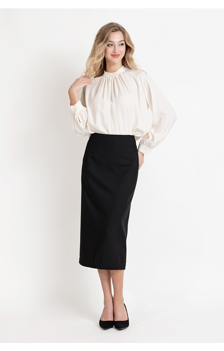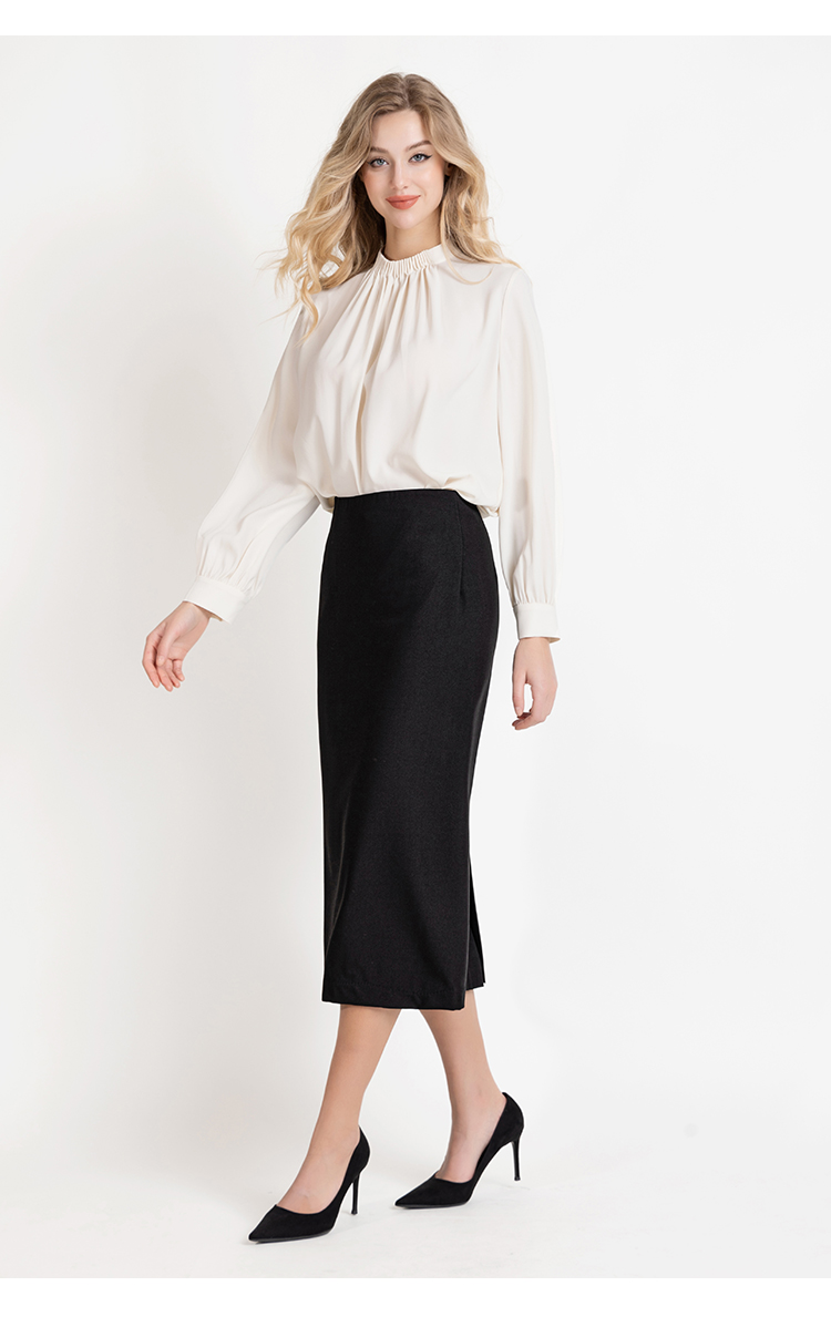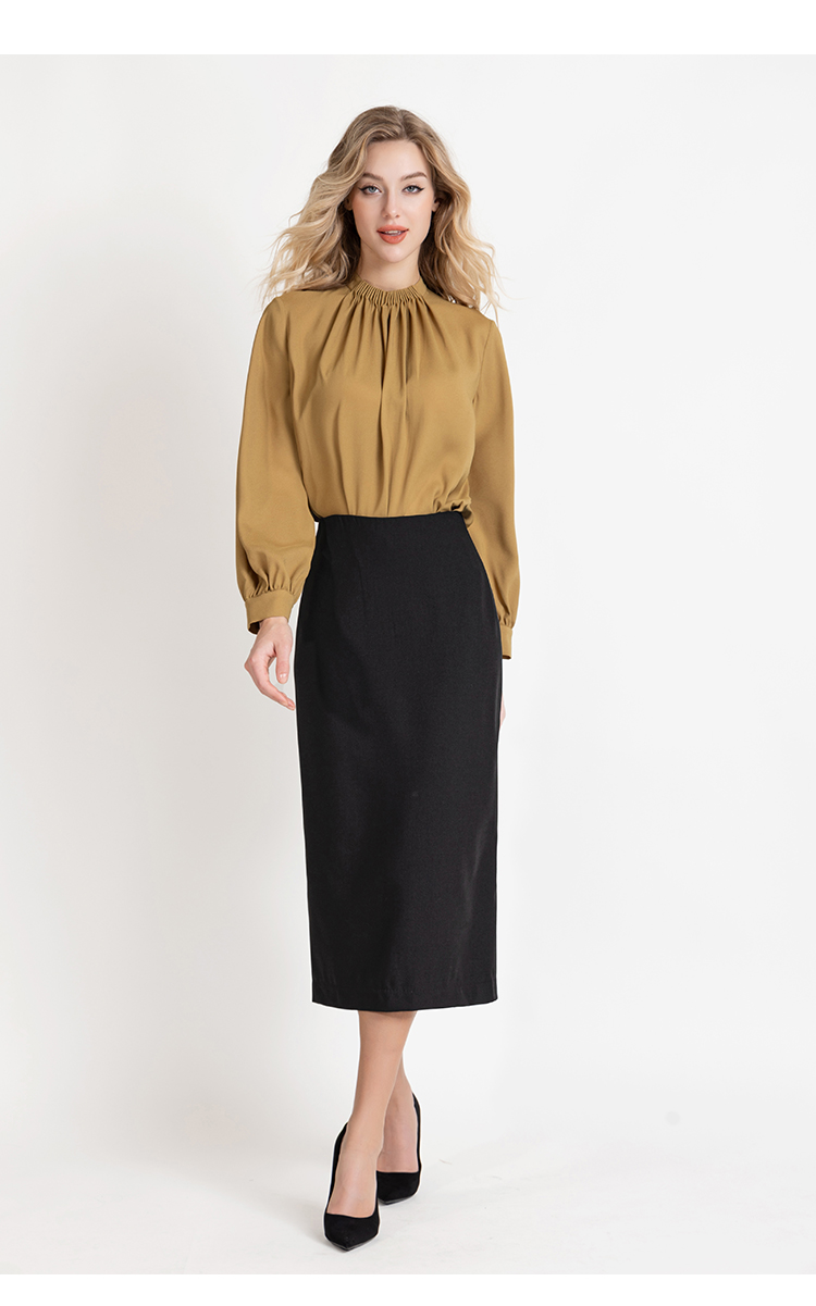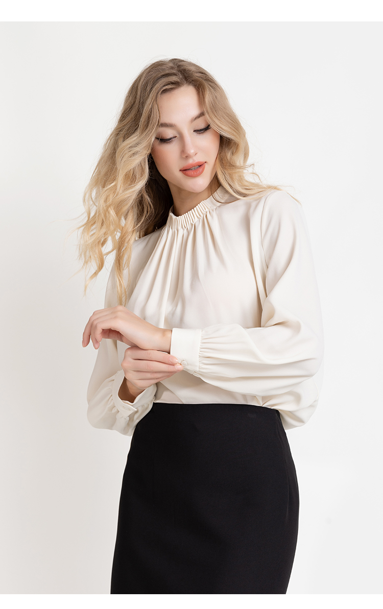 LIZZY 早秋时尚通勤设计感风琴褶小立领气质优雅长袖衬衣7996