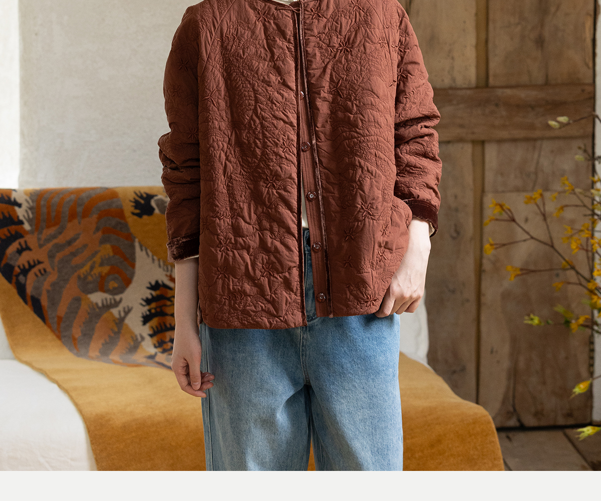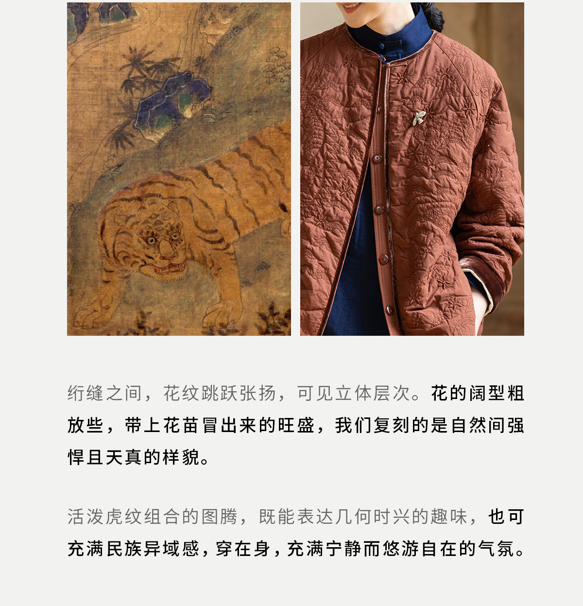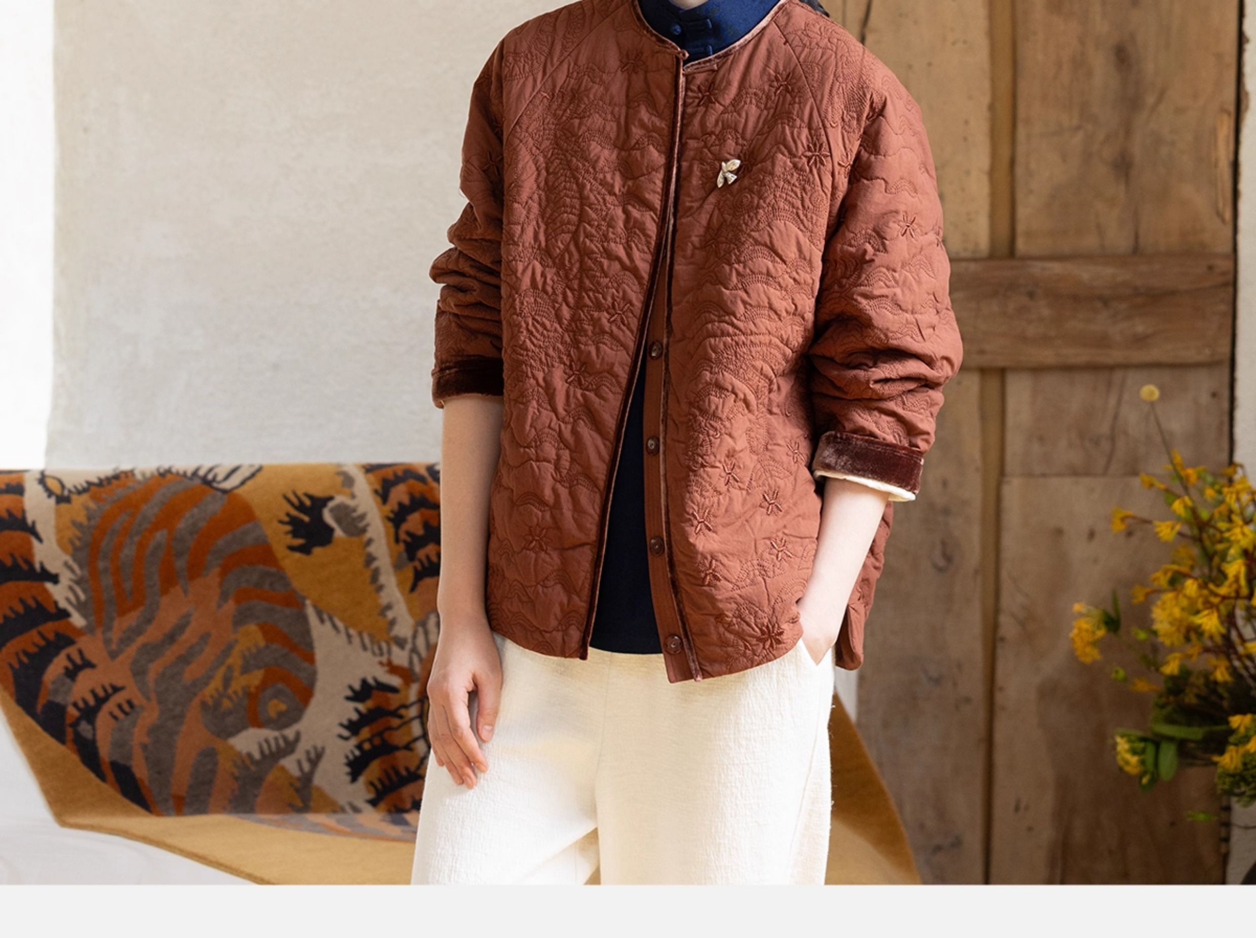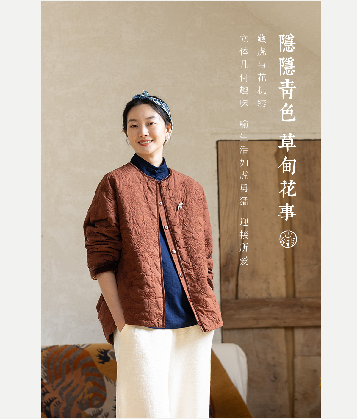 牧衣游原创 虎与花绗缝机绣60支棉衣外套宽松复古文艺棉服 云间客