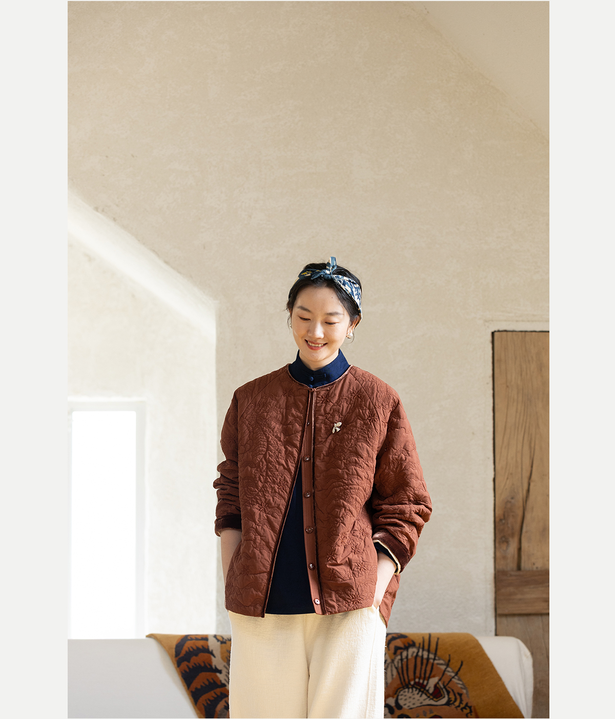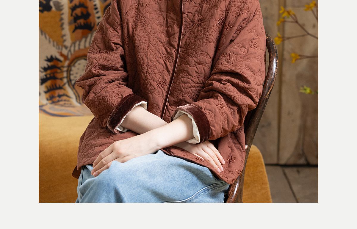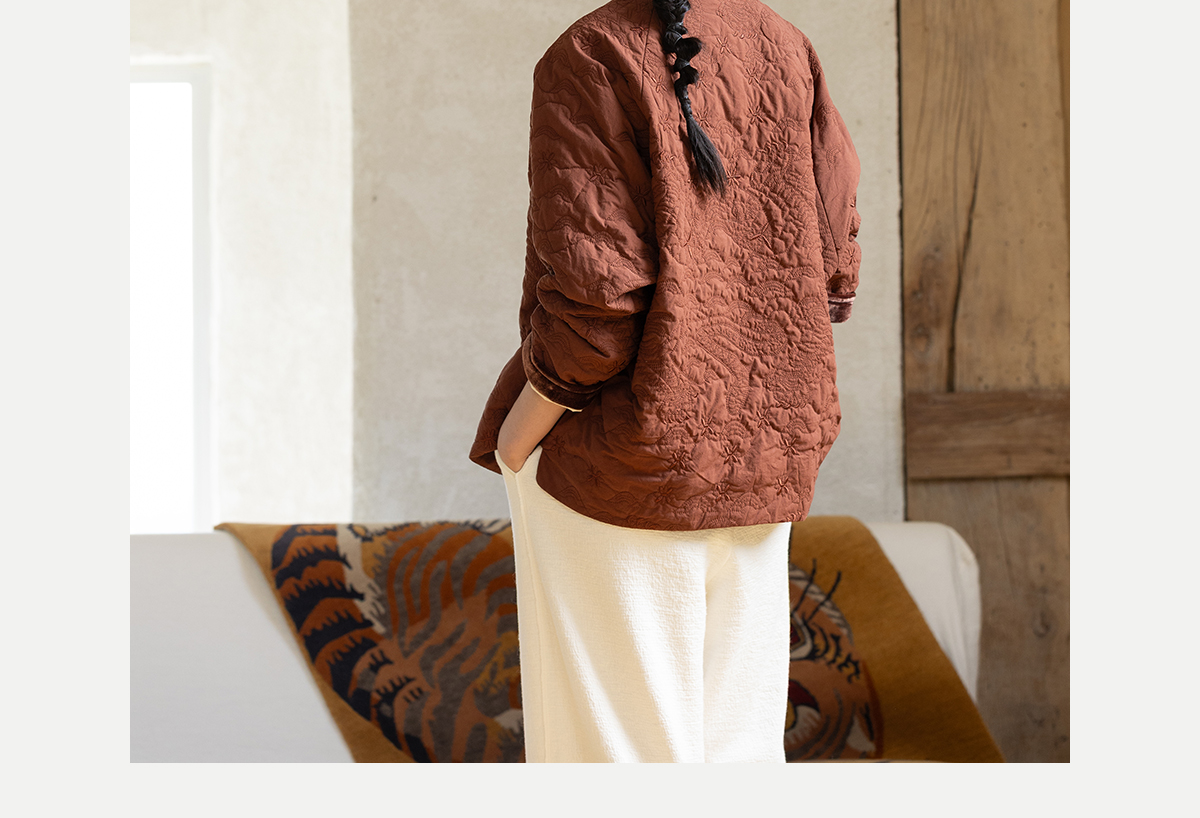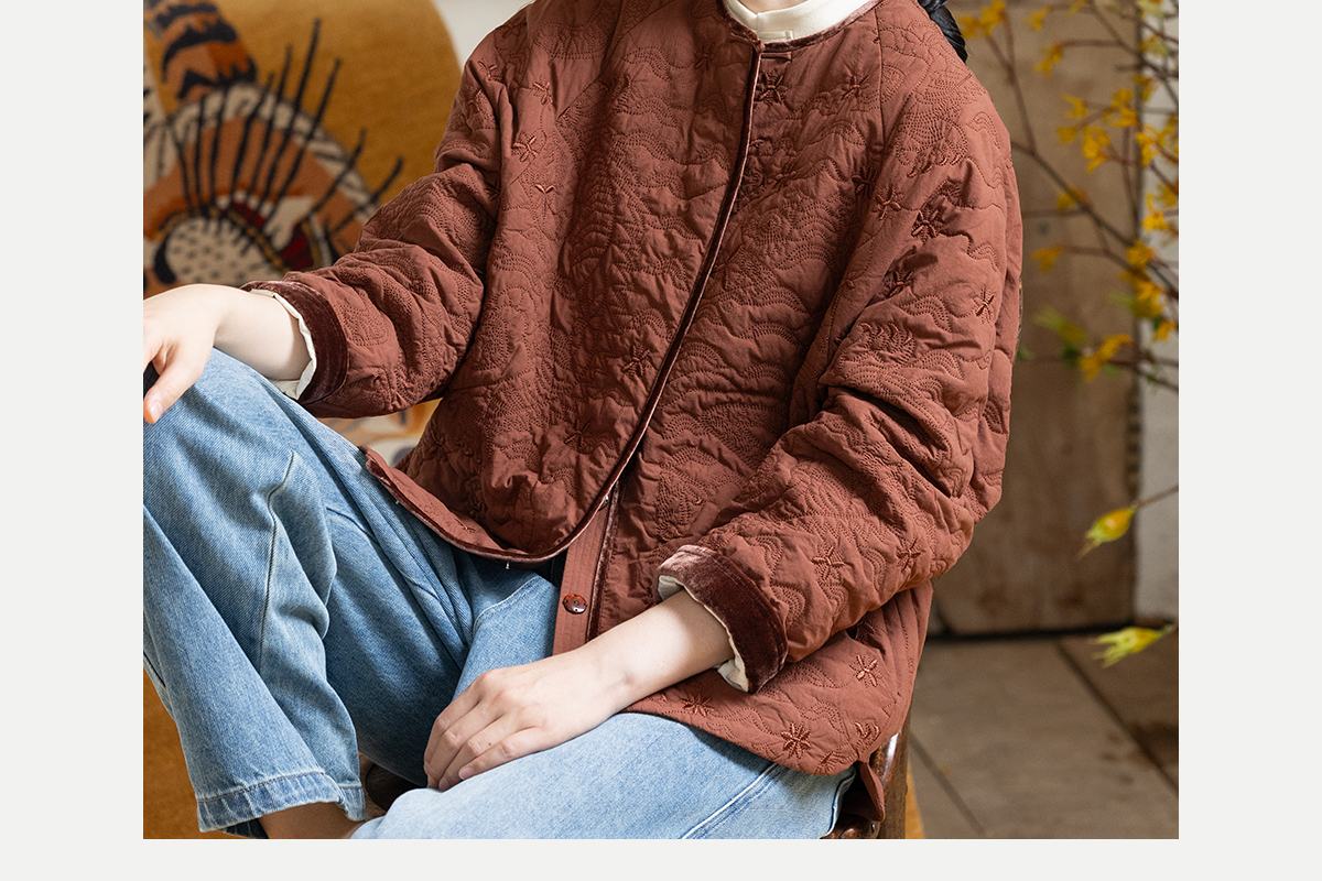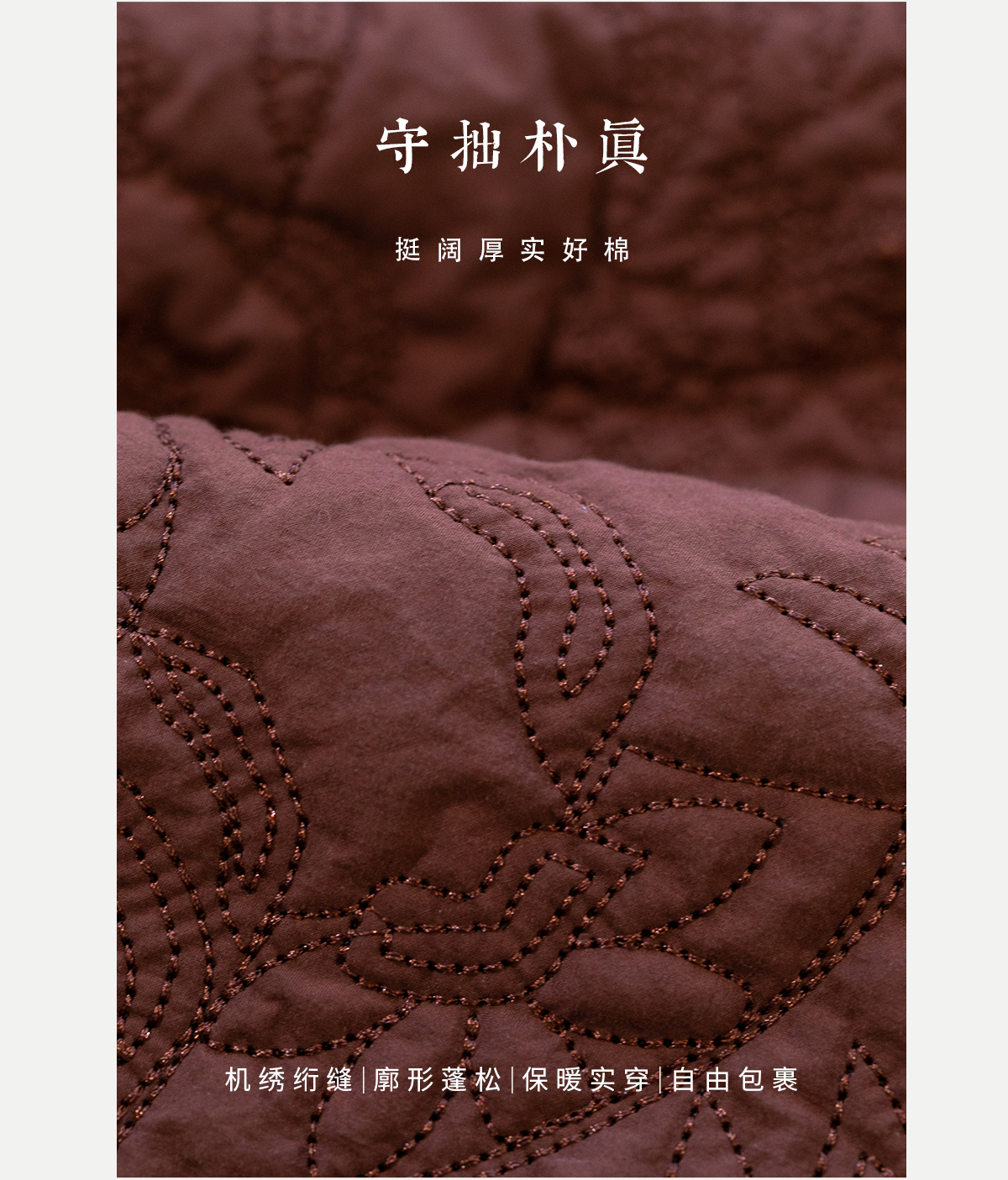 牧衣游原创 虎与花绗缝机绣60支棉衣外套宽松复古文艺棉服 云间客