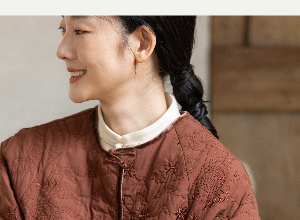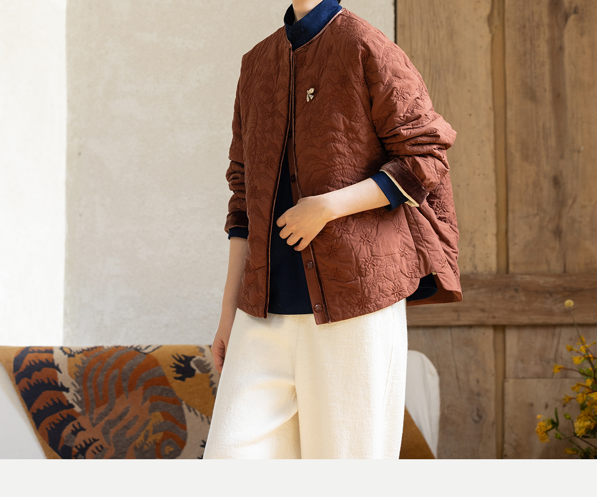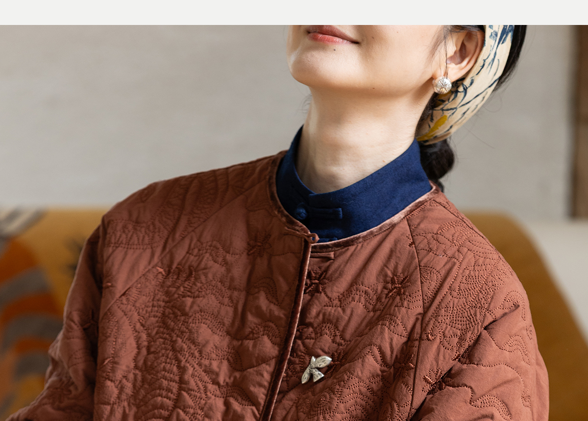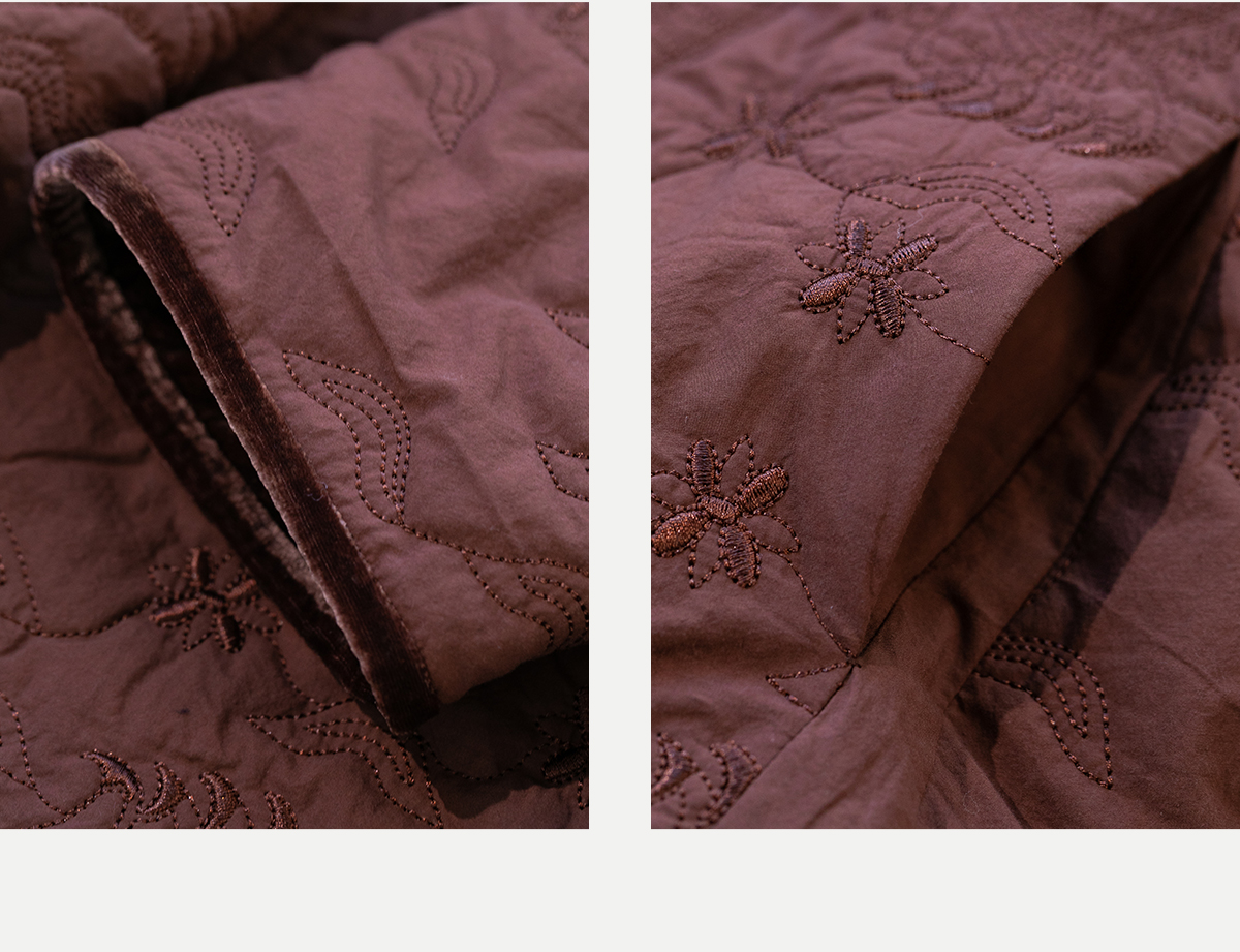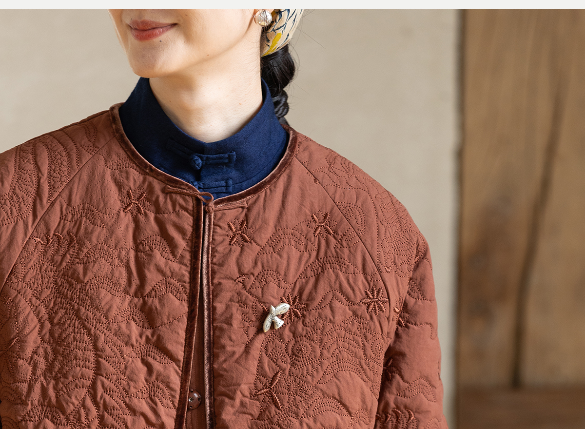 牧衣游原创 虎与花绗缝机绣60支棉衣外套宽松复古文艺棉服 云间客