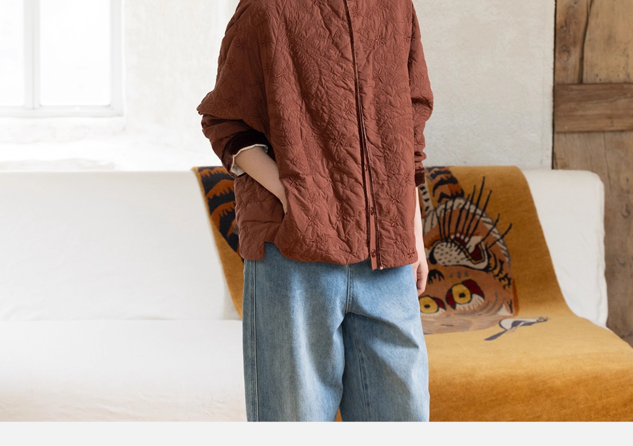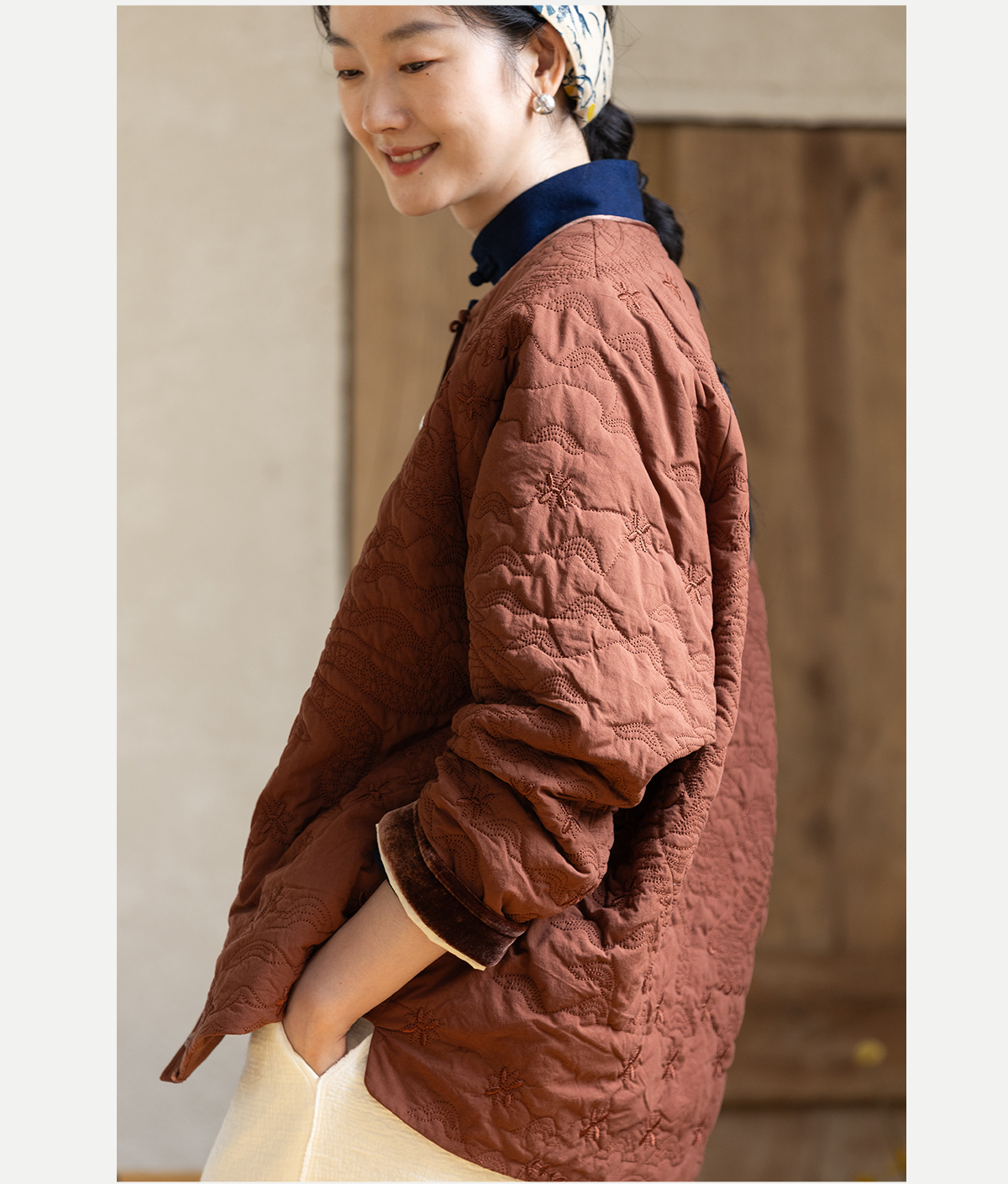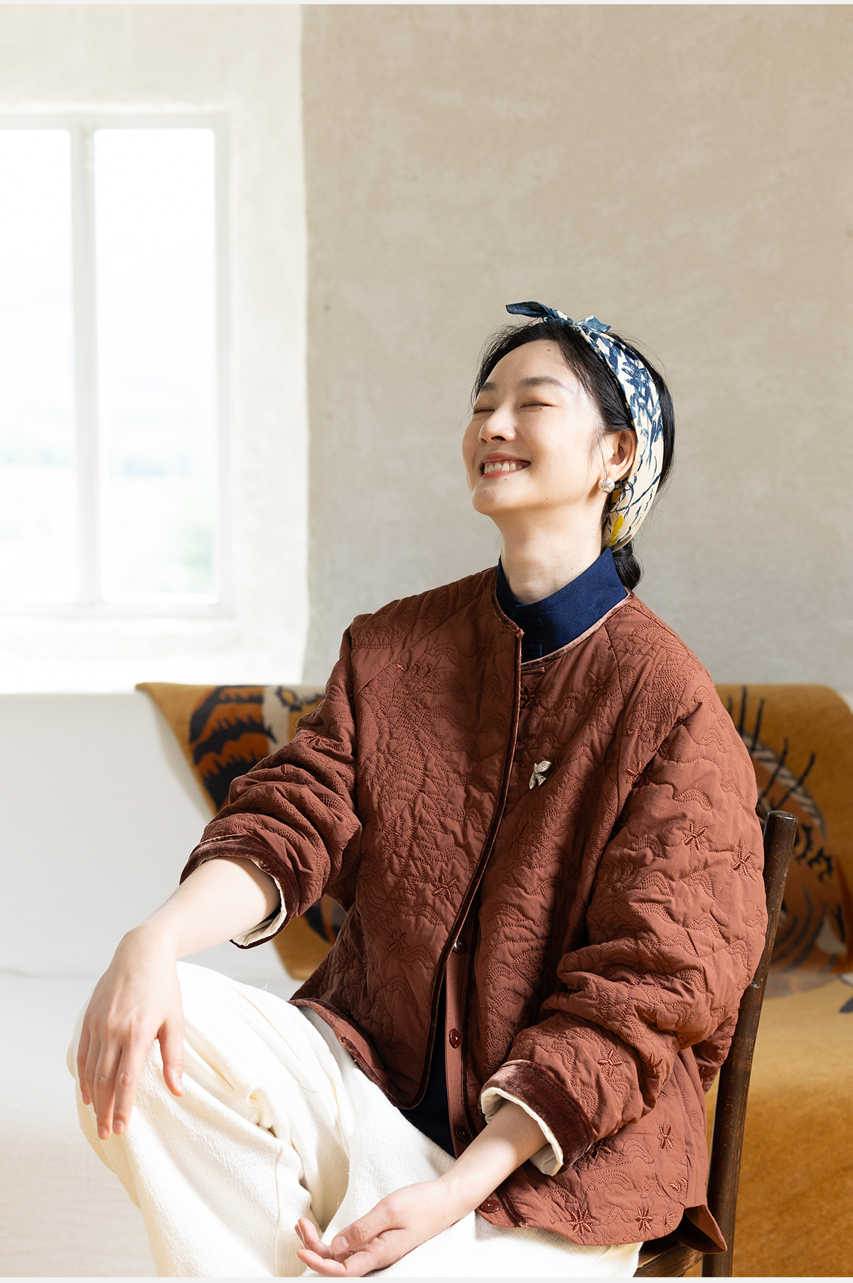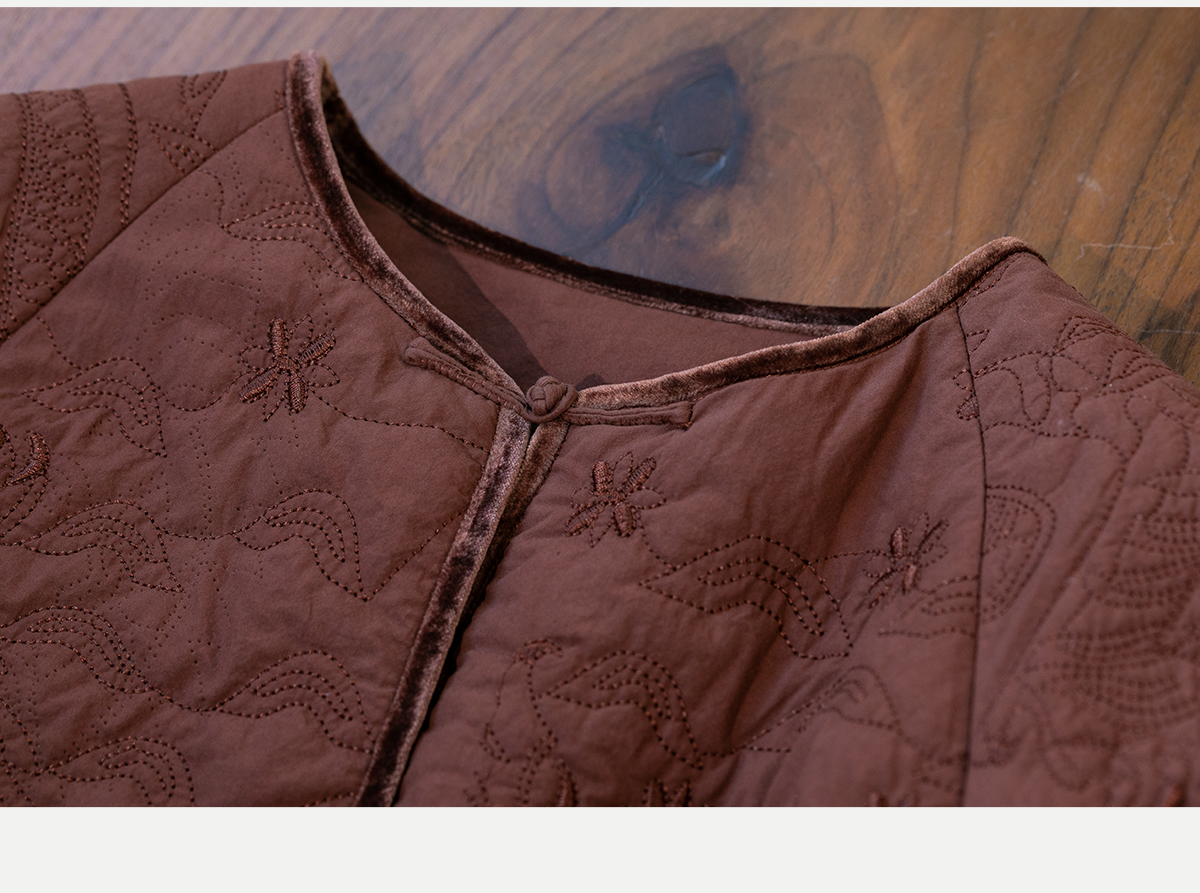牧衣游原创 虎与花绗缝机绣60支棉衣外套宽松复古文艺棉服 云间客