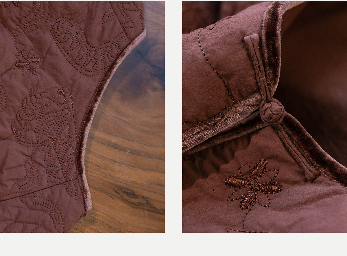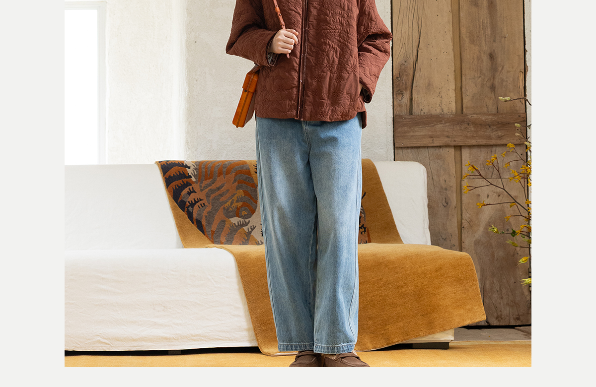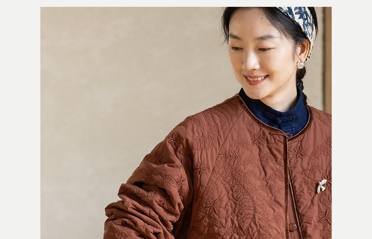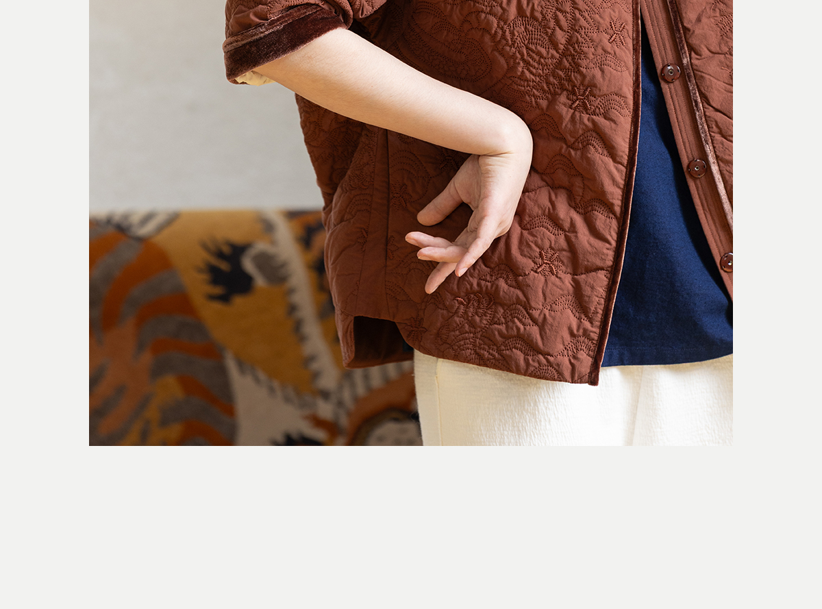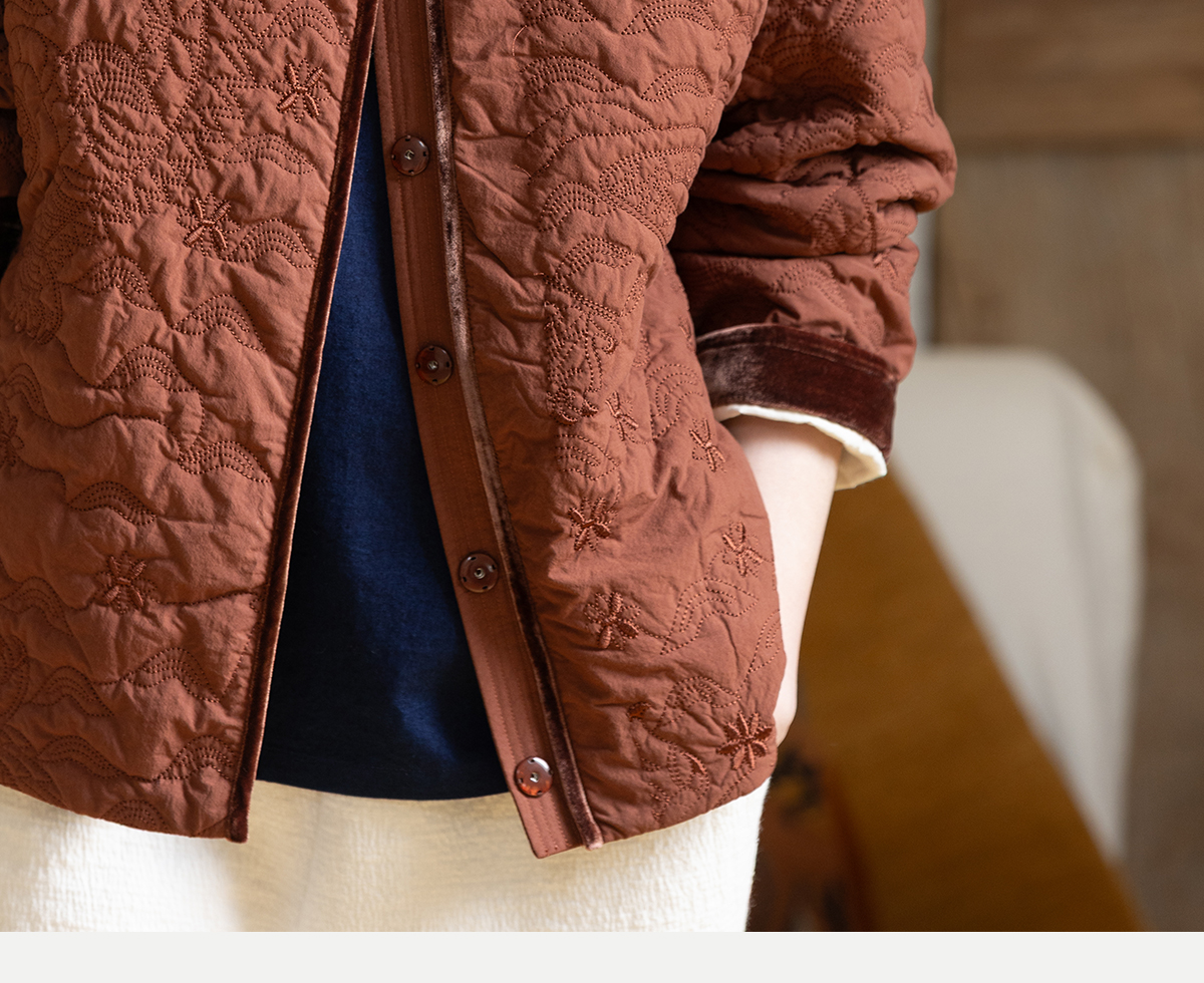 牧衣游原创 虎与花绗缝机绣60支棉衣外套宽松复古文艺棉服 云间客