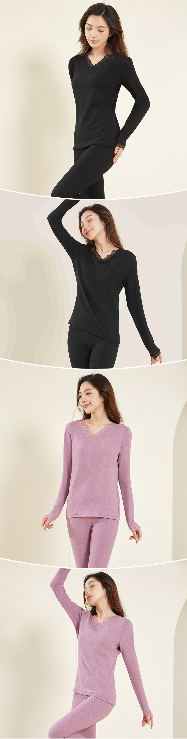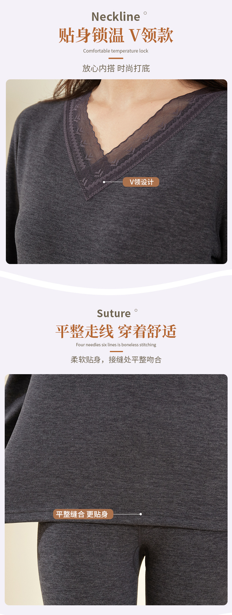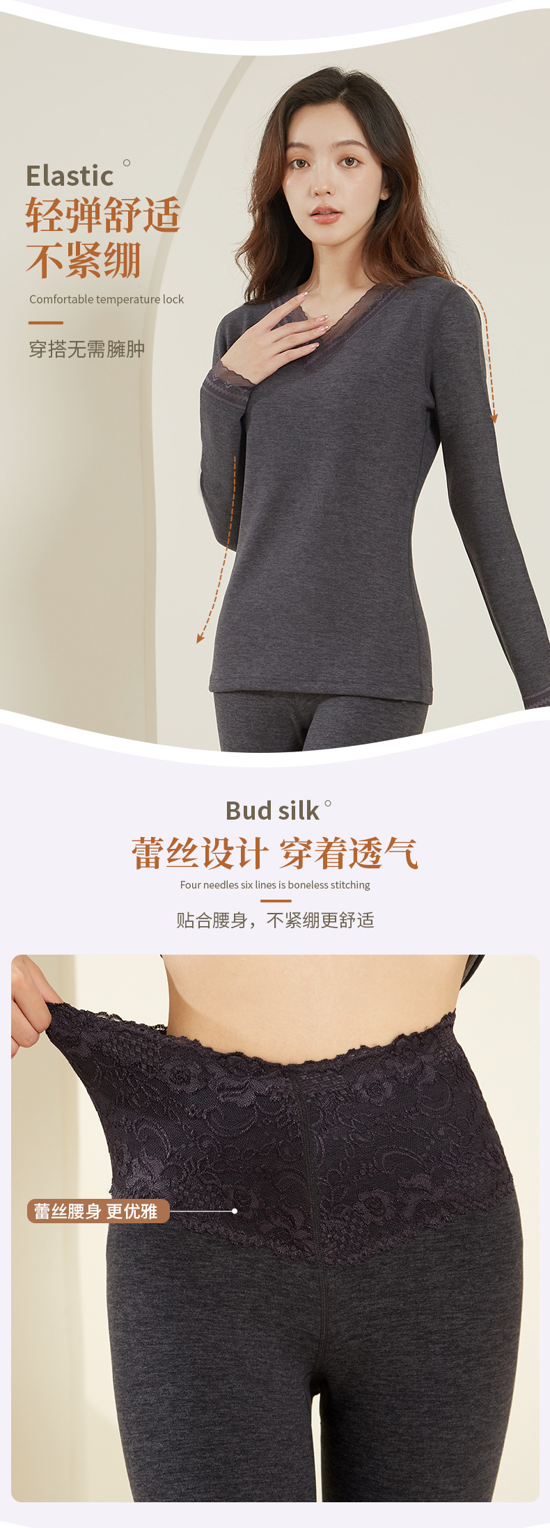 软弹舒适不紧绷 秋冬新品德绒保暖内衣女 套装加绒加厚 蚕丝羊绒抑菌美体 秋衣秋裤女