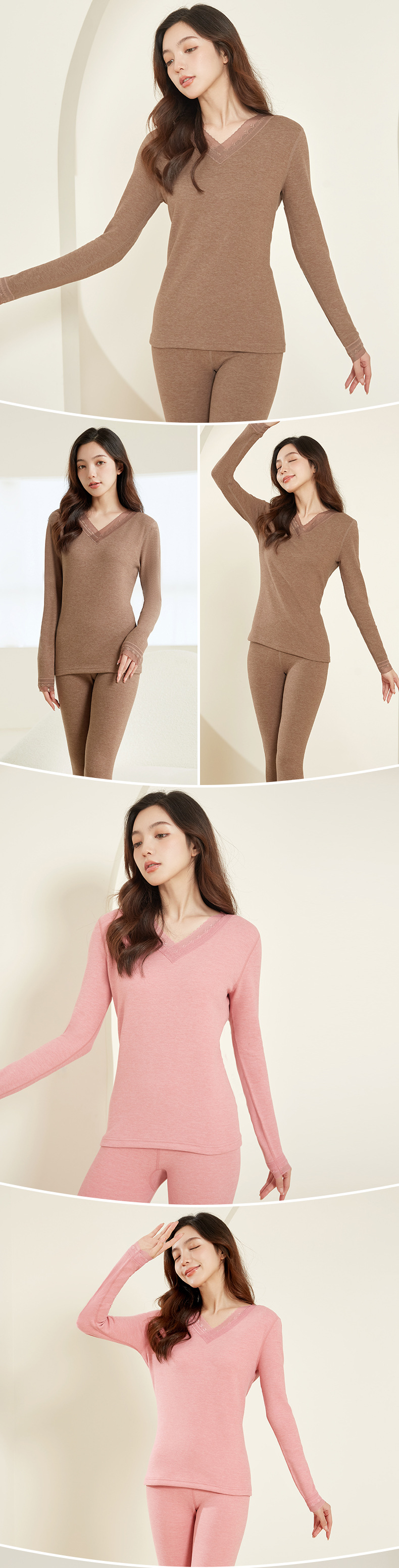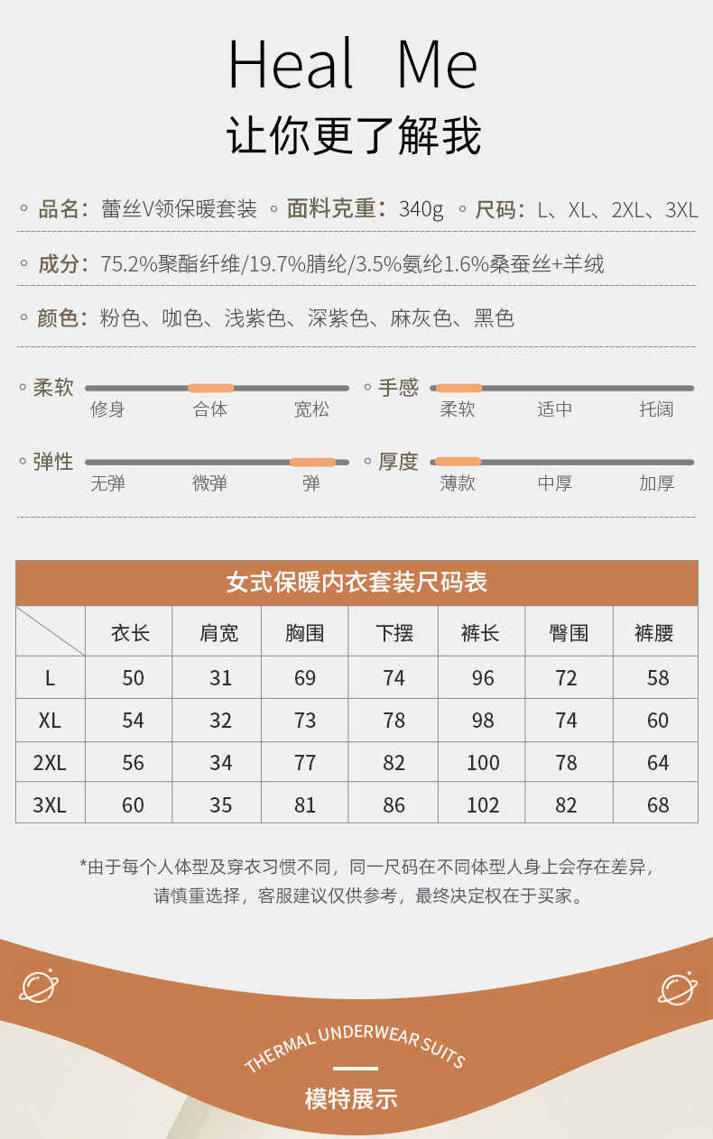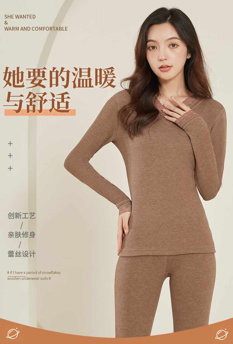 软弹舒适不紧绷 秋冬新品德绒保暖内衣女 套装加绒加厚 蚕丝羊绒抑菌美体 秋衣秋裤女