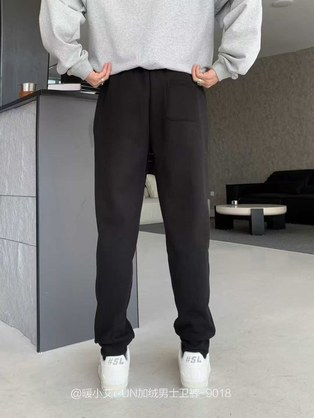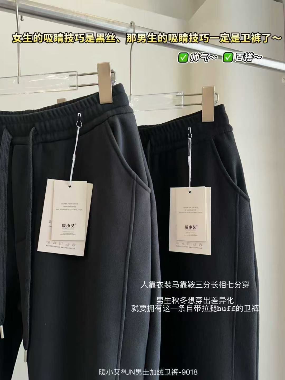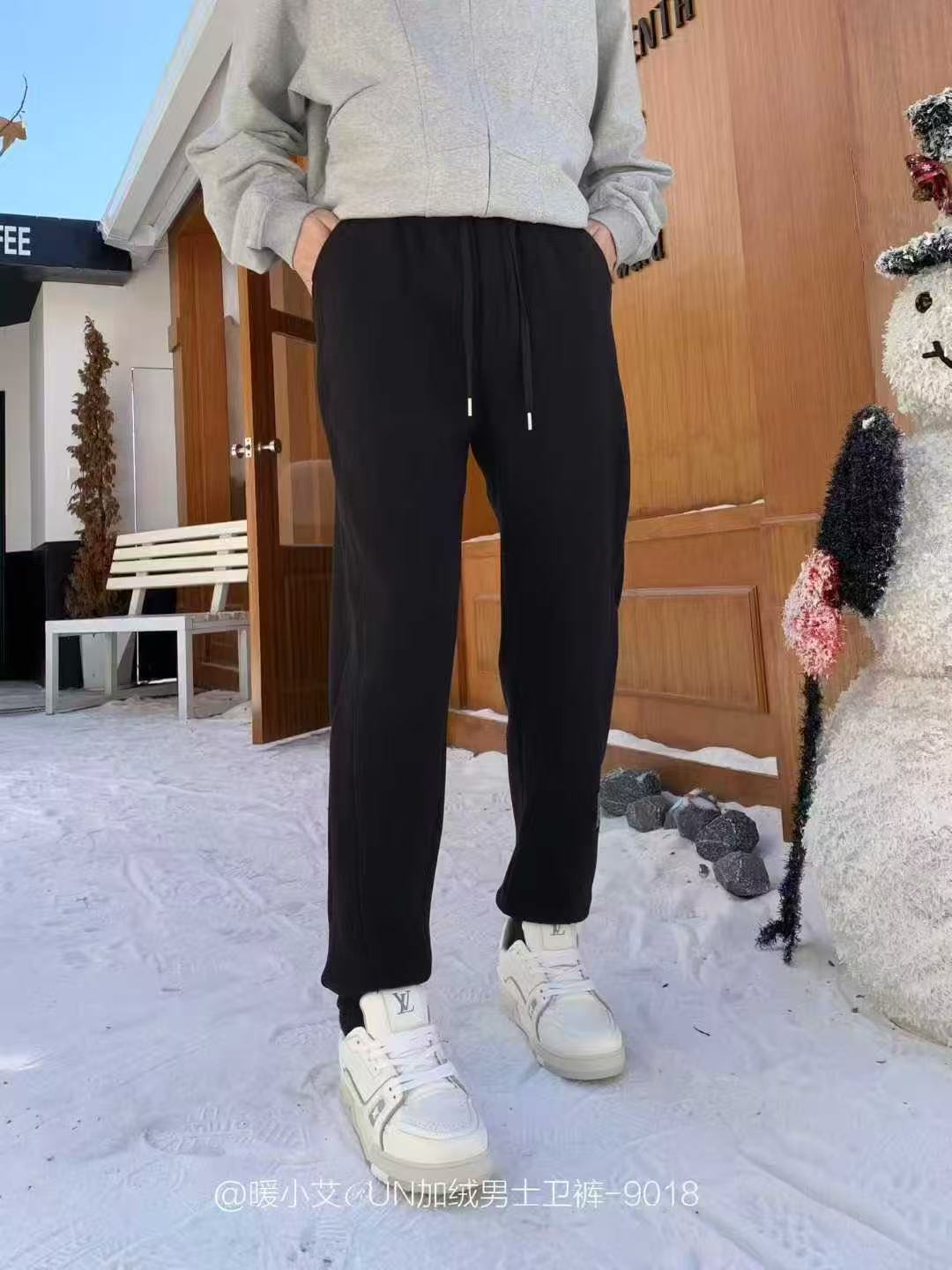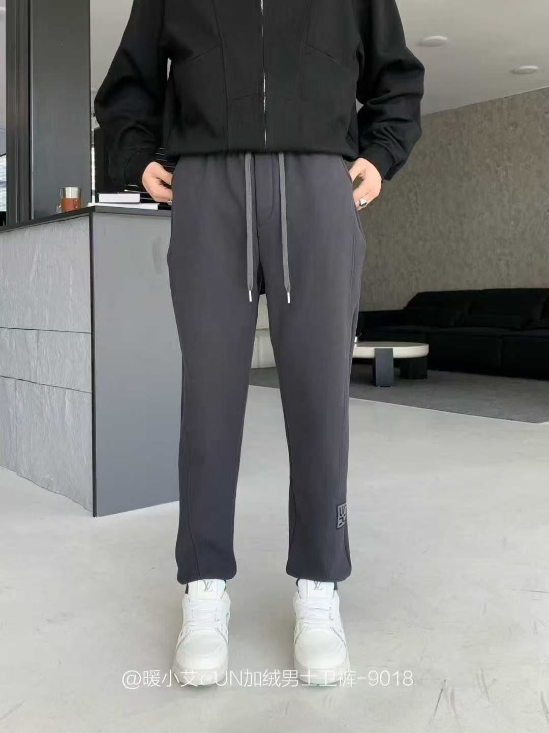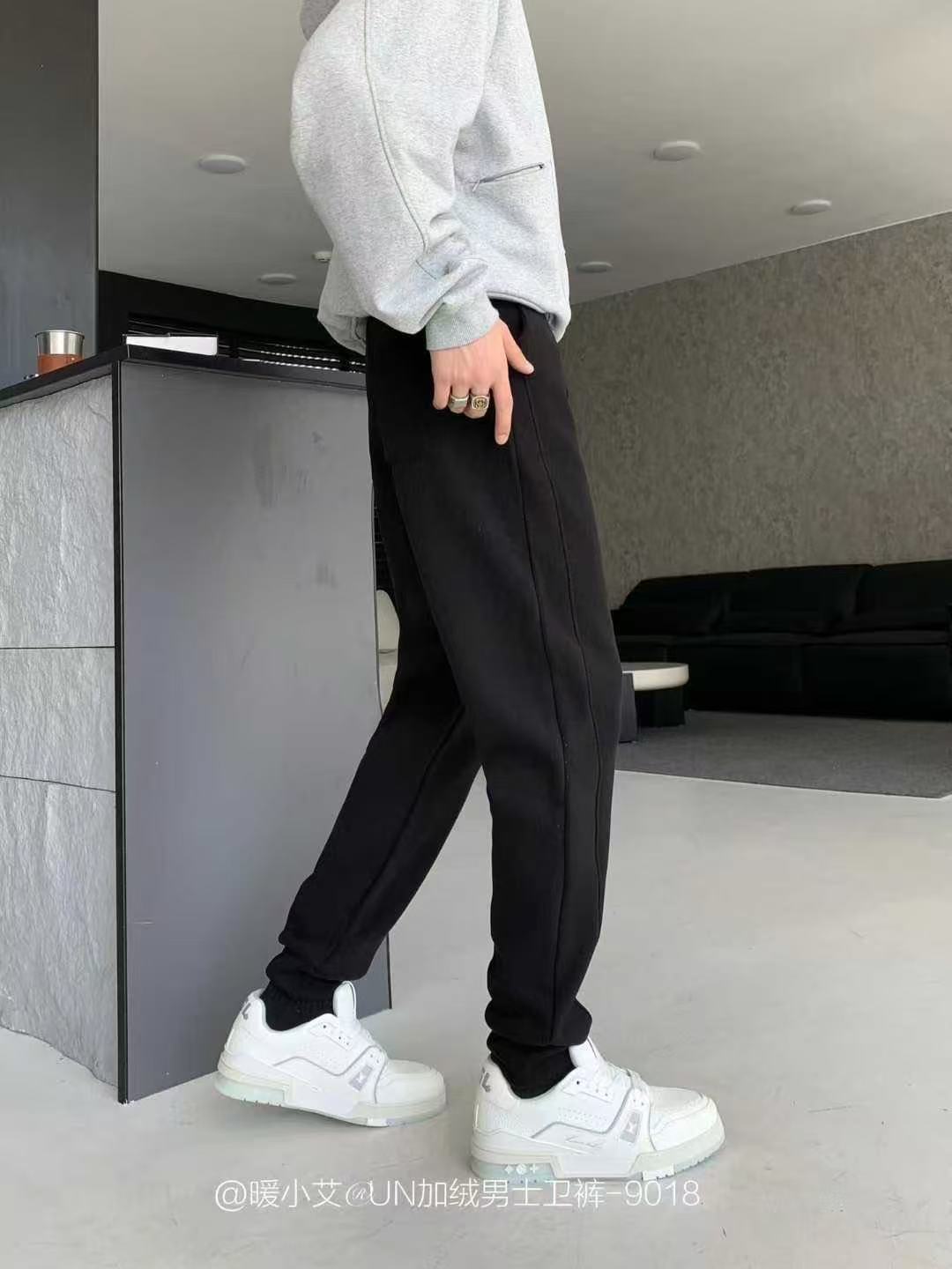 暖小艾9018秋冬加绒男生卫裤潮牌羊羔绒保暖休闲裤百搭束脚卫裤子