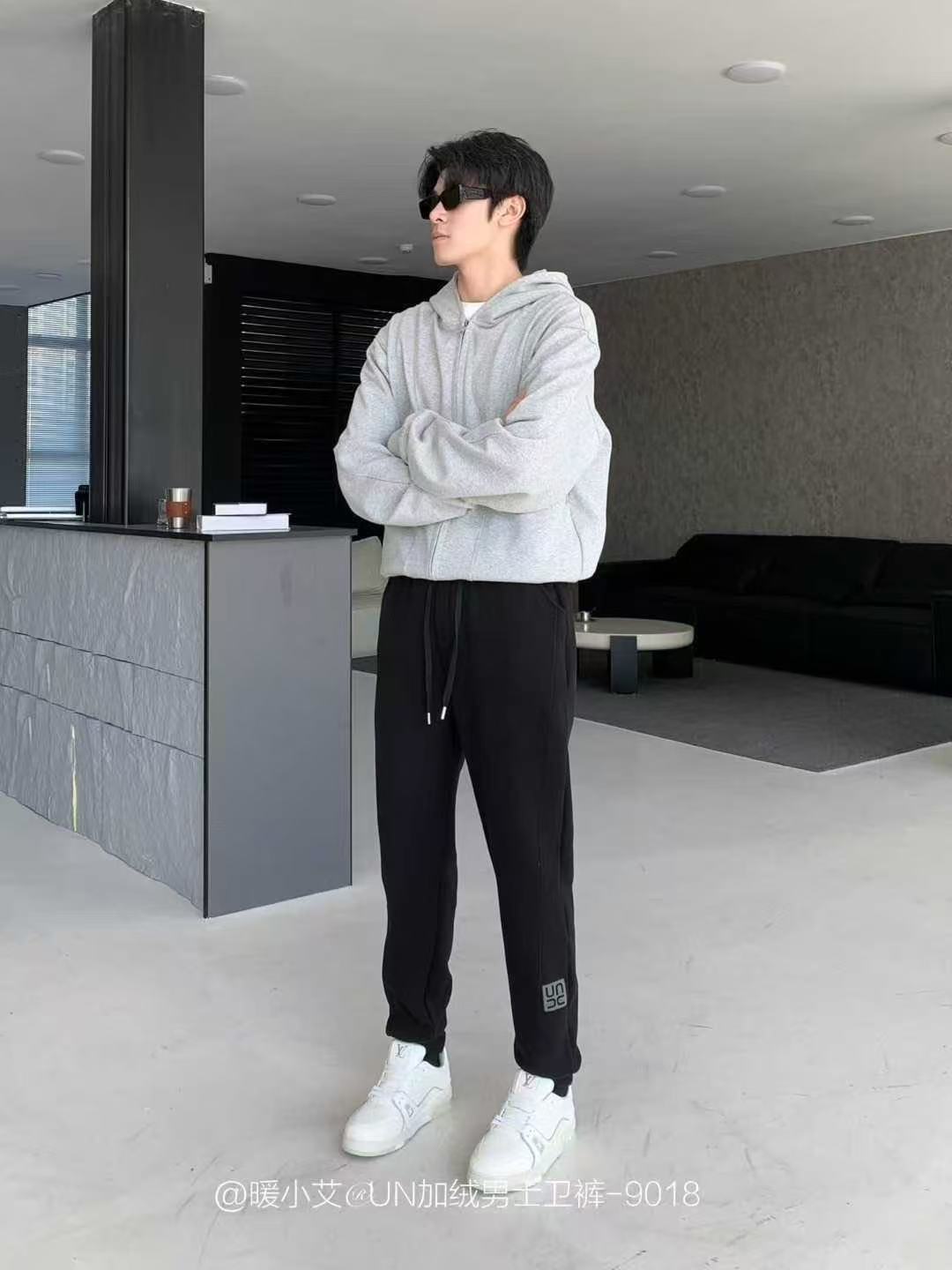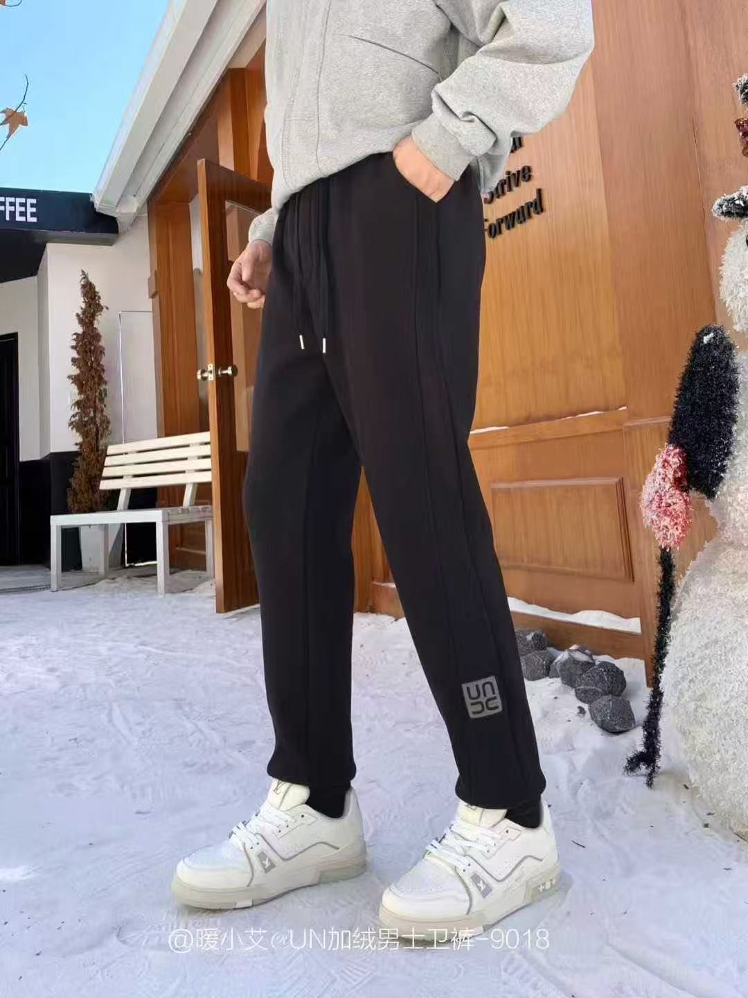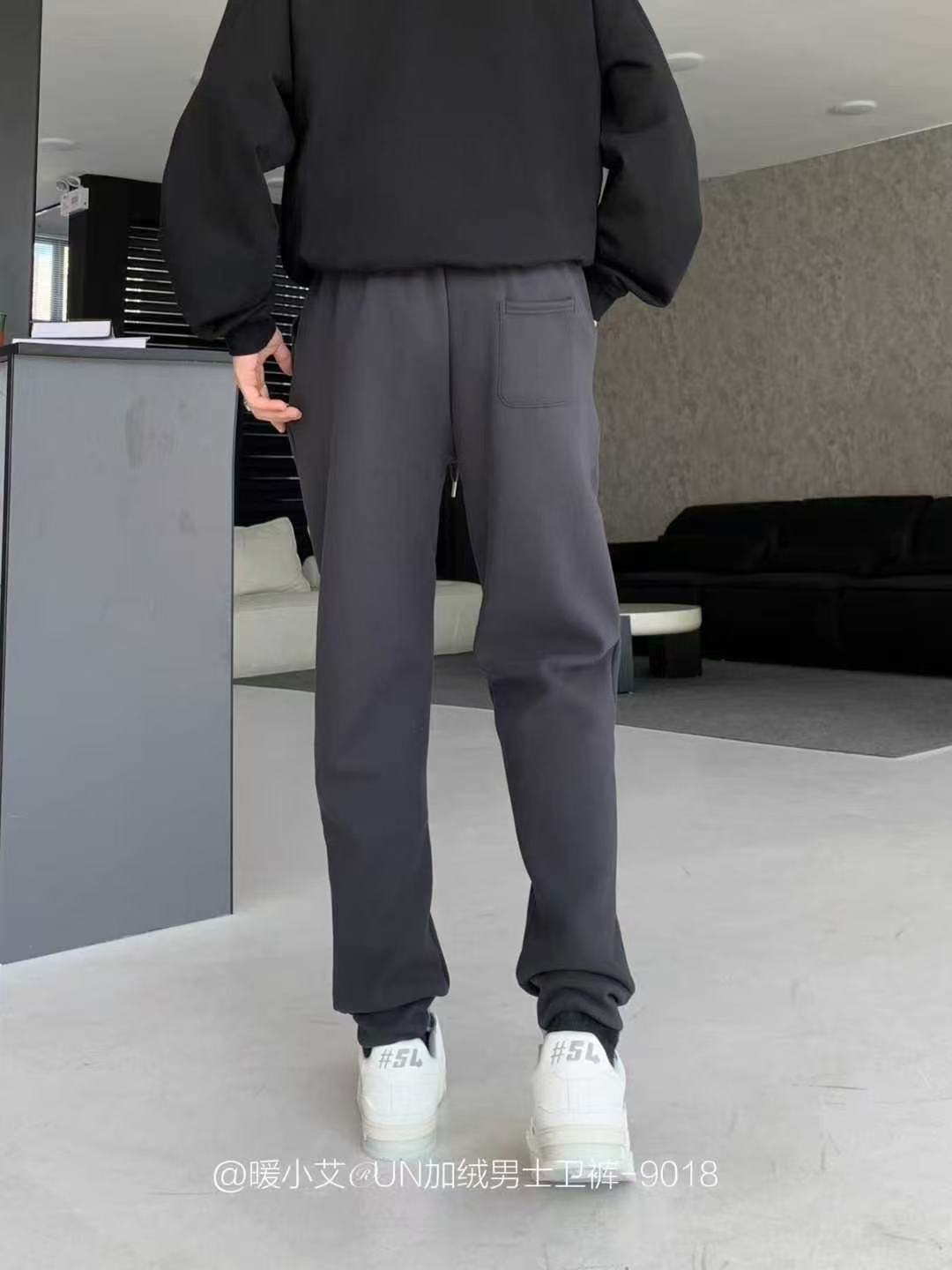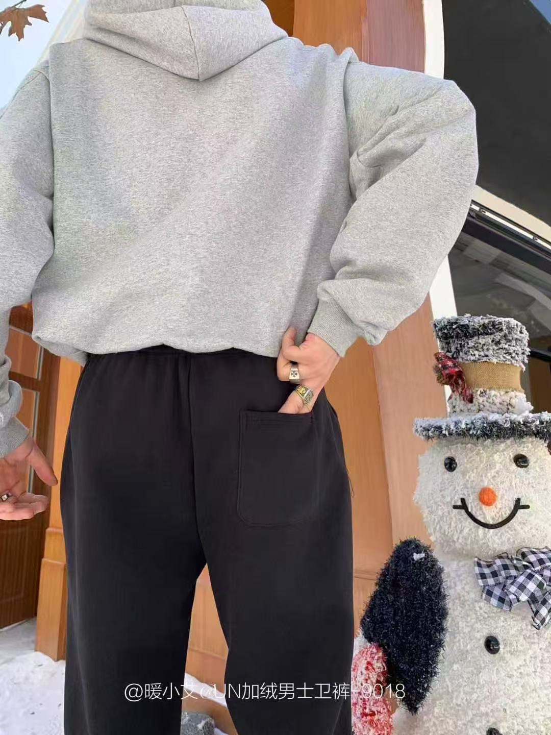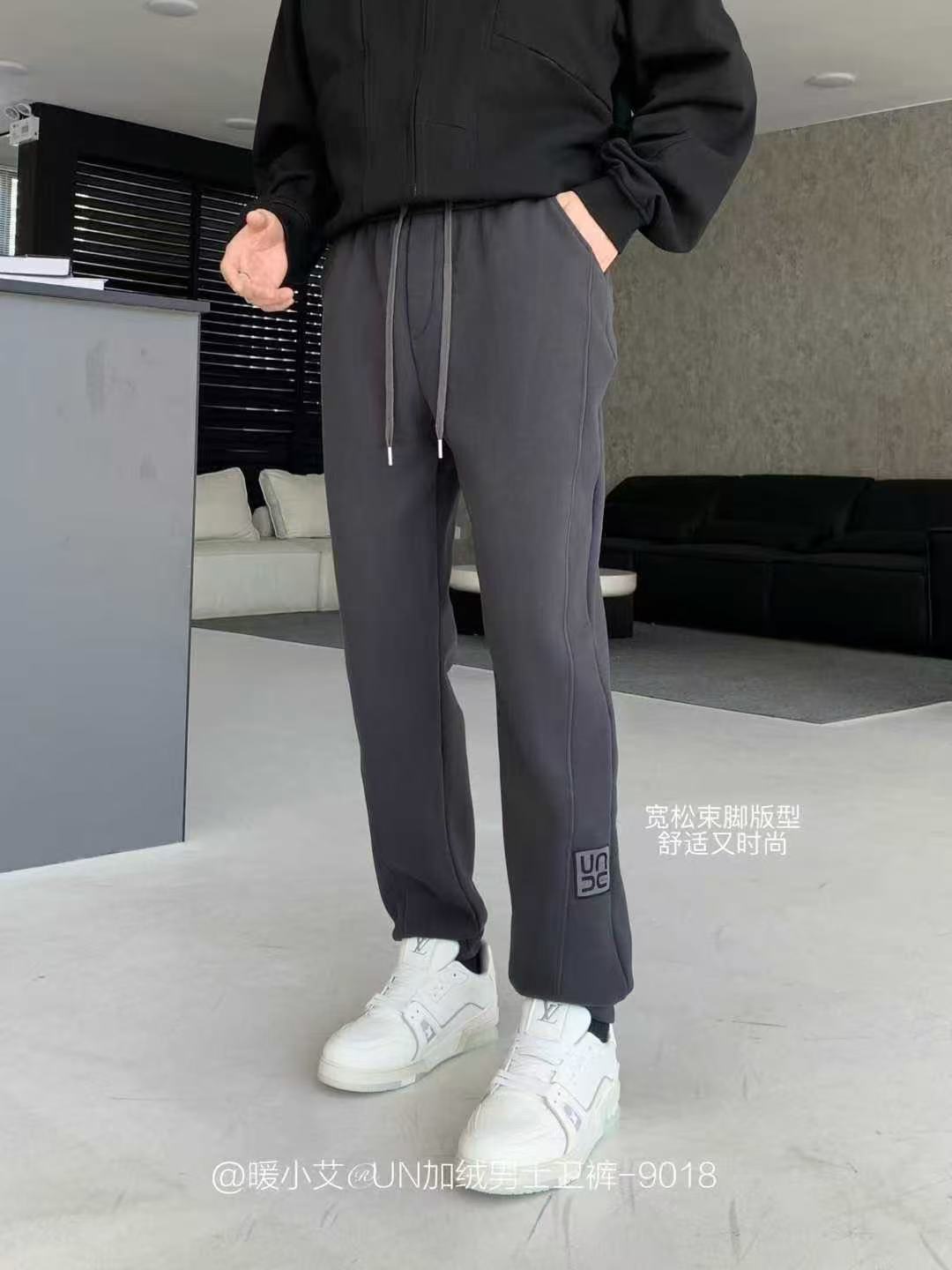暖小艾9018秋冬加绒男生卫裤潮牌羊羔绒保暖休闲裤百搭束脚卫裤子