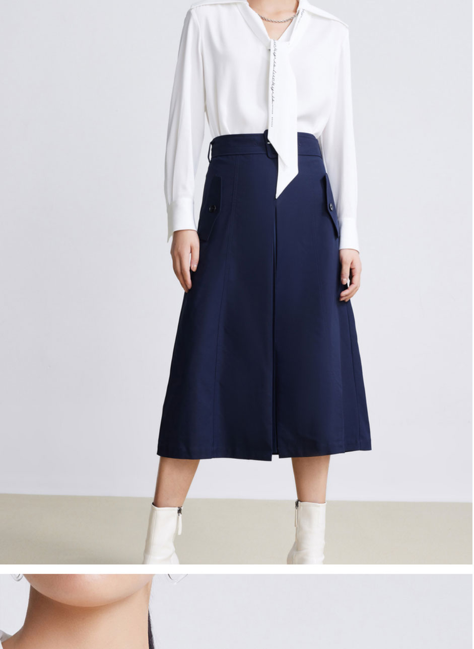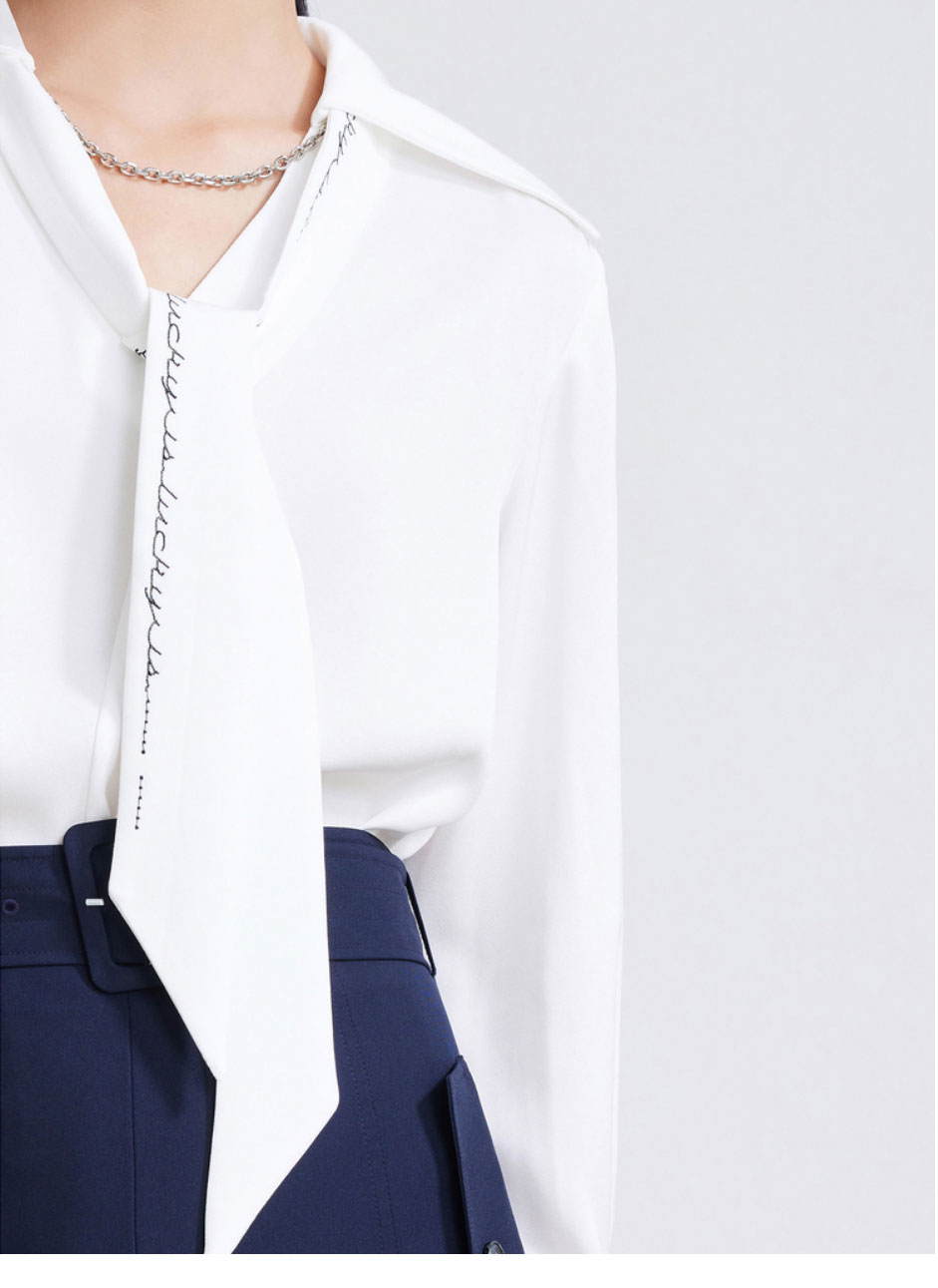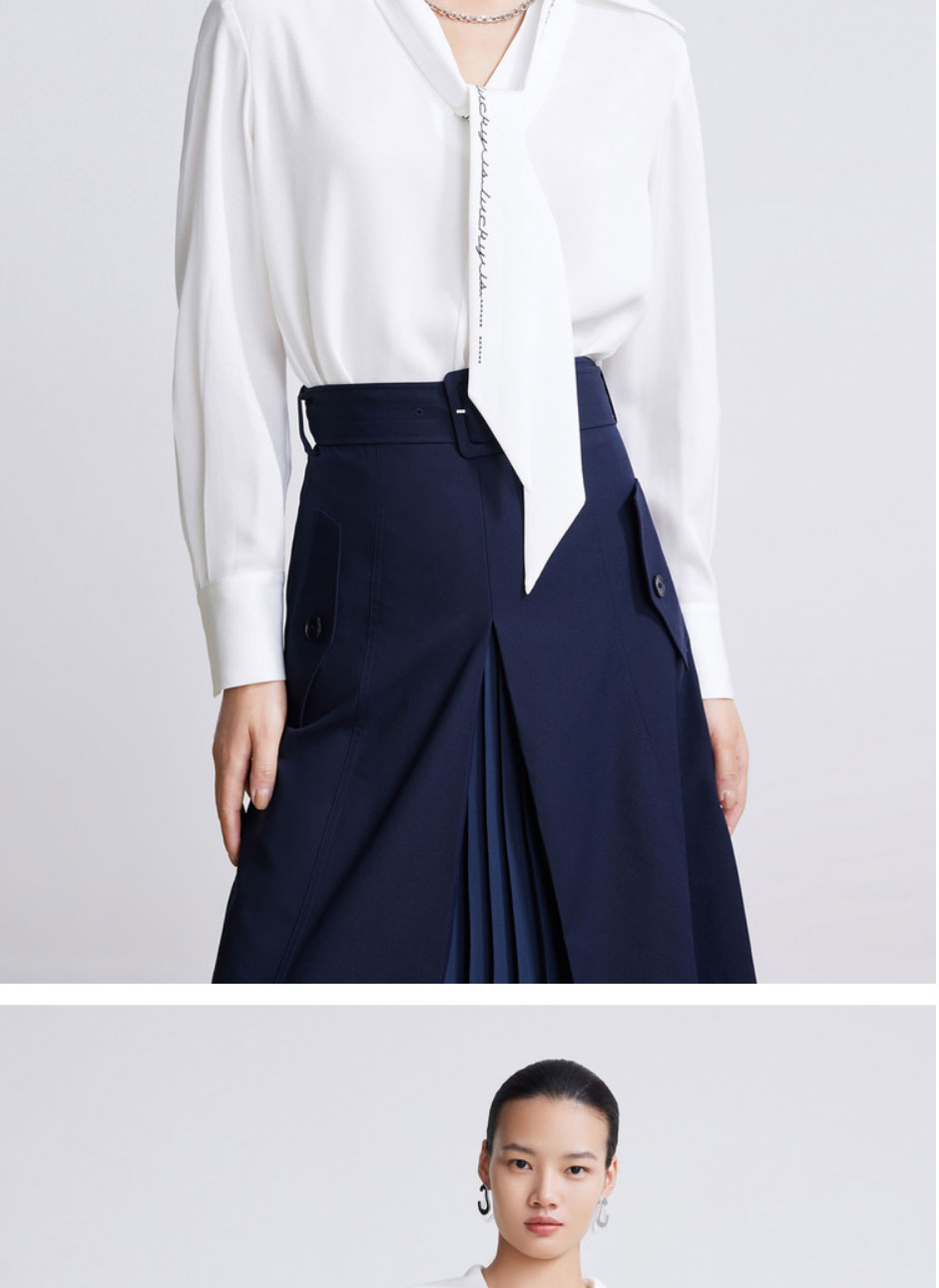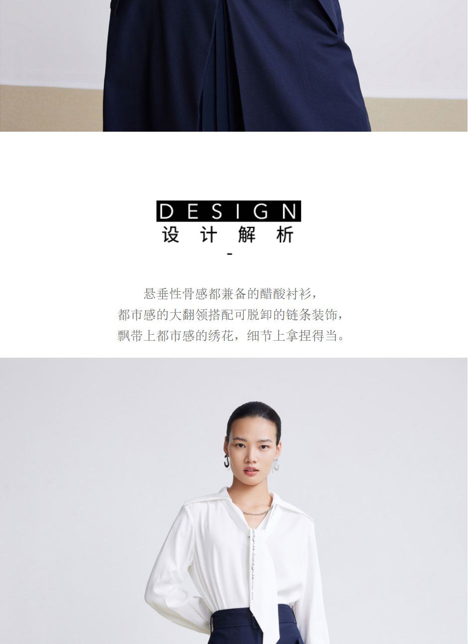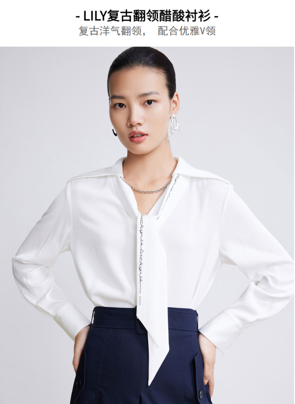 LILY2022春新款女装复古洋气翻领宽松垂顺醋酸衬衫女122130C8212