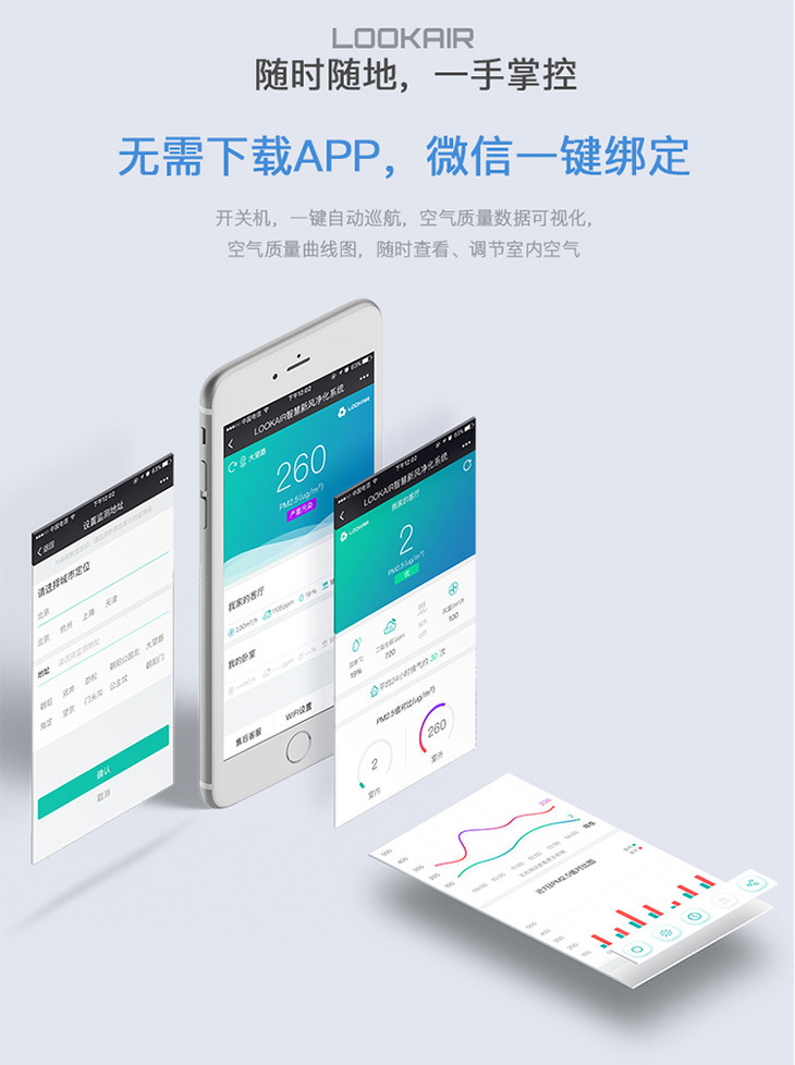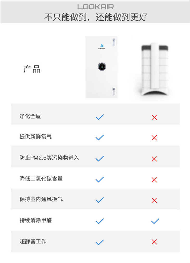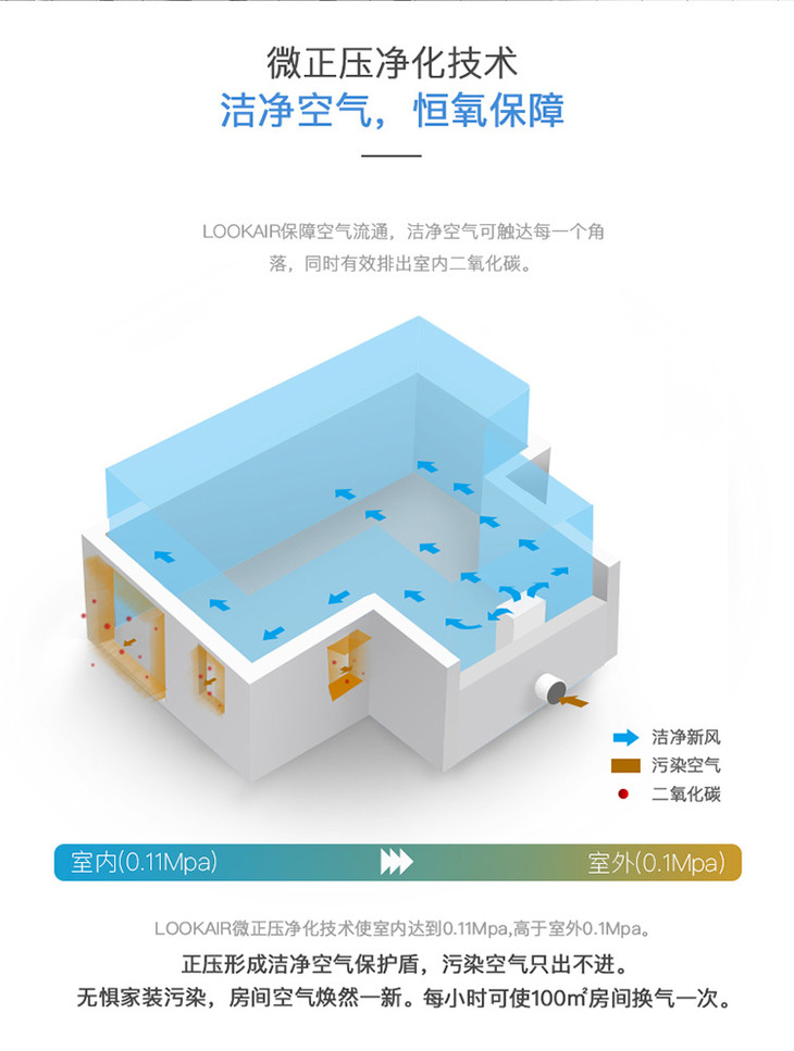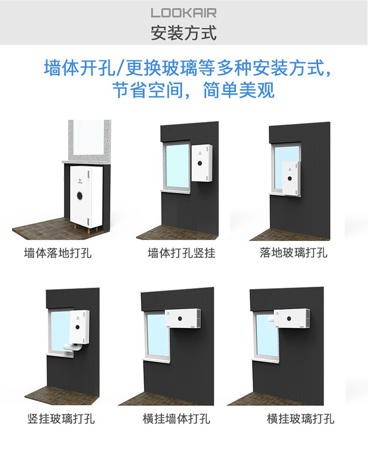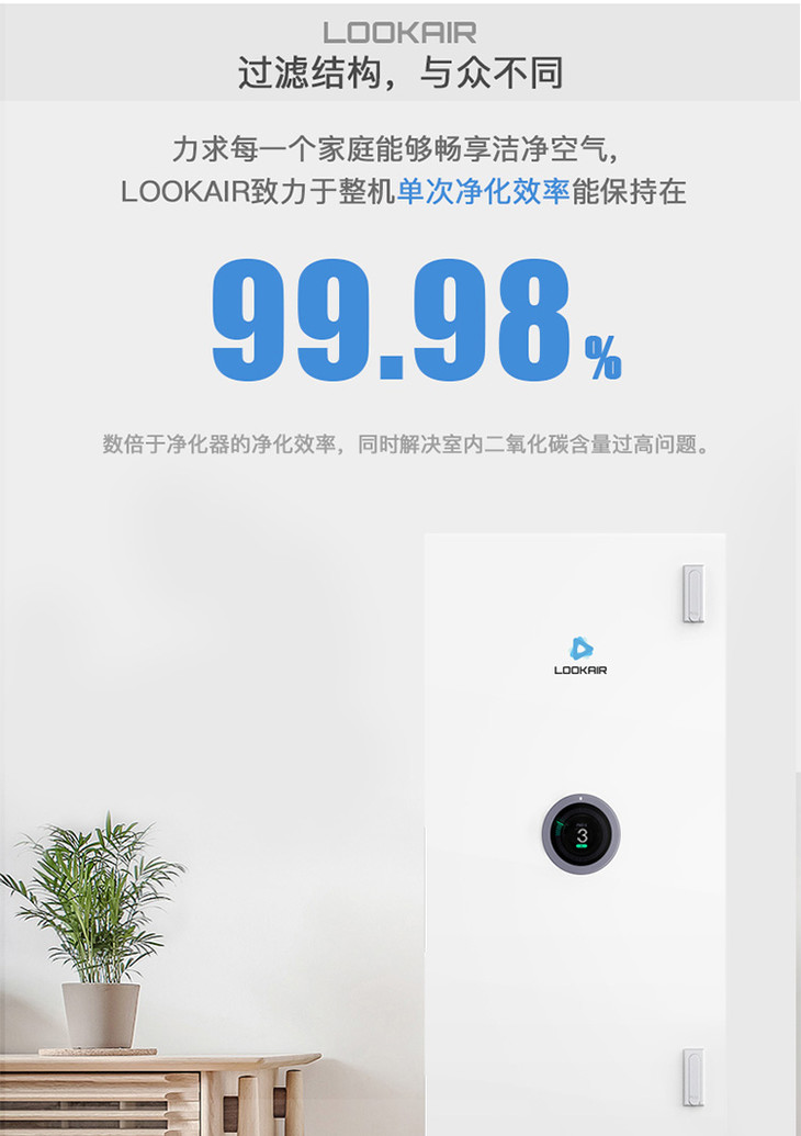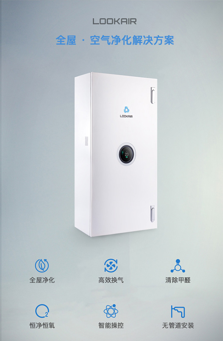 LOOKAIR新风系统壁挂式新风机除雾霾PM2.5甲醛空气净化器全屋换气无需布管[福利品]